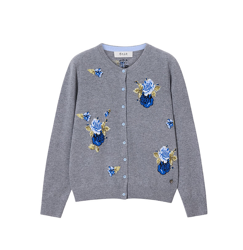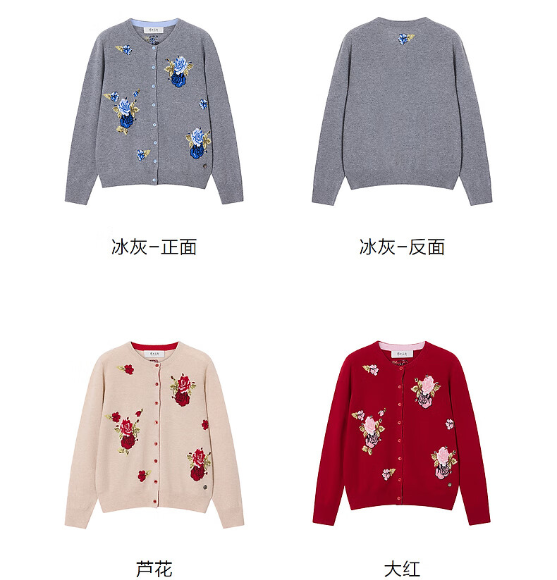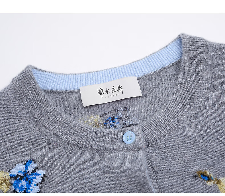 Ordos 1980 pure cashmere round neck jacquard decoration casual cardigan women's commuter cashmere cardigan autumn and winter bright red XL 170/92A