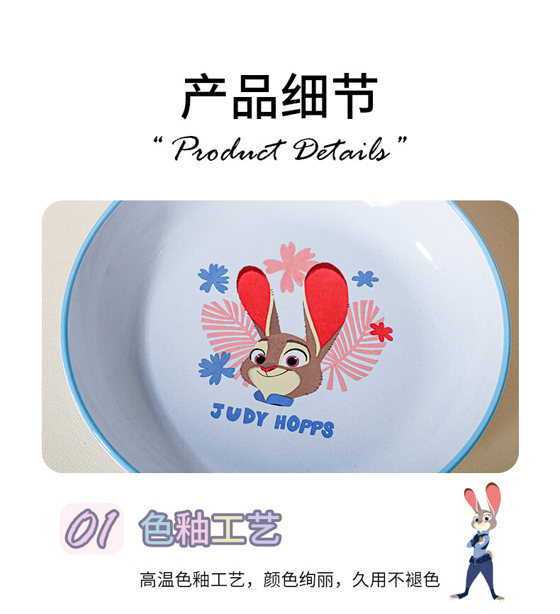Zootopia Colorful Series Ceramic Tableware 8-inch Ceramic Dinner Plate Judy Rabbit 8-inch Dinner Plate*1