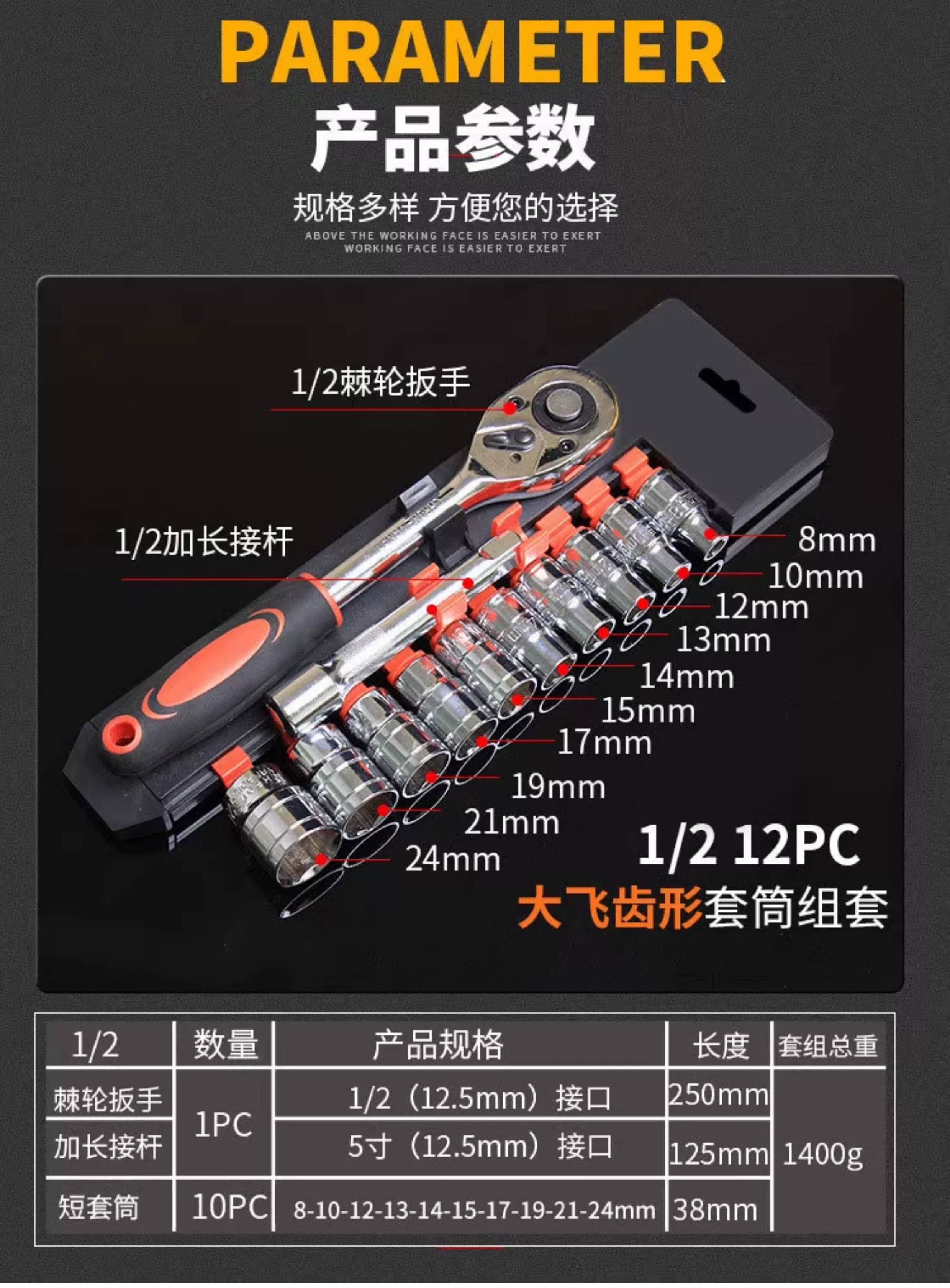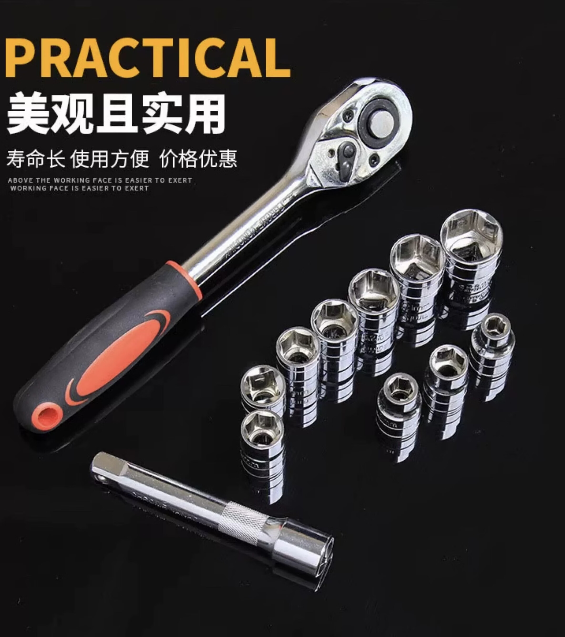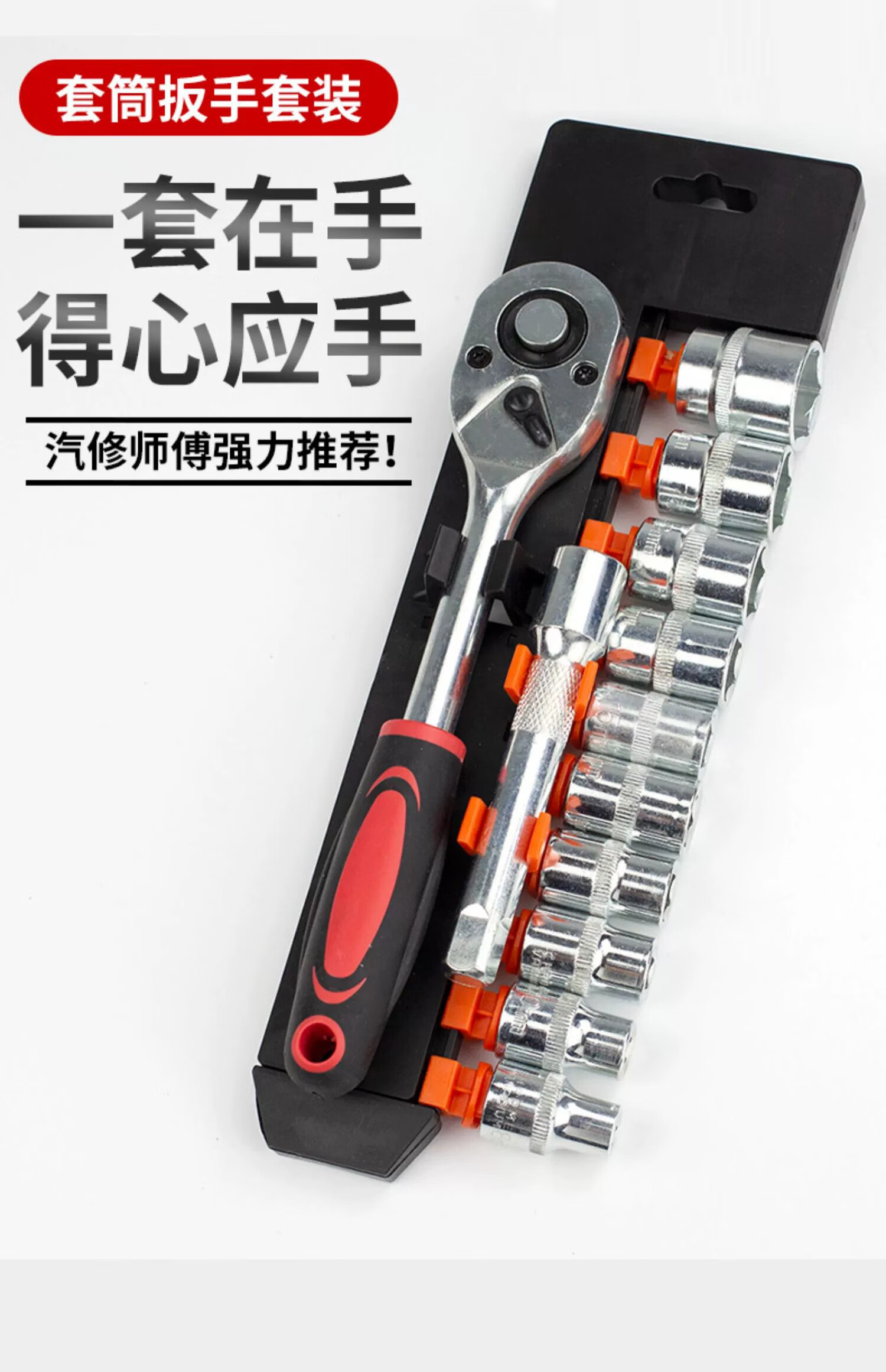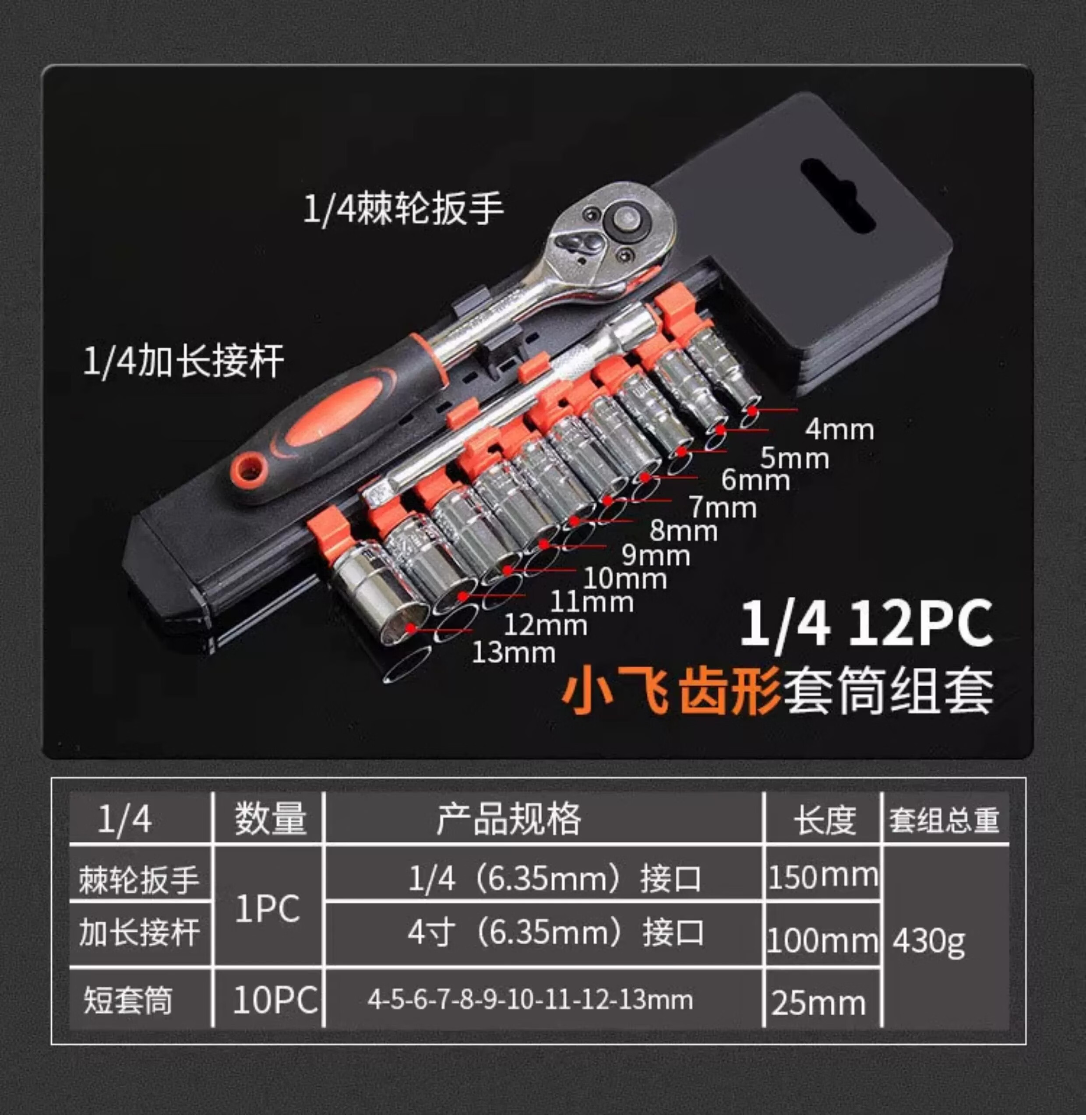 Ratchet socket wrench set multi-functional external hexagonal fast and small fly casing auto repair tool set combination 1/4 small fly ratchet wrench 12-piece set