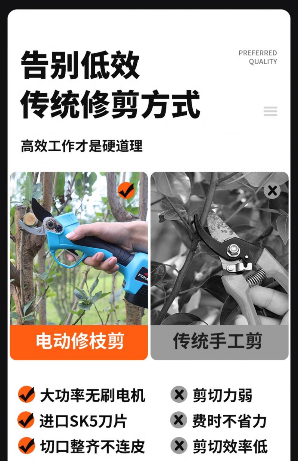 Seasoon Jiahang electric pruning shears for gardening, special rechargeable lithium battery for fruit tree pruning, branch scissors, pruning shears, Jiahang 25mm non-proof model (1 battery, 1 charge) 16.8V2.5A