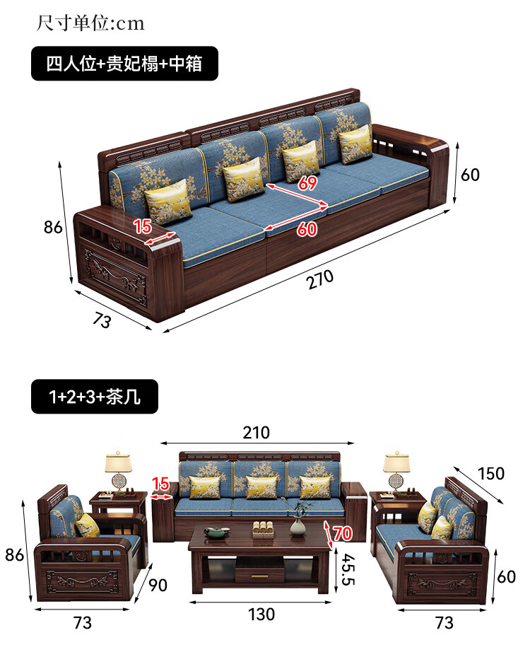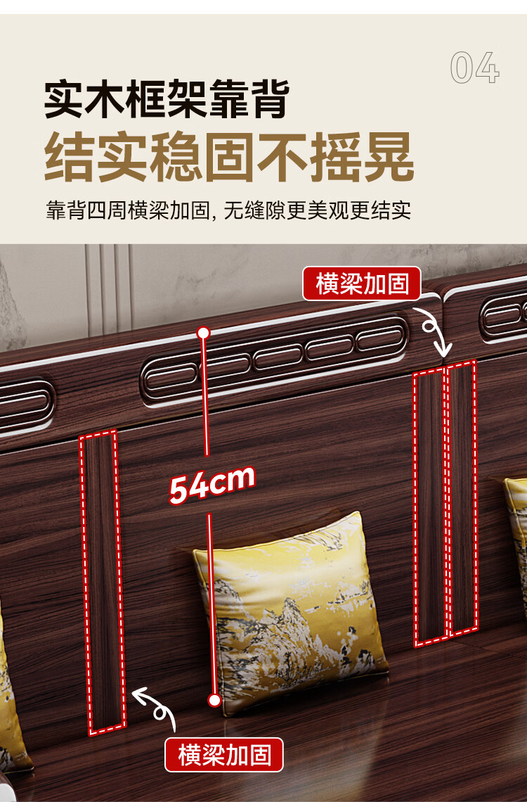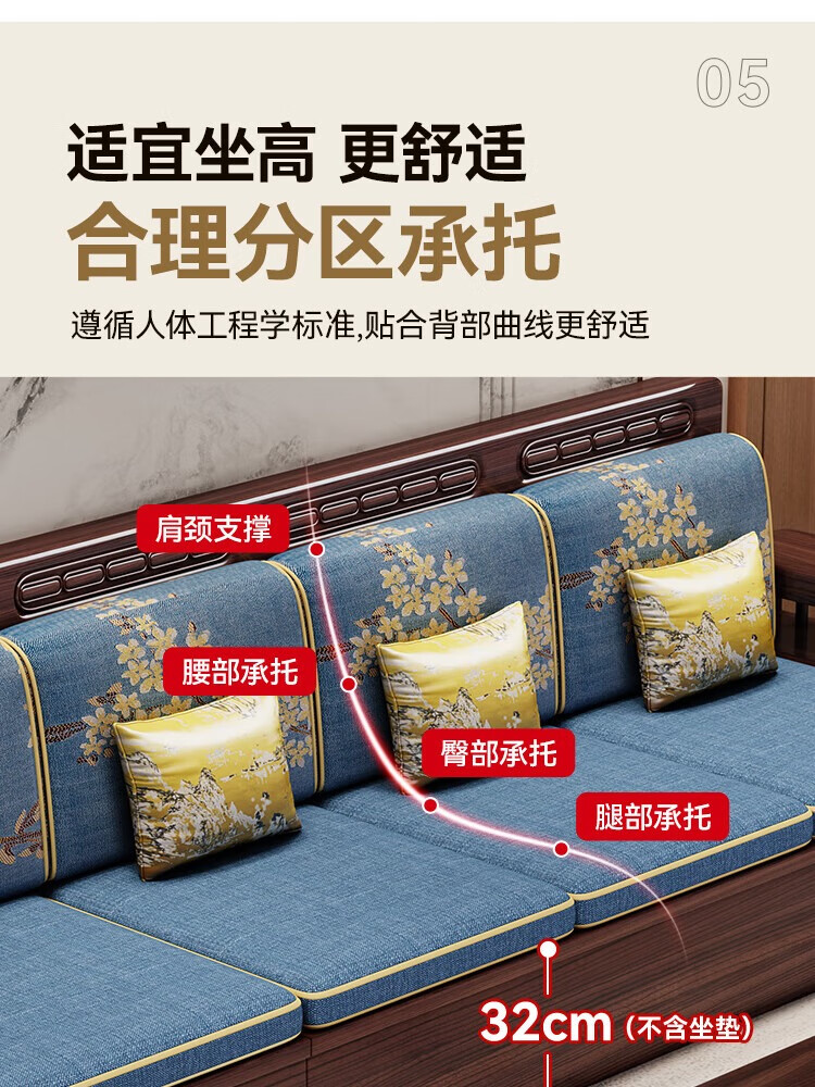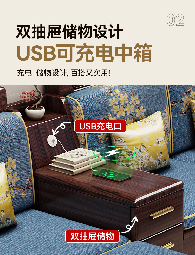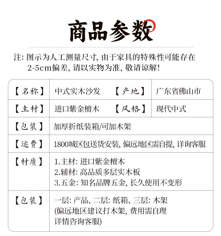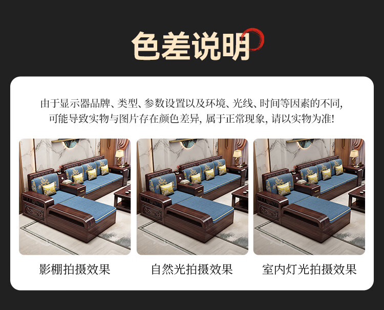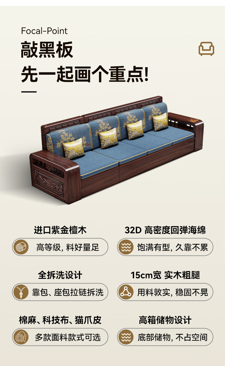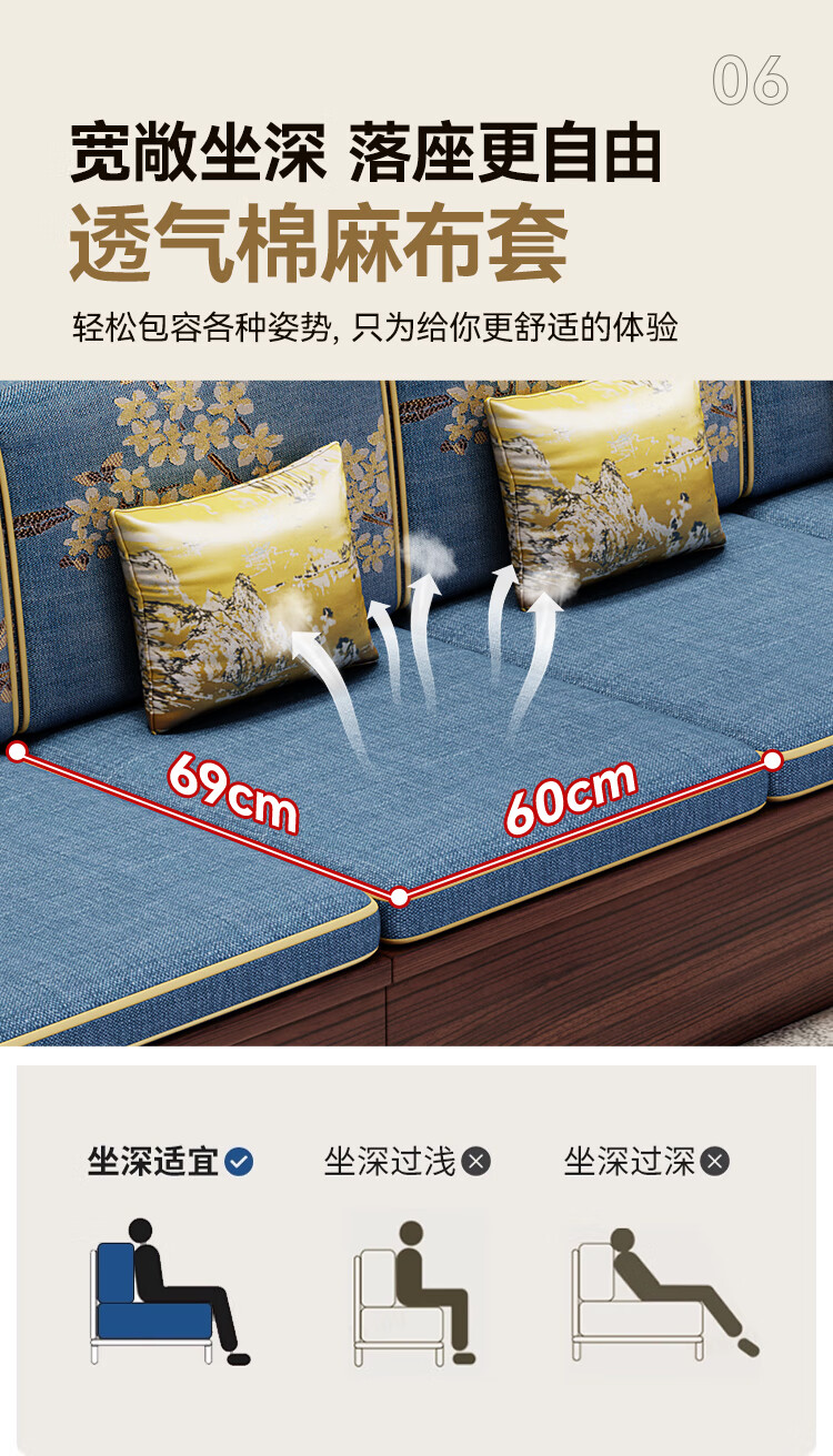 Lanxuan new Chinese style purple sandalwood solid wood sofa living room home small apartment three-seat straight-row carved storage sofa straight-row three-seat 2.1 meters cotton and linen style