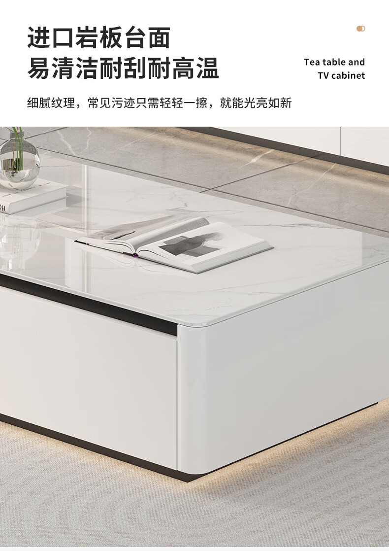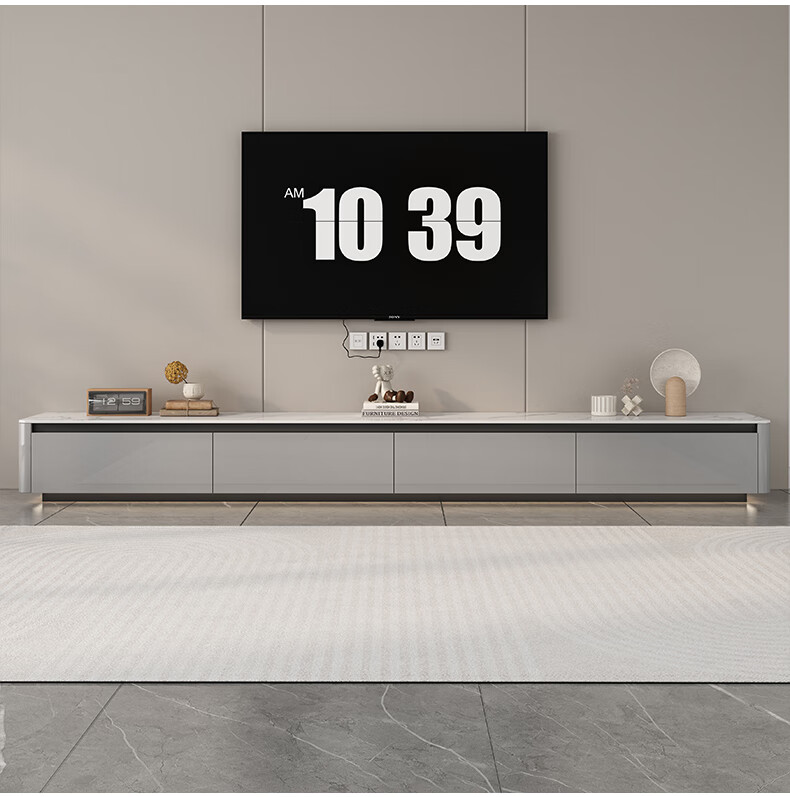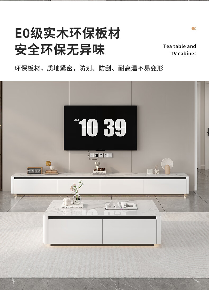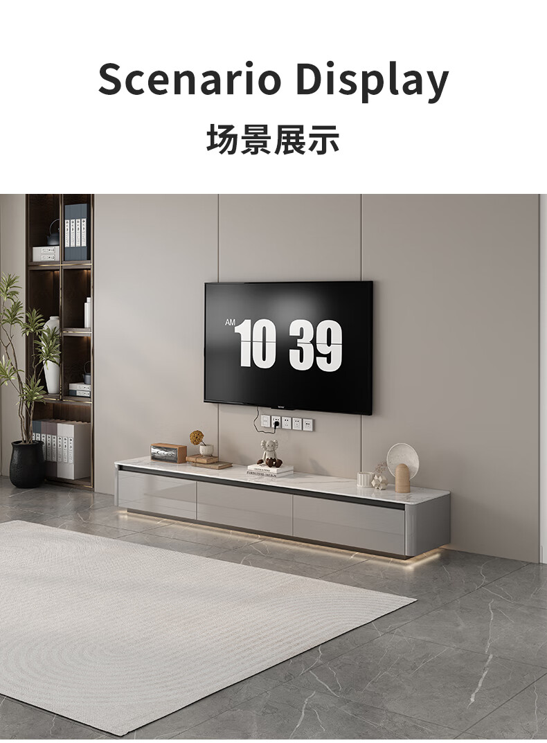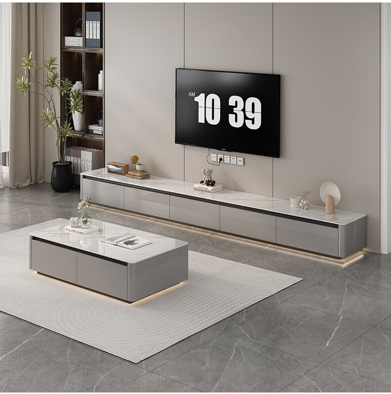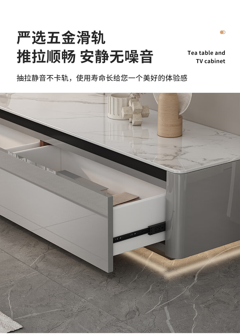 Fukai Shangnuo TV cabinet floor-standing solid wood painted simple light luxury style slate TV cabinet coffee table combination cabinet living room storage cabinet light gray 2.0 meters TV cabinet (solid wood painted surface)