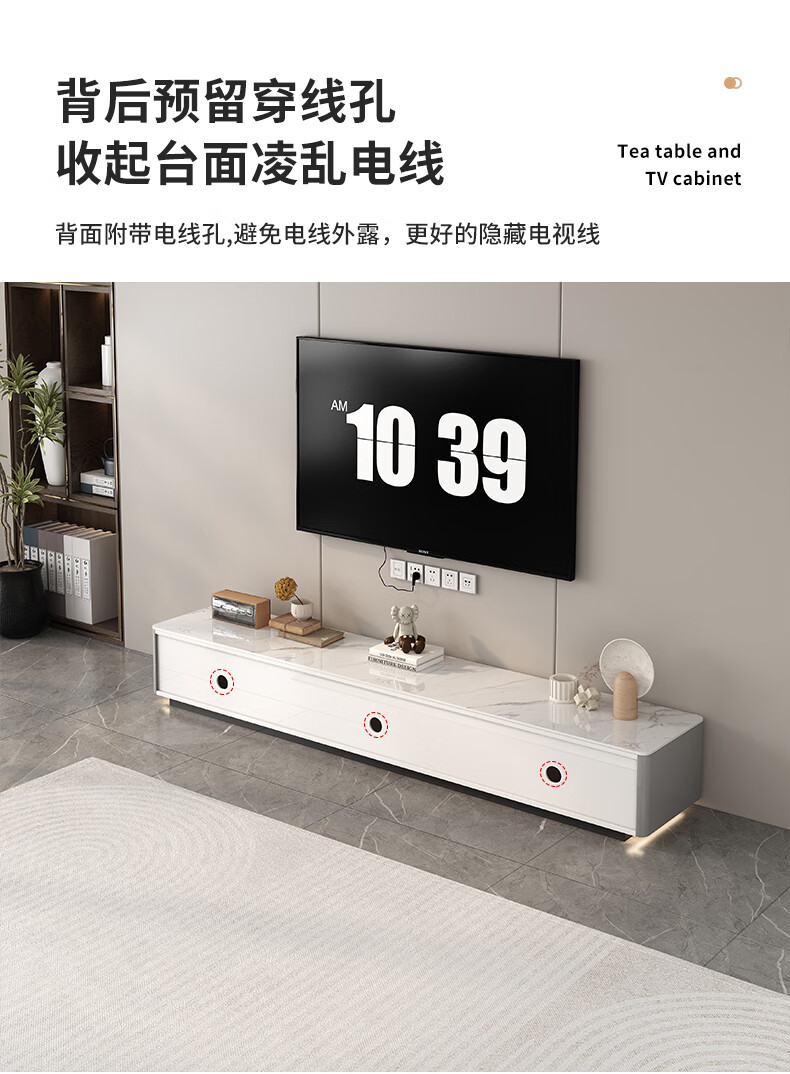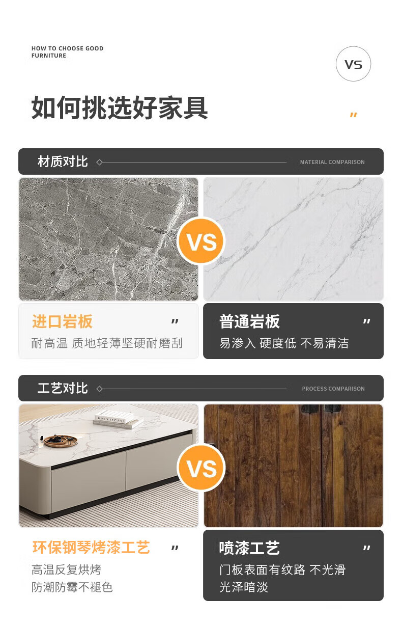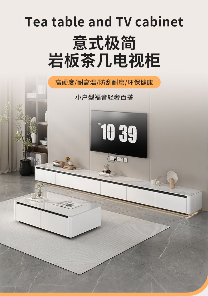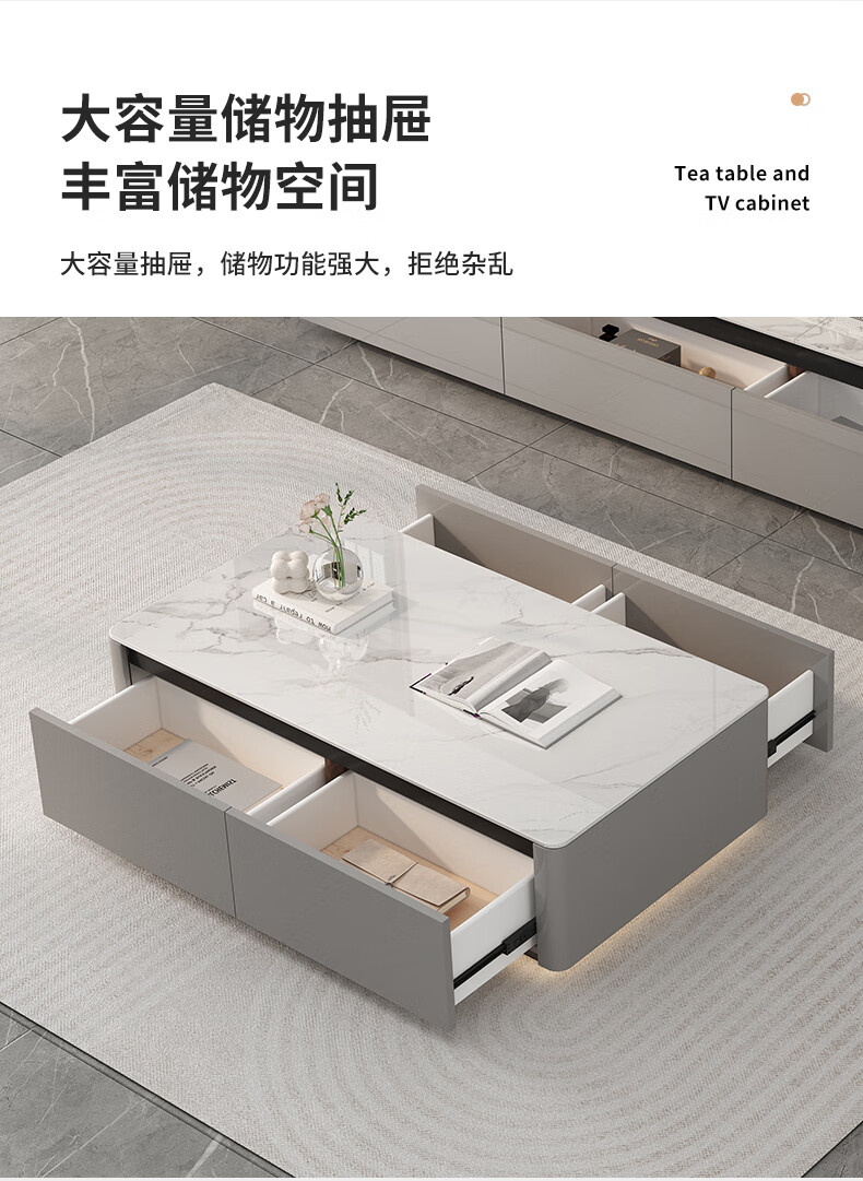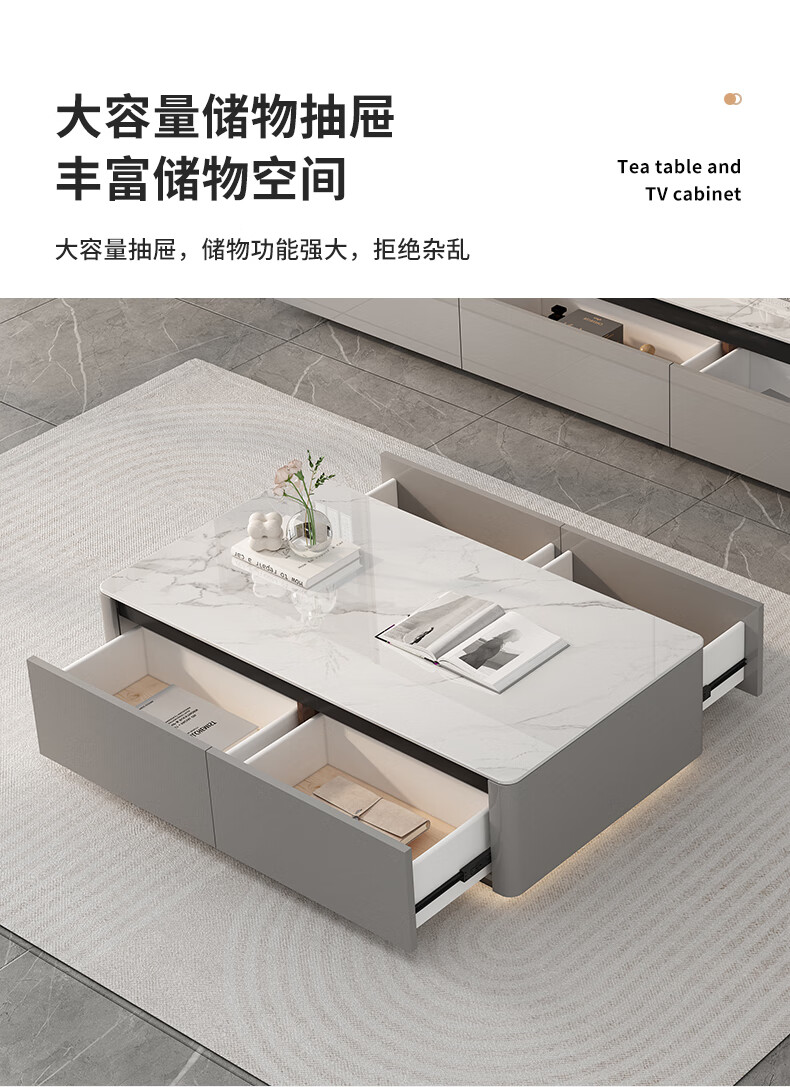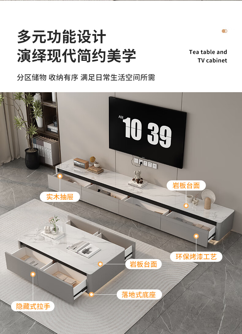 Fukai Shangnuo TV cabinet floor-standing solid wood painted simple light luxury style slate TV cabinet coffee table combination cabinet living room storage cabinet light gray 2.0 meters TV cabinet (solid wood painted surface)