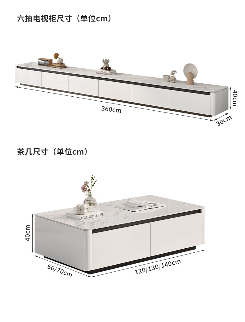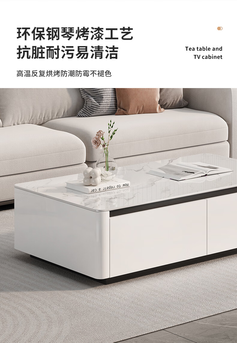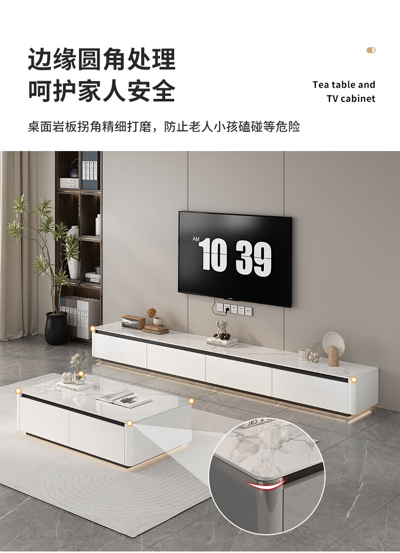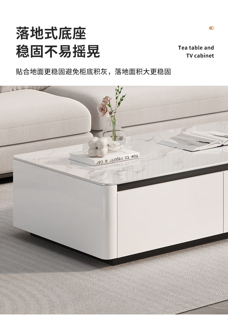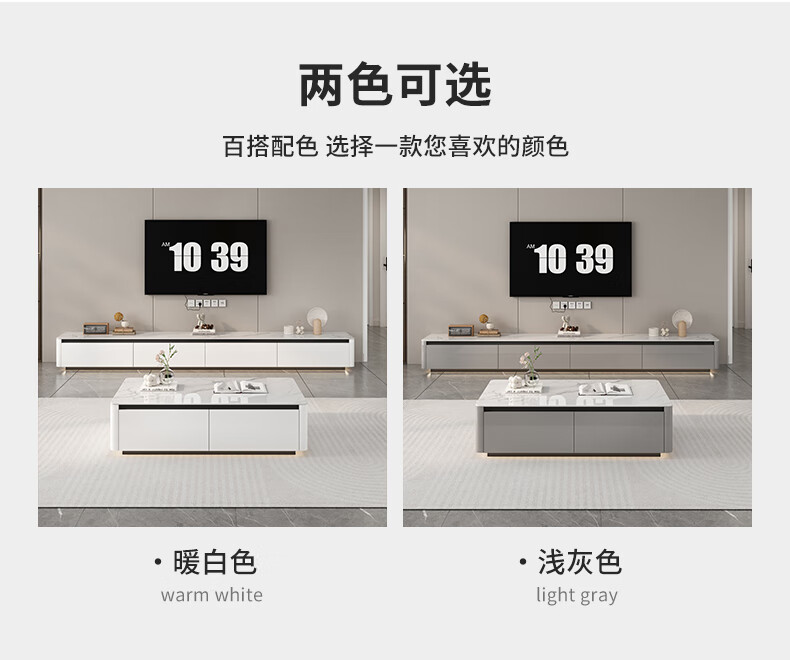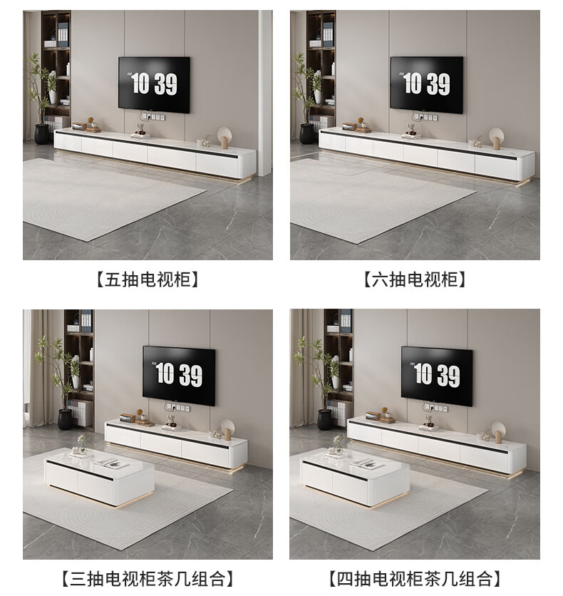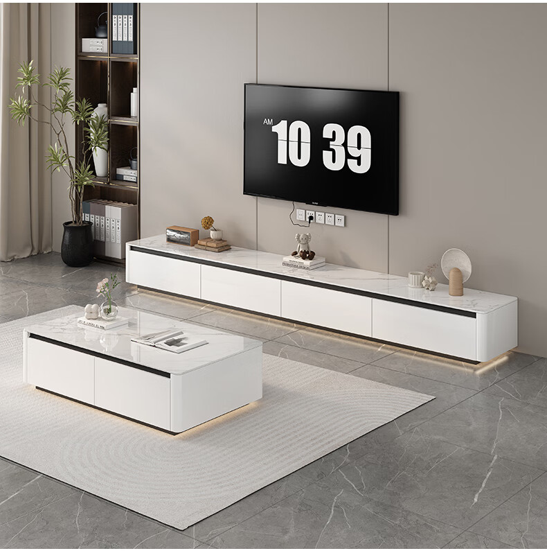 Fukai Shangnuo TV cabinet floor-standing solid wood painted simple light luxury style slate TV cabinet coffee table combination cabinet living room storage cabinet light gray 2.0 meters TV cabinet (solid wood painted surface)
