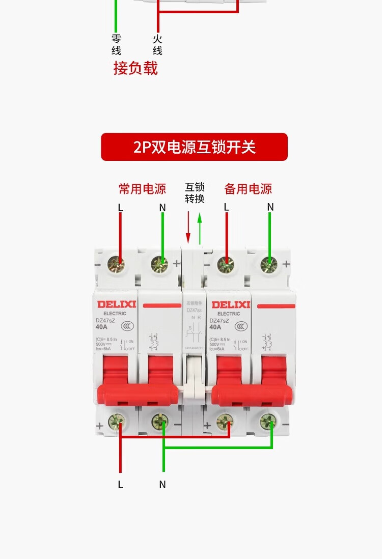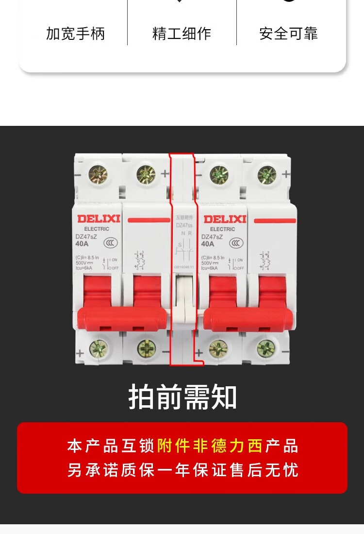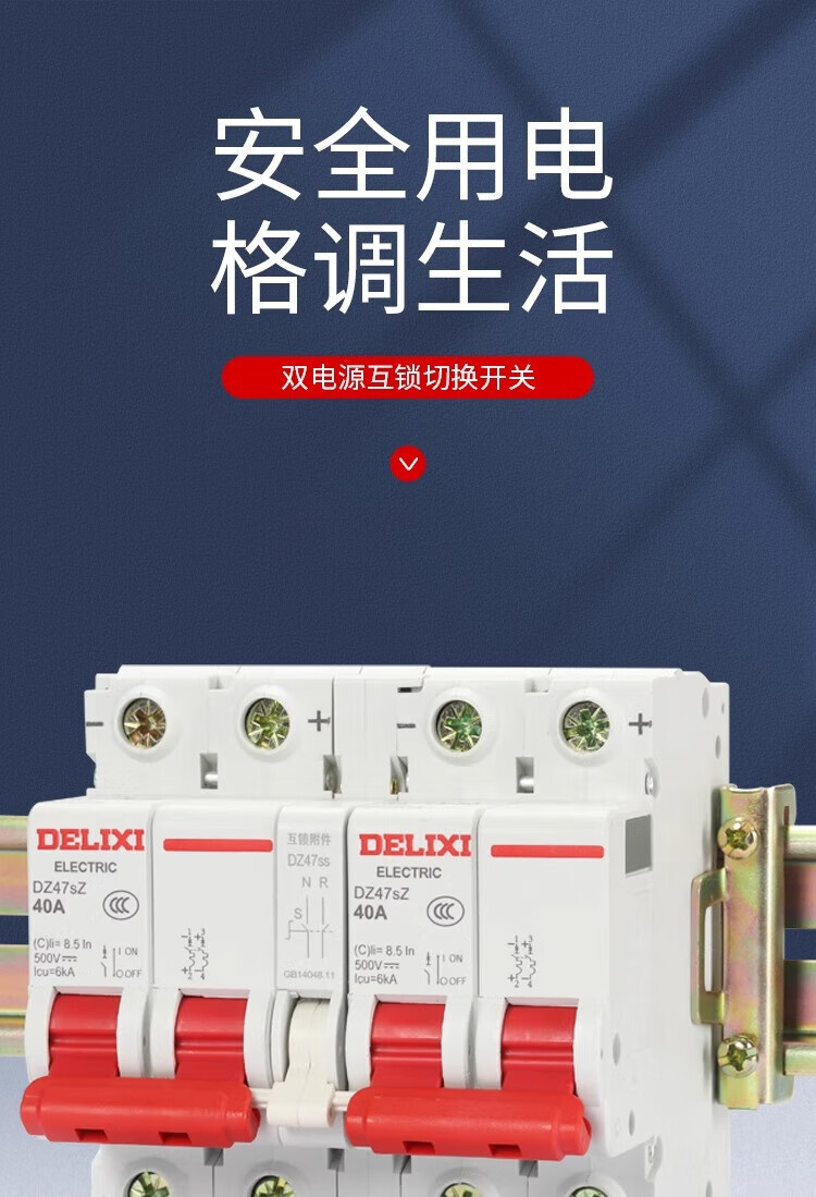 Delixi Electric Delixi dual power supply two-way switching controller air switch 12/48V DC switch interlocking automatic conversion manual 63A 2P