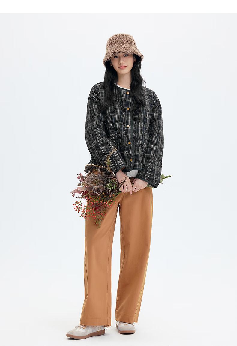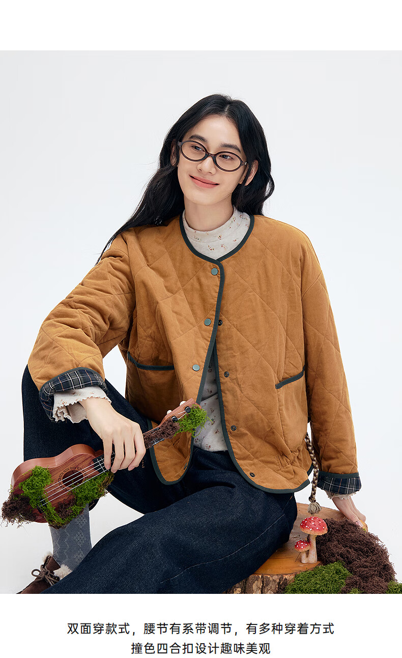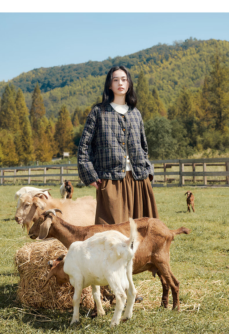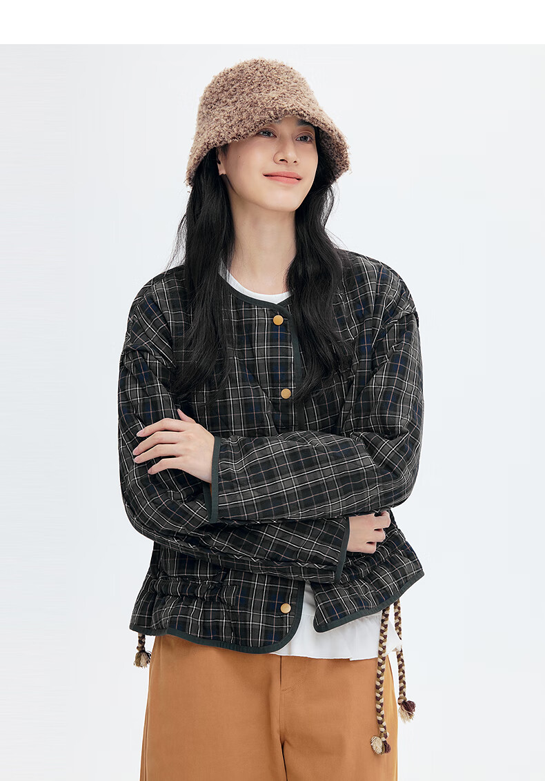 Asuka and Xinjiu reversible plaid petite cotton coat for women 2025 winter new warm rhombus cotton top plaid dark green HMG09 M