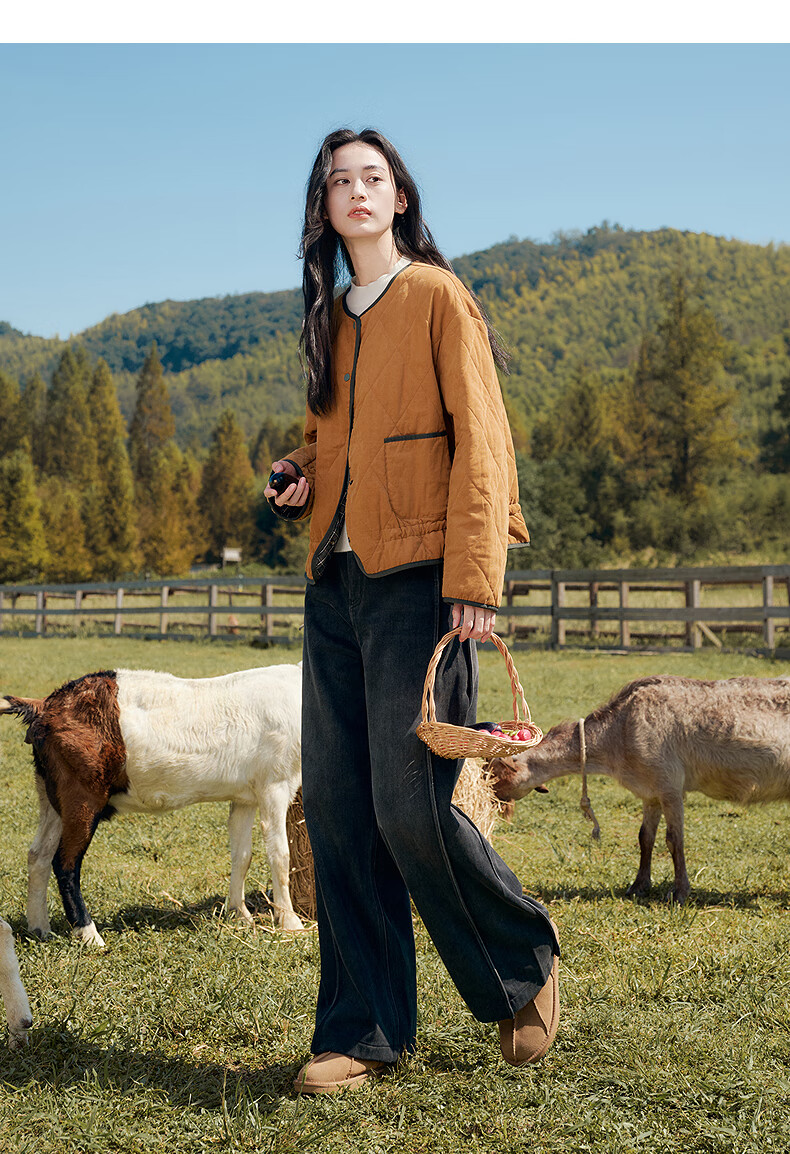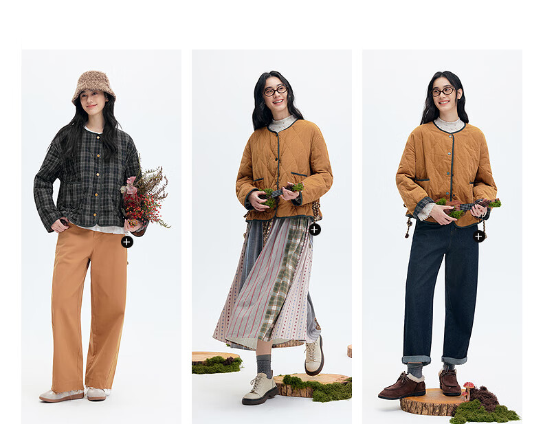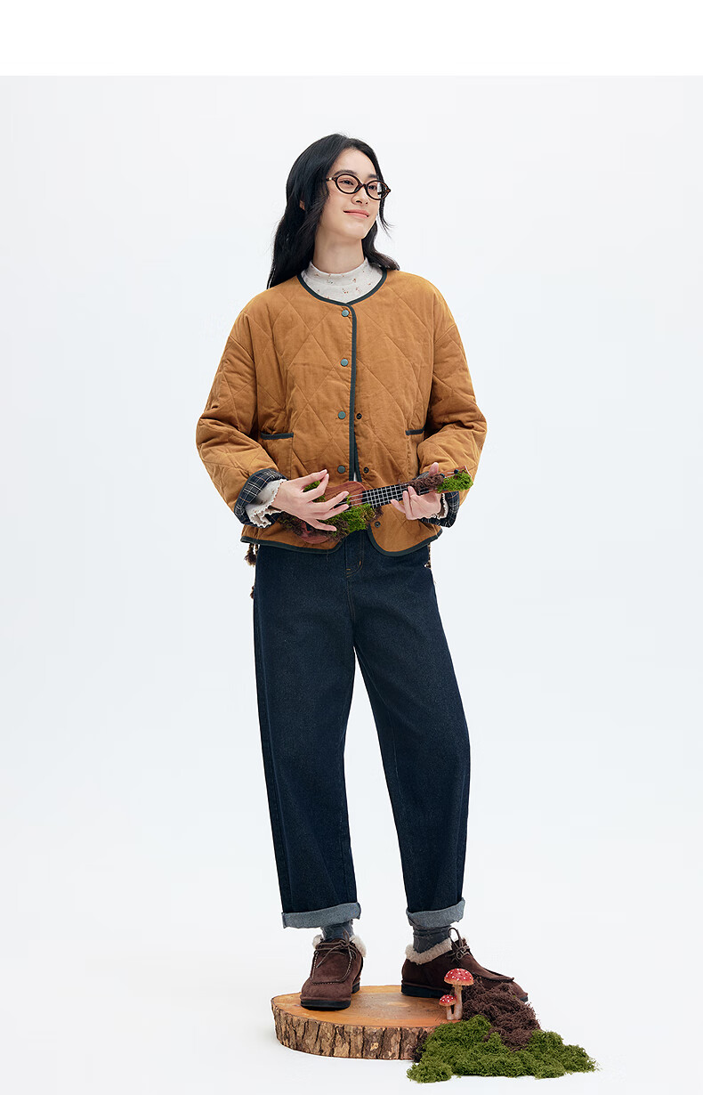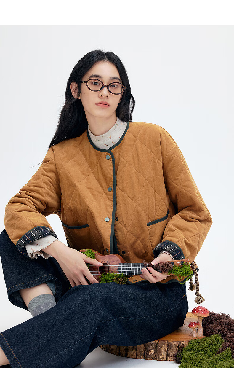 Asuka and Xinjiu reversible plaid petite cotton coat for women 2025 winter new warm rhombus cotton top plaid dark green HMG09 M