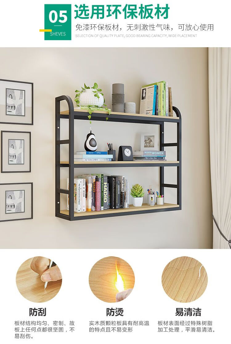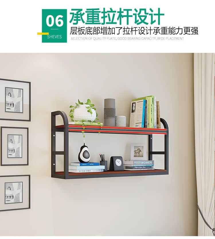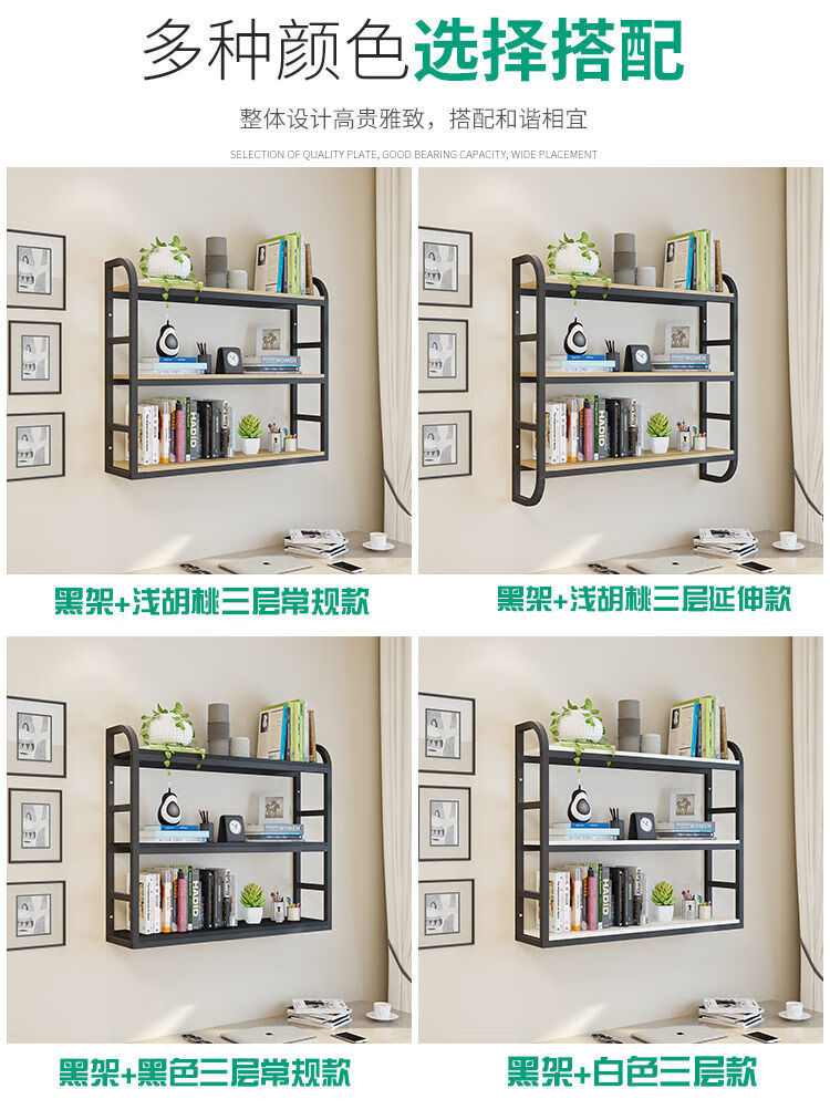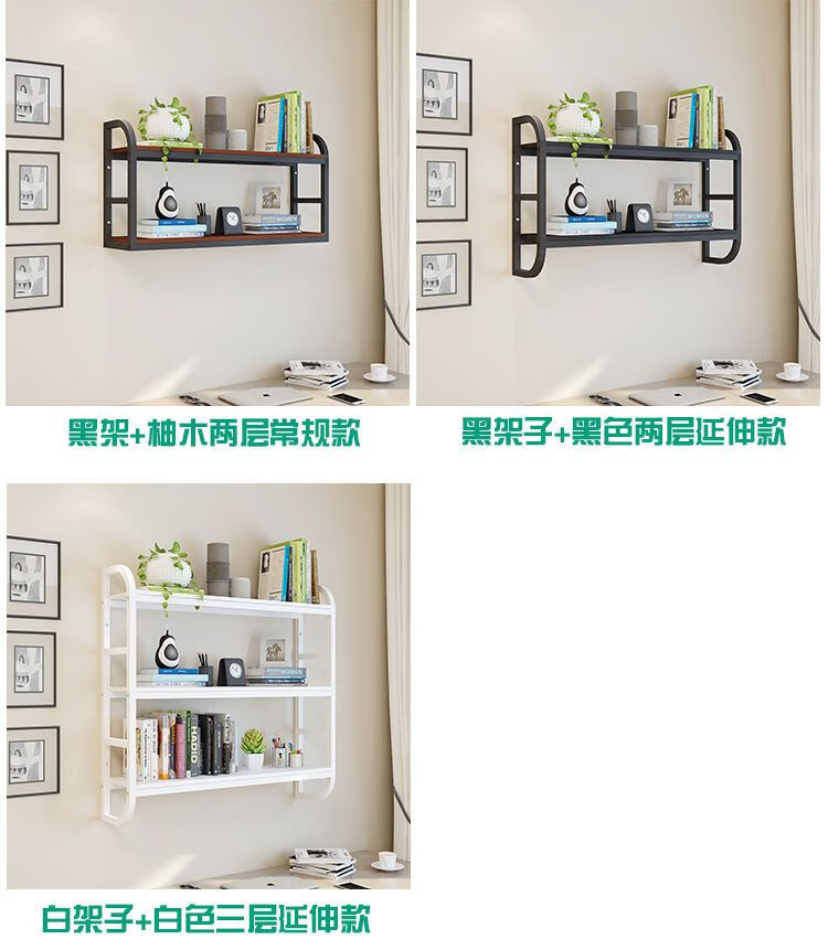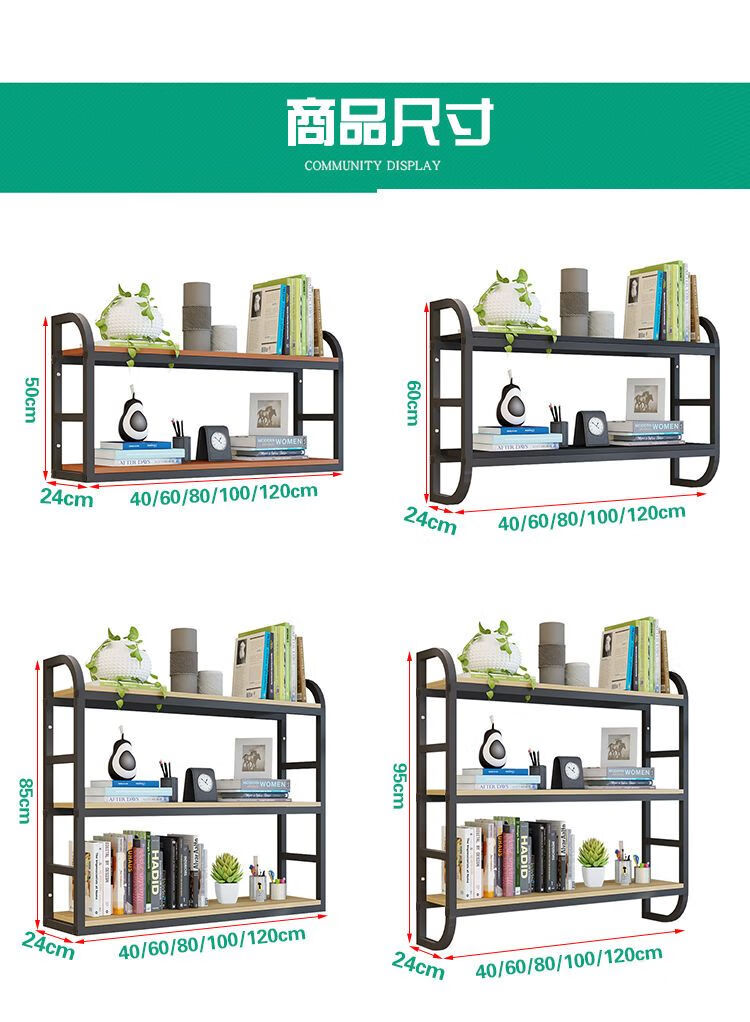 Wall bookshelf, wrought iron storage rack, kitchen, living room, bedroom, wall flower rack, wine rack, children's one-word partition storage cabinet, light walnut panel + black shelf, second floor length 40 width 24 height 50 (regular style)