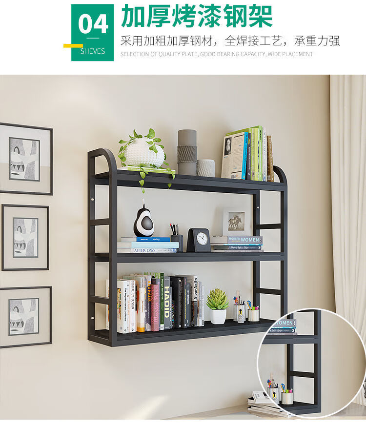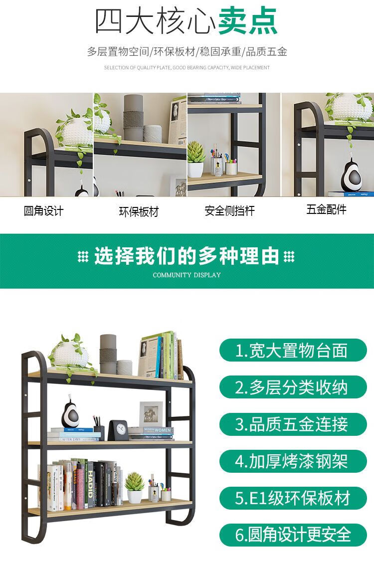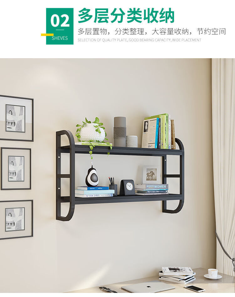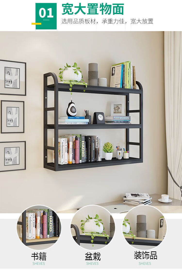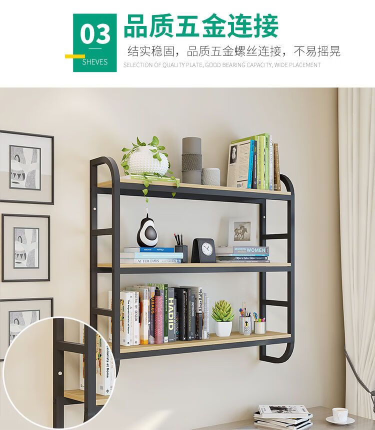 Wall bookshelf, wrought iron storage rack, kitchen, living room, bedroom, wall flower rack, wine rack, children's one-word partition storage cabinet, light walnut panel + black shelf, second floor length 40 width 24 height 50 (regular style)