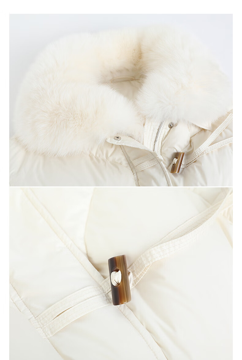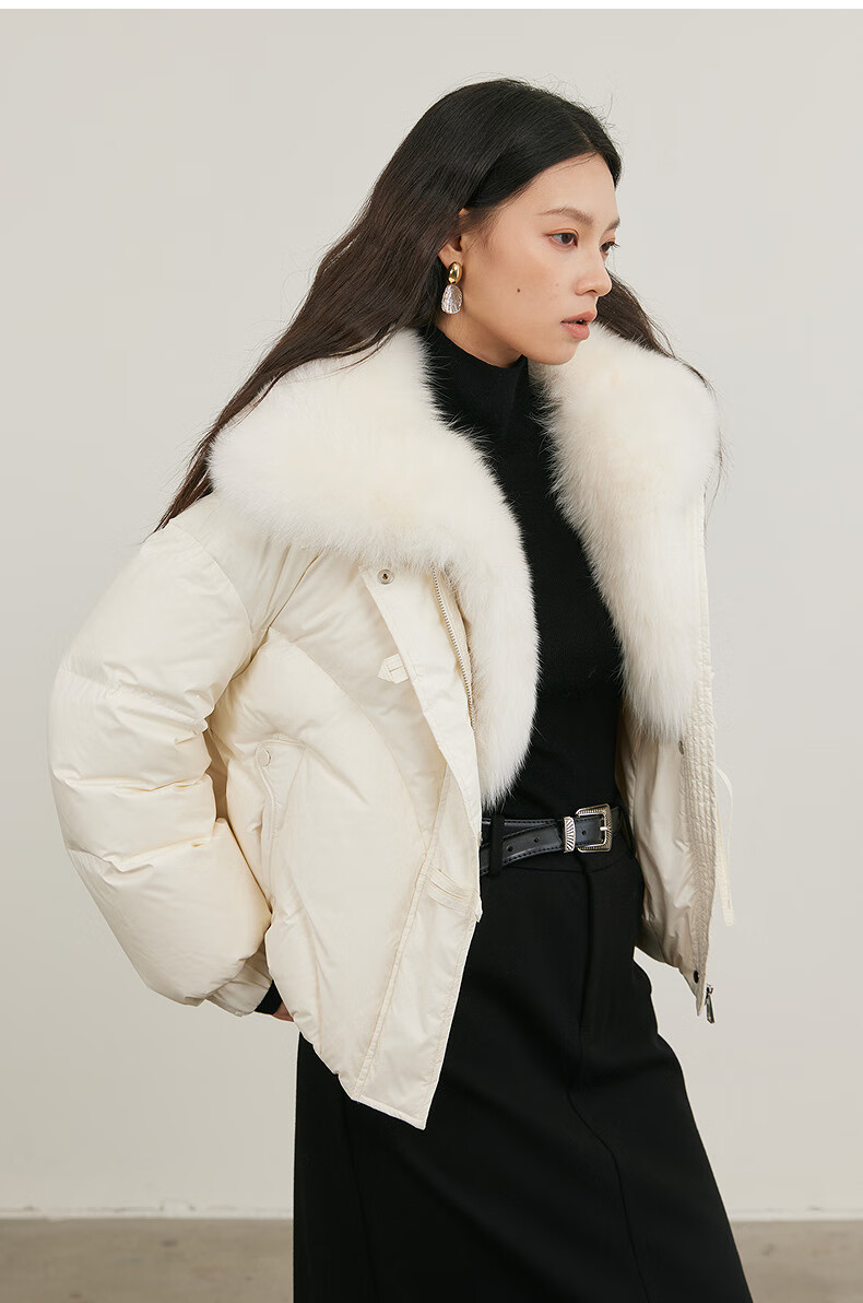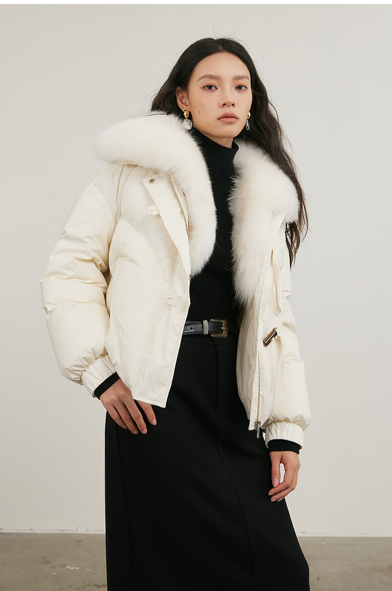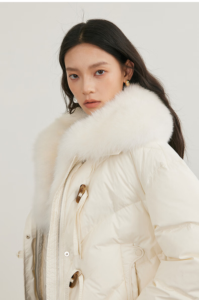 NEELLY shopping mall's same style winter new fox fur collar loose down jacket for women 90 white duck down short jacket ivory white S