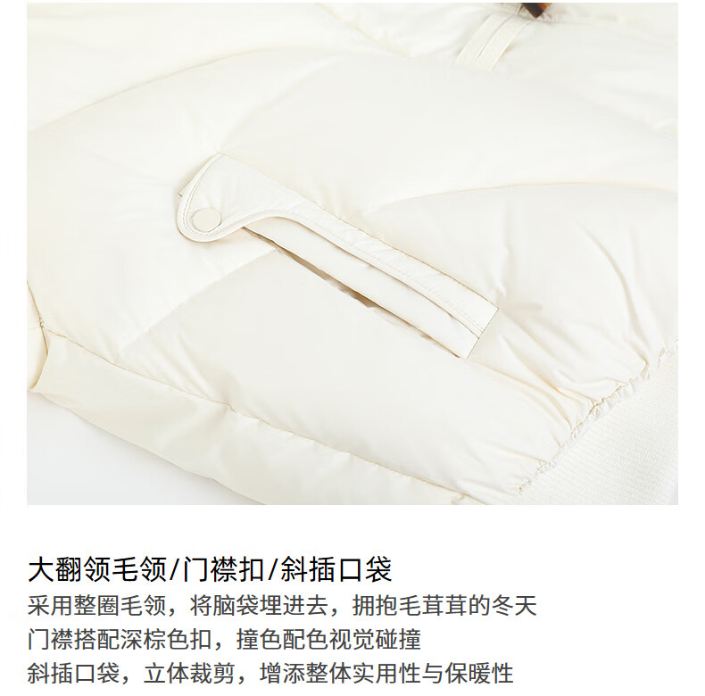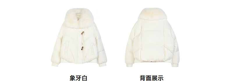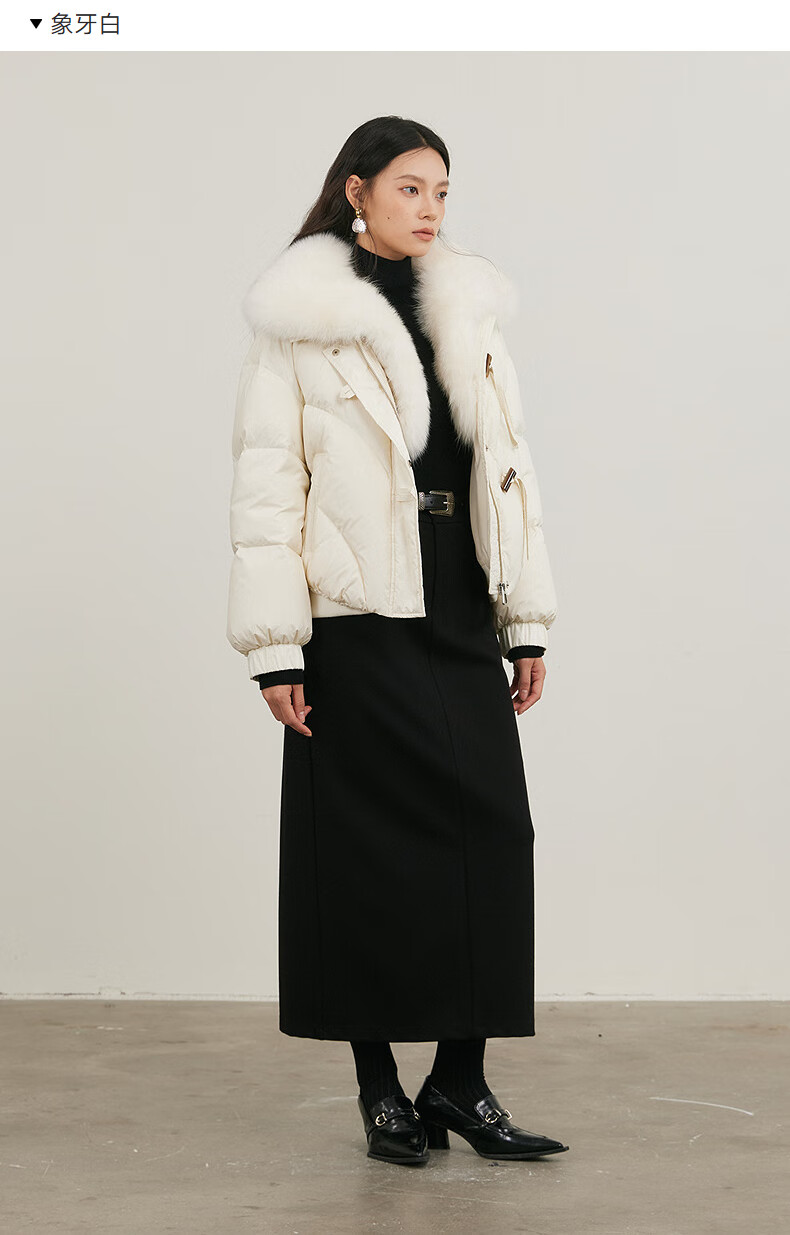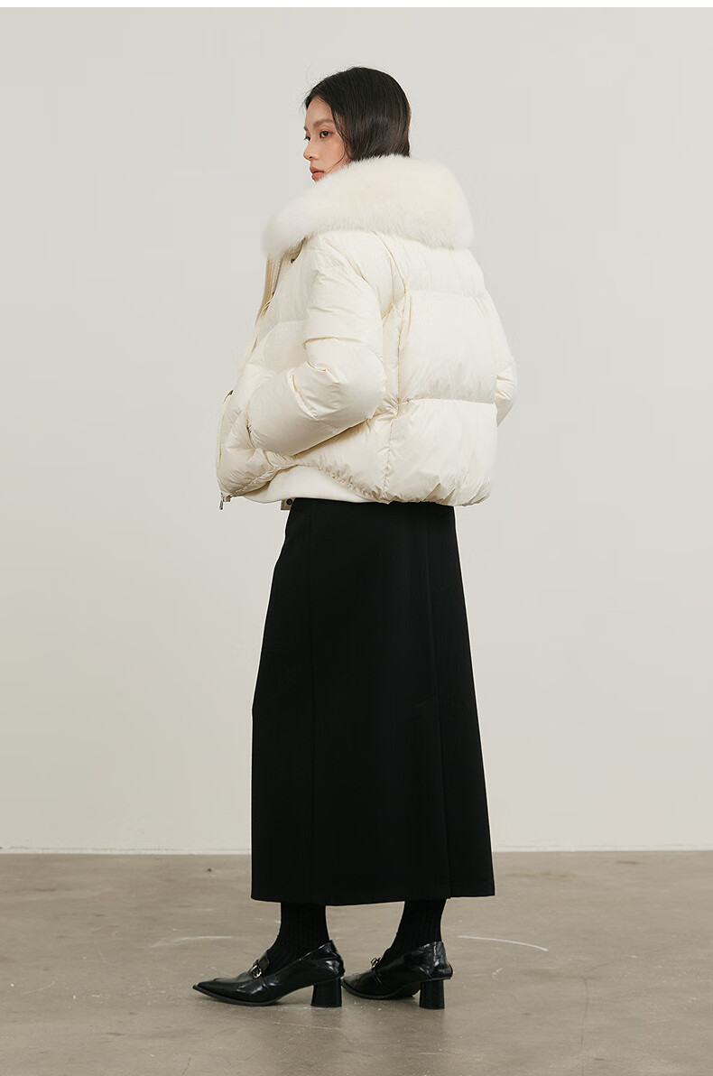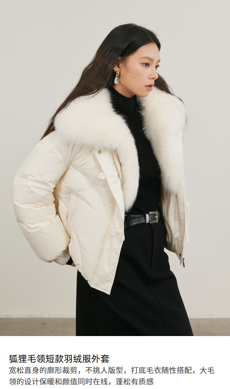 NEELLY shopping mall's same style winter new fox fur collar loose down jacket for women 90 white duck down short jacket ivory white S