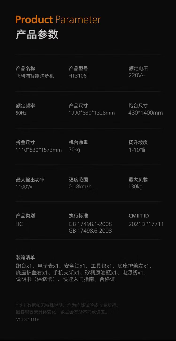 Philips smart treadmill for home use electric climbing folding noise reduction and shock absorption indoor gym special equipment 3106T widened treadmill can be stored