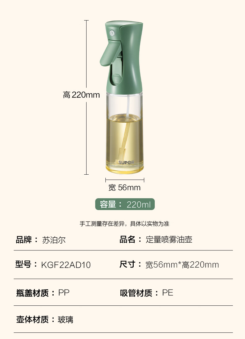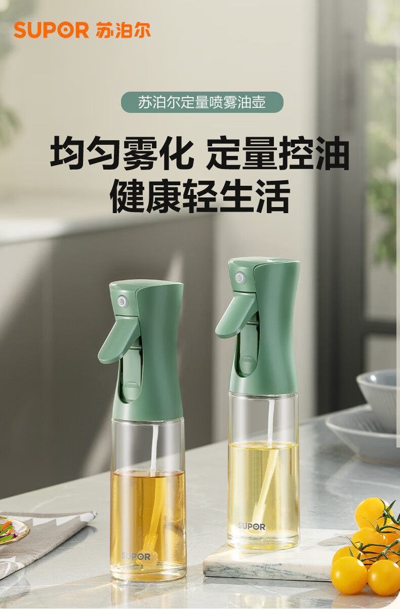 SUPOR oil spray pot oil bottle glass oil spray pot push-type oil control pot edible olive oil soy sauce vinegar atomized quantitative oil spray quantitative spray oil pot oil spray pot 220ml