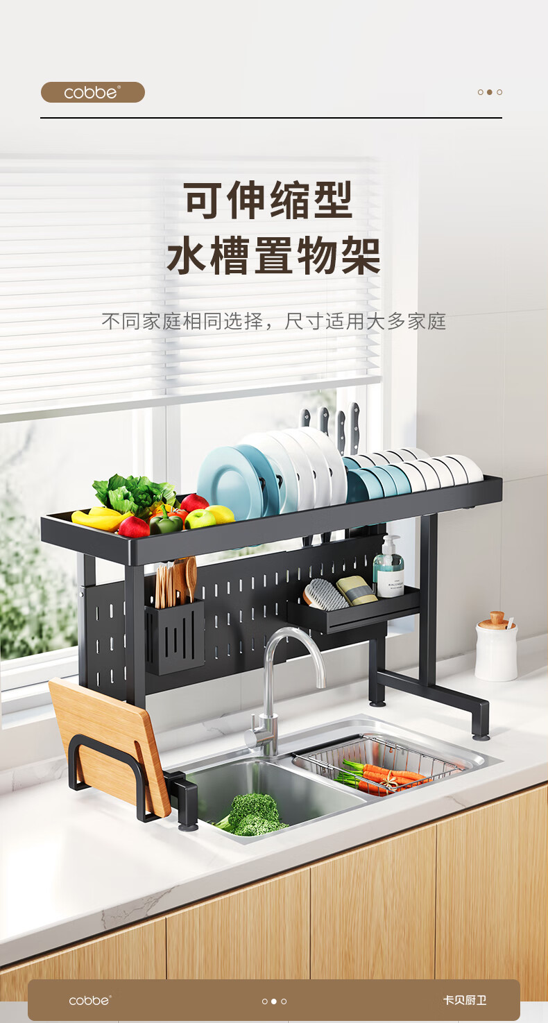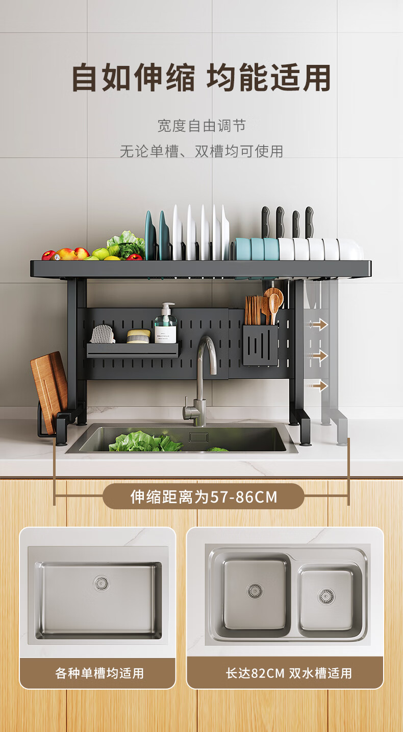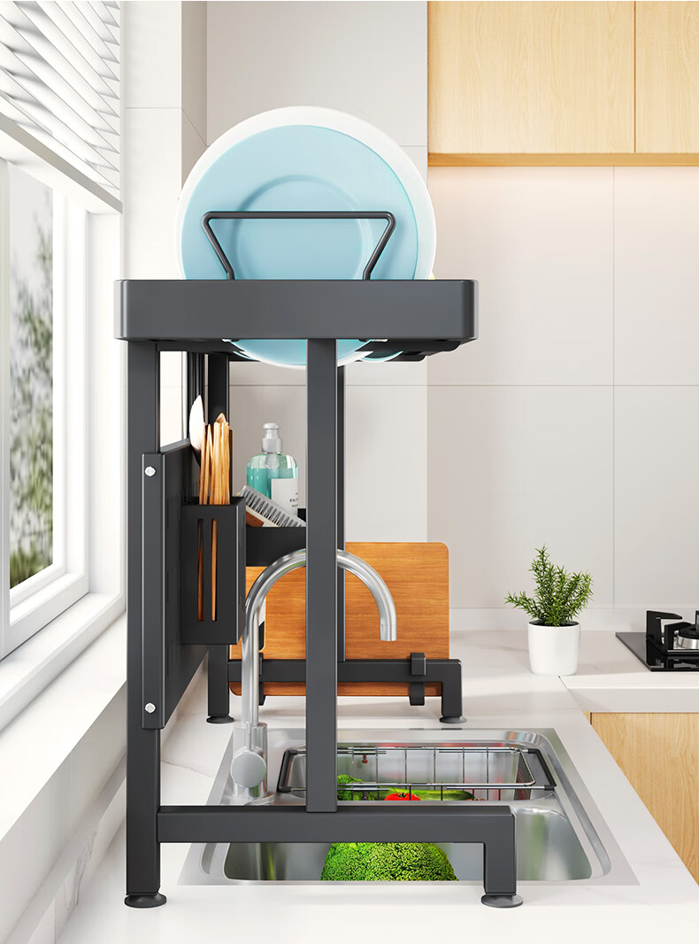 Kabei kitchen sink rack dish rack utensil storage rack telescopic drain rack dishwashing sink storage rack drain basket black - sink rack single layer 75CM