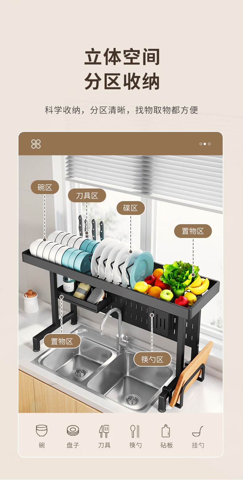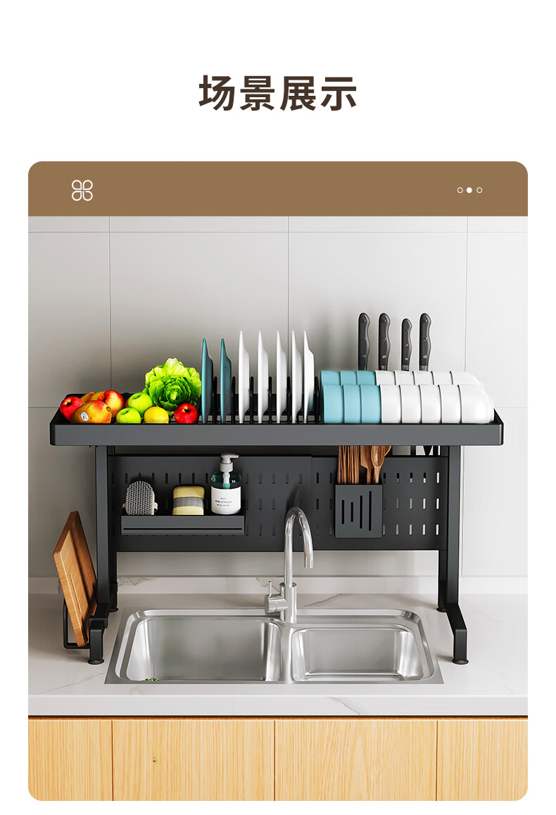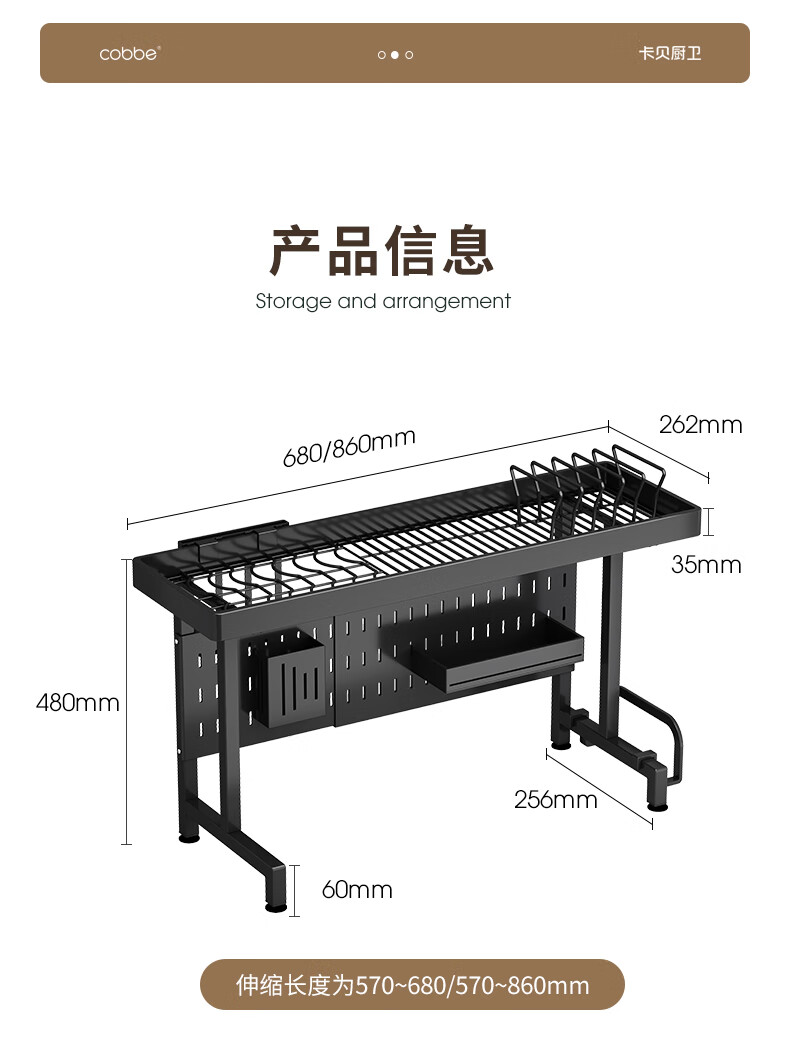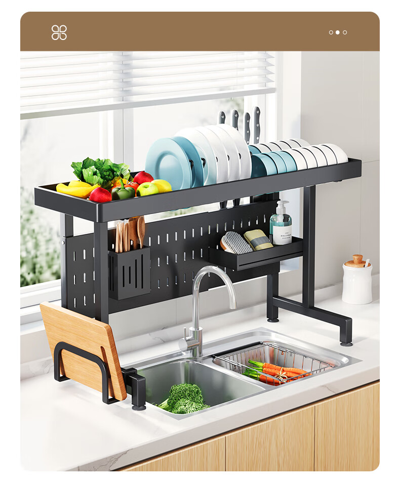 Kabei kitchen sink rack dish rack utensil storage rack telescopic drain rack dishwashing sink storage rack drain basket black - sink rack single layer 75CM