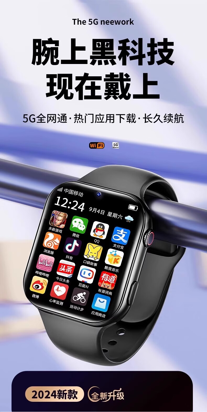 XVVMI machine is suitable for official genuine smart children's phone watch 5G full network communication multi-function positioning waterproof boys and girls junior high school students and teenagers 6-12 years old black Wechat + 5G full network + learning APP + positioning