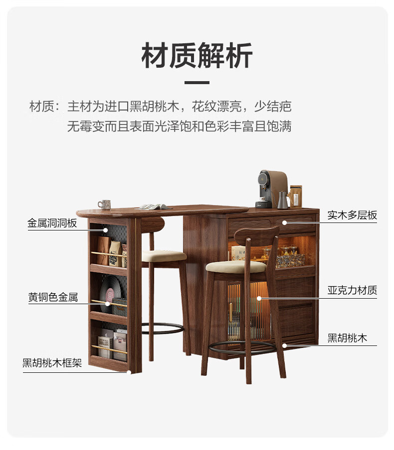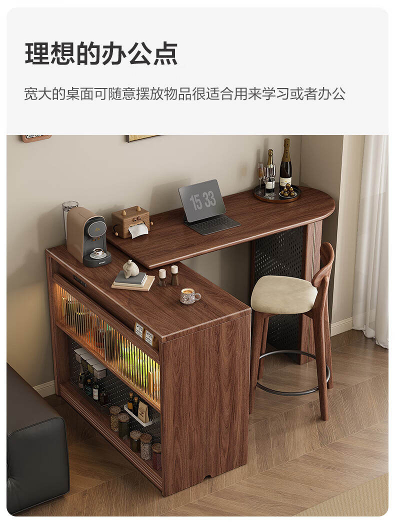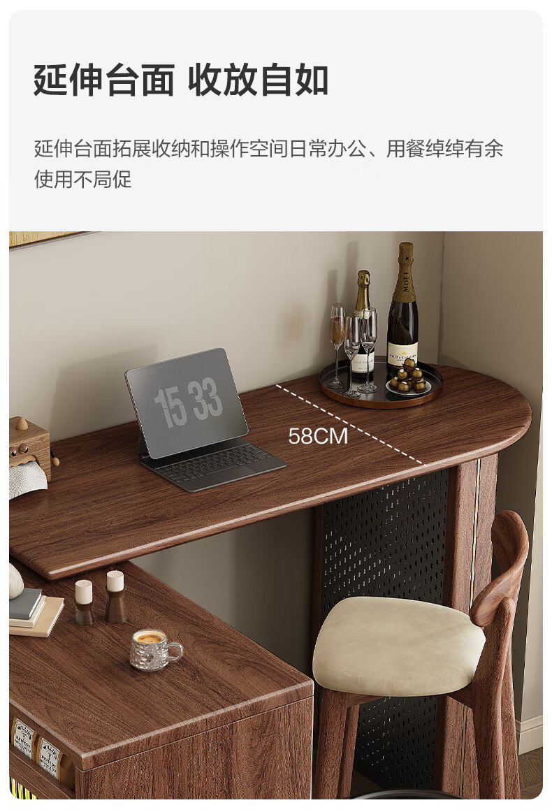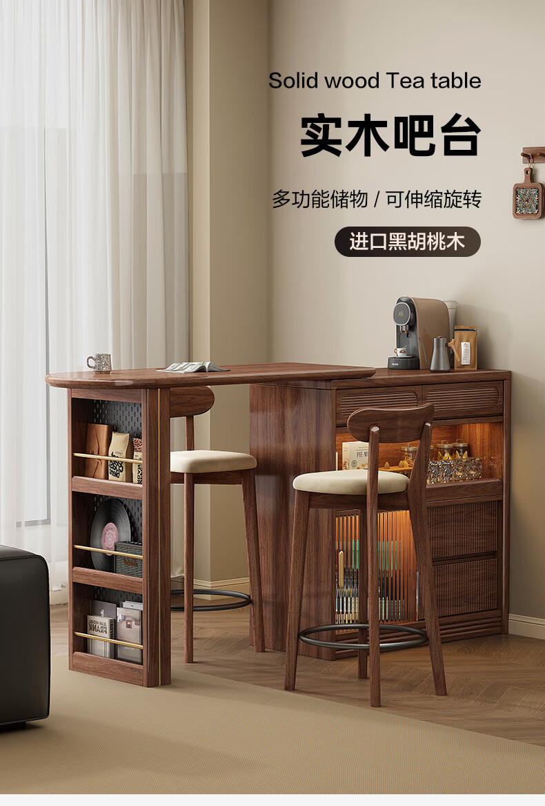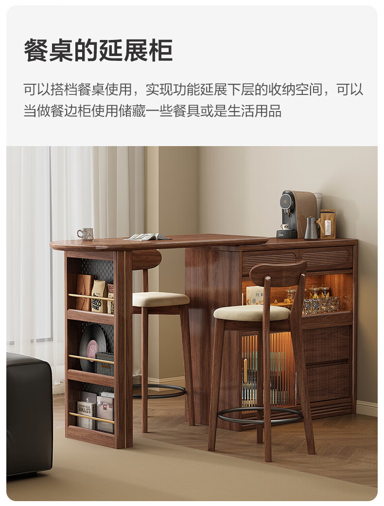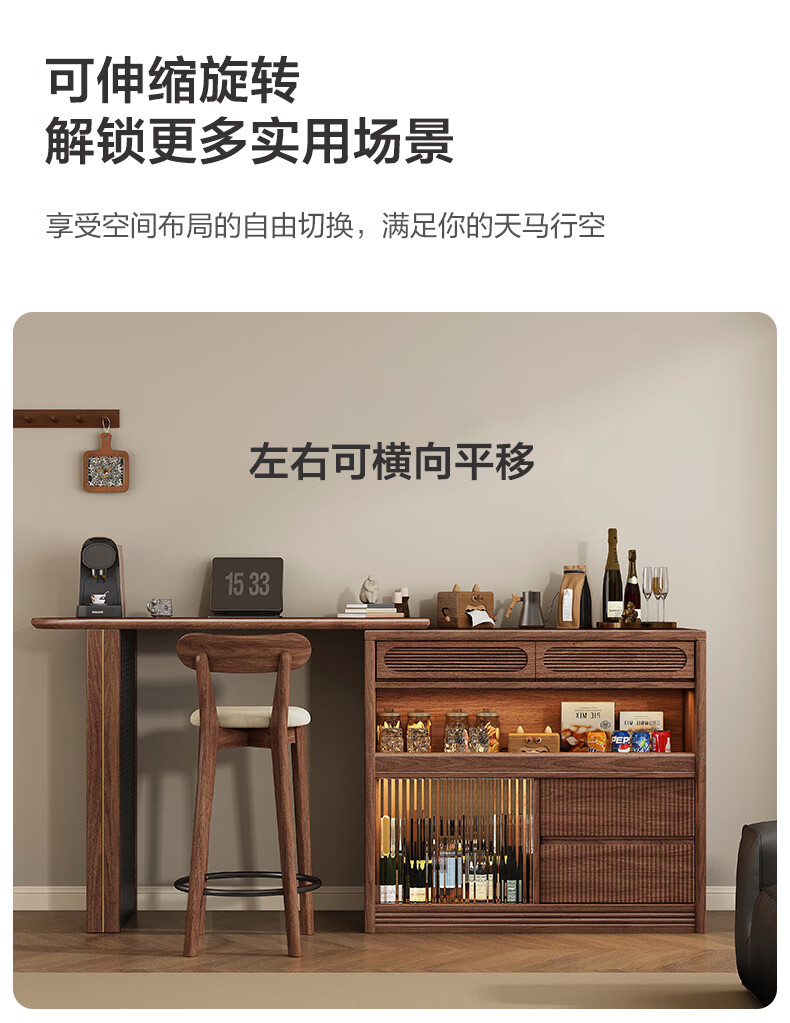 Muyuke antique solid wood bar cabinet retractable island black walnut living room home small apartment bar table sideboard bar cabinet + retractable table + storage cabinet + bar chair