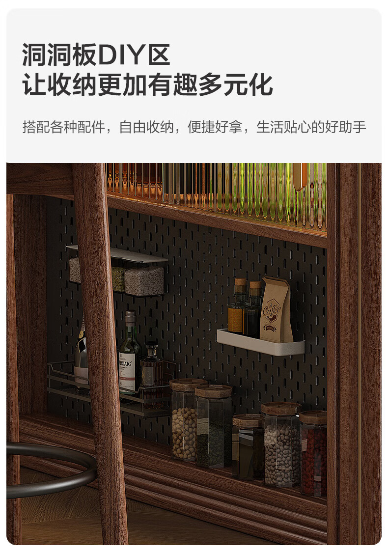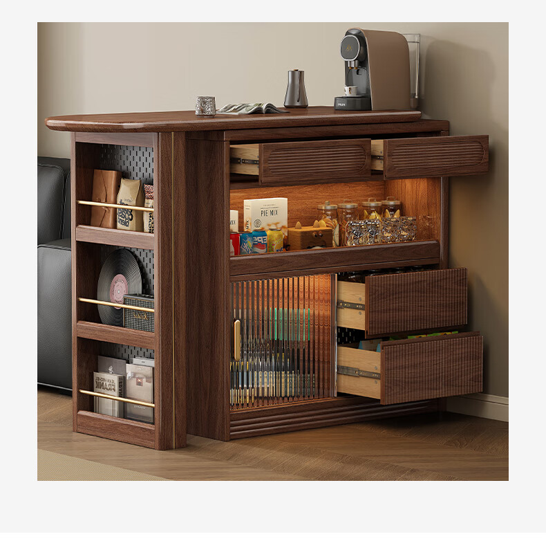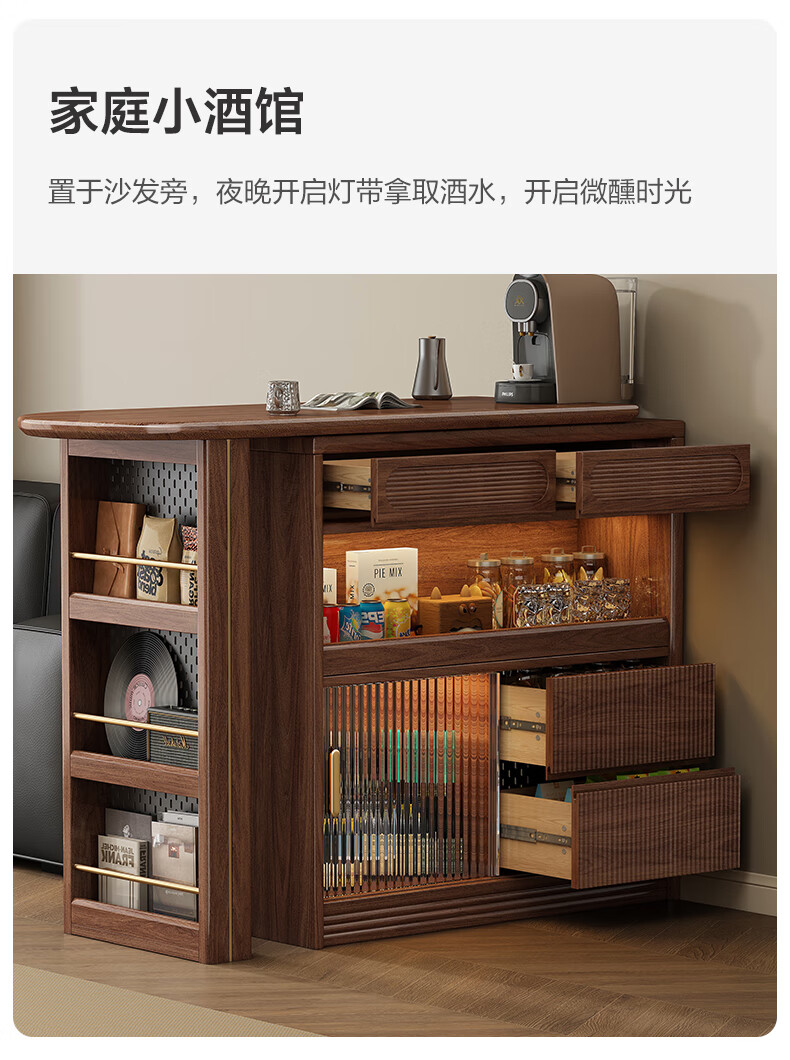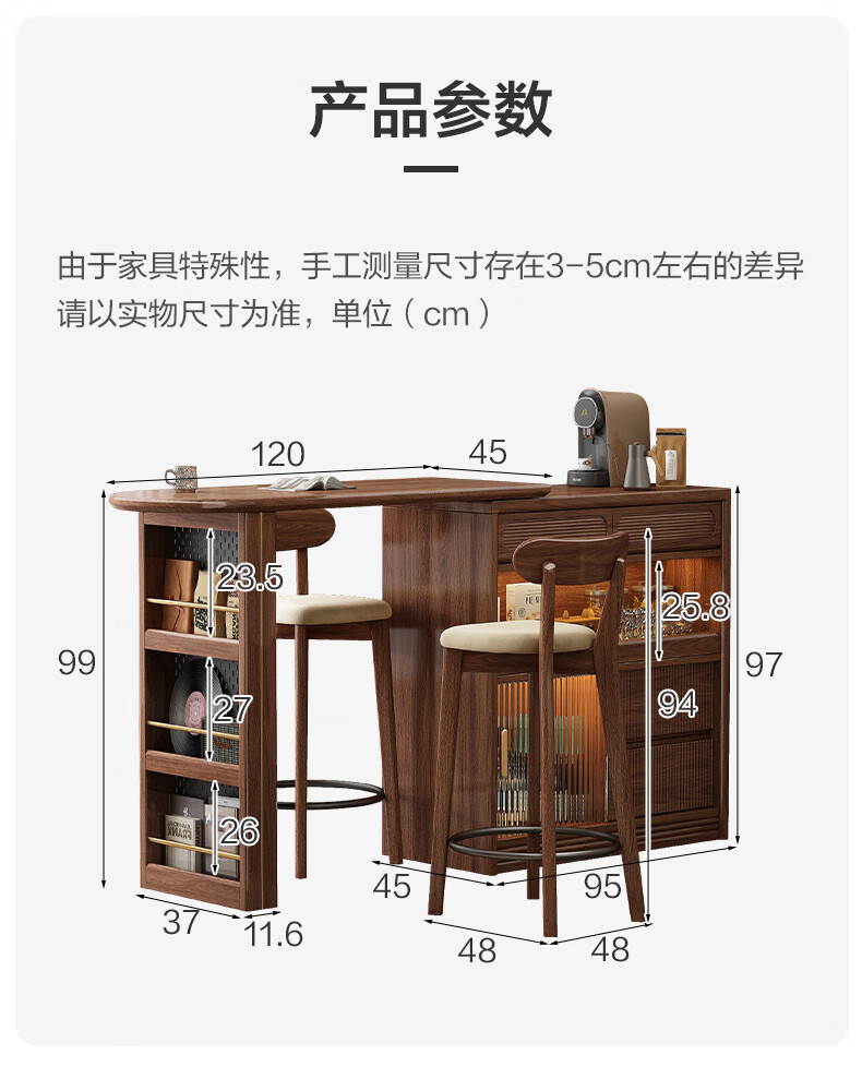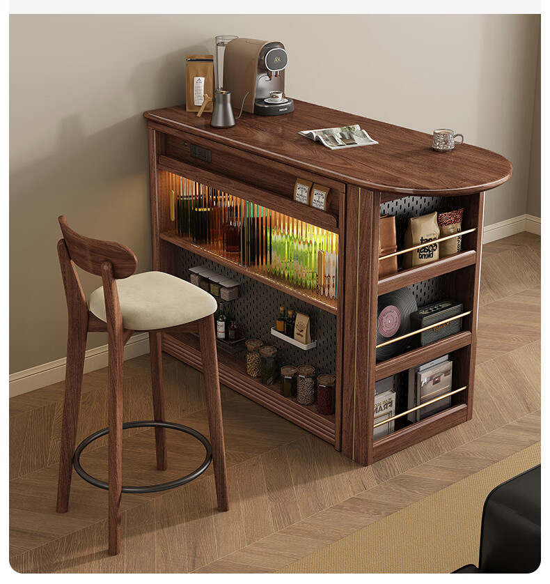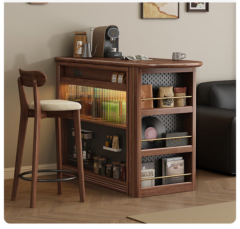 Muyuke antique solid wood bar cabinet retractable island black walnut living room home small apartment bar table sideboard bar cabinet + retractable table + storage cabinet + bar chair