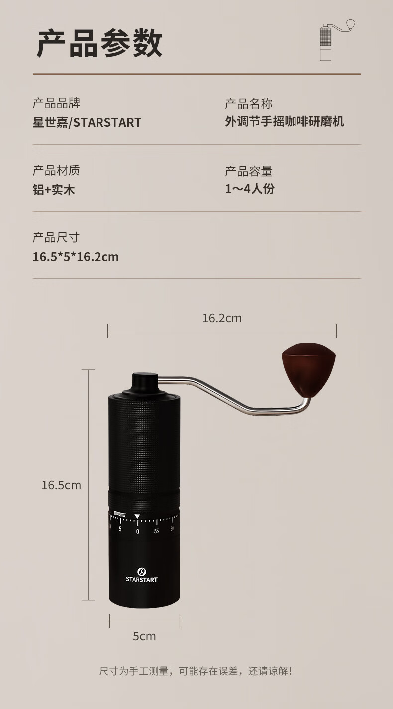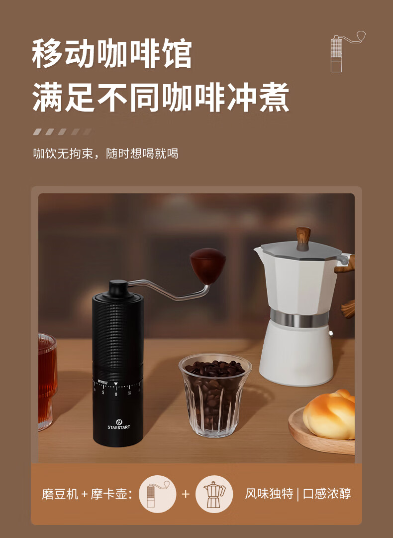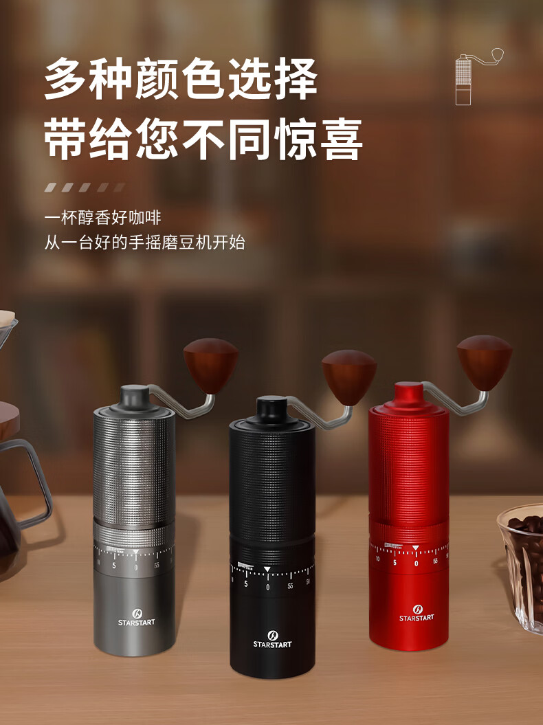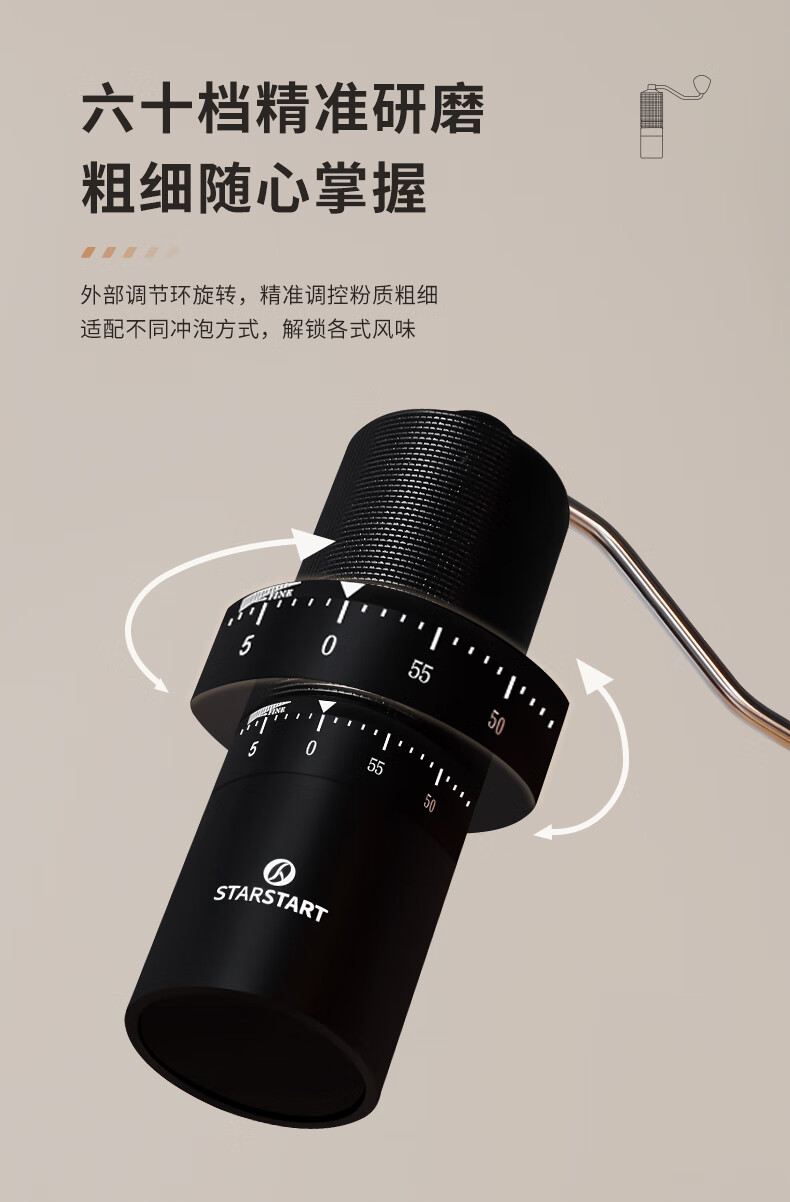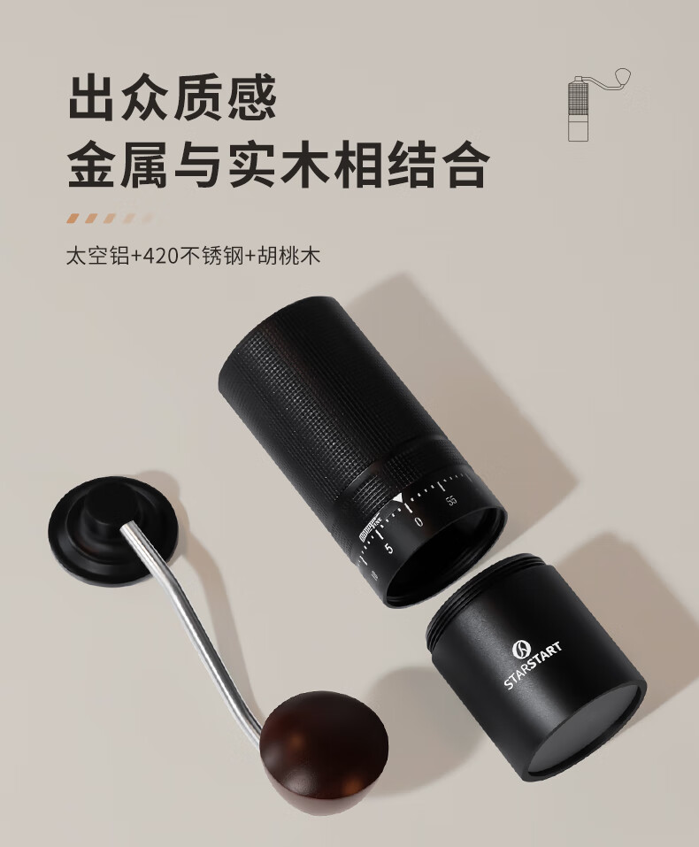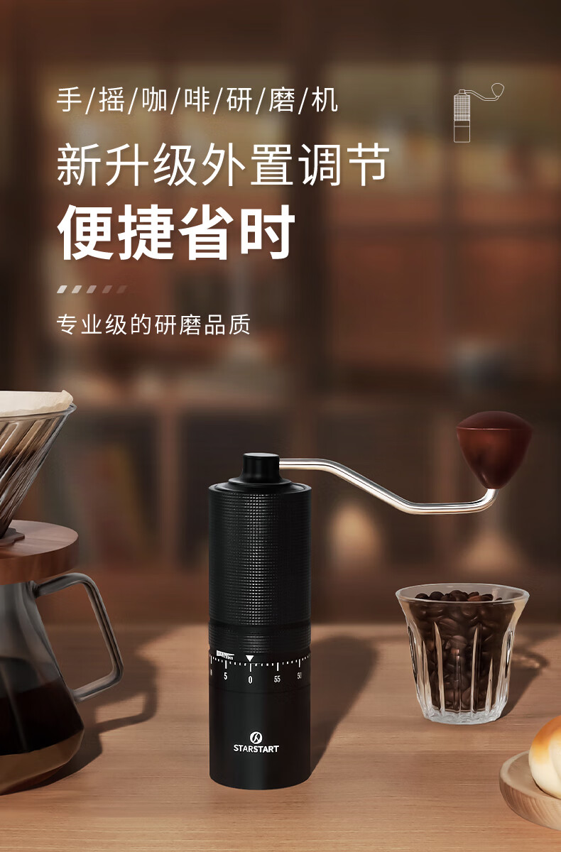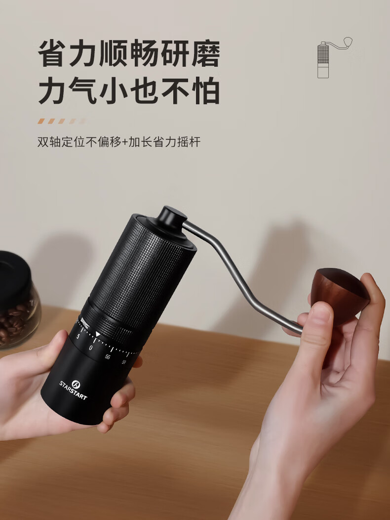 STAR-START steel core 60-speed external adjustment manual bean grinder hand grinder coffee machine grinder all-in-one manual black 60-speed external adjustment & pentagonal steel core