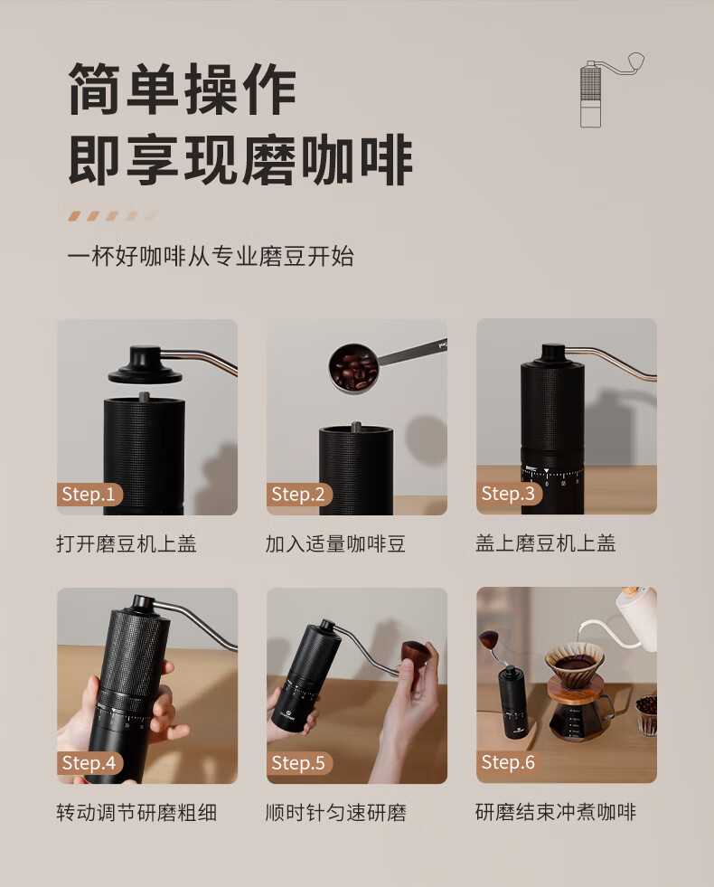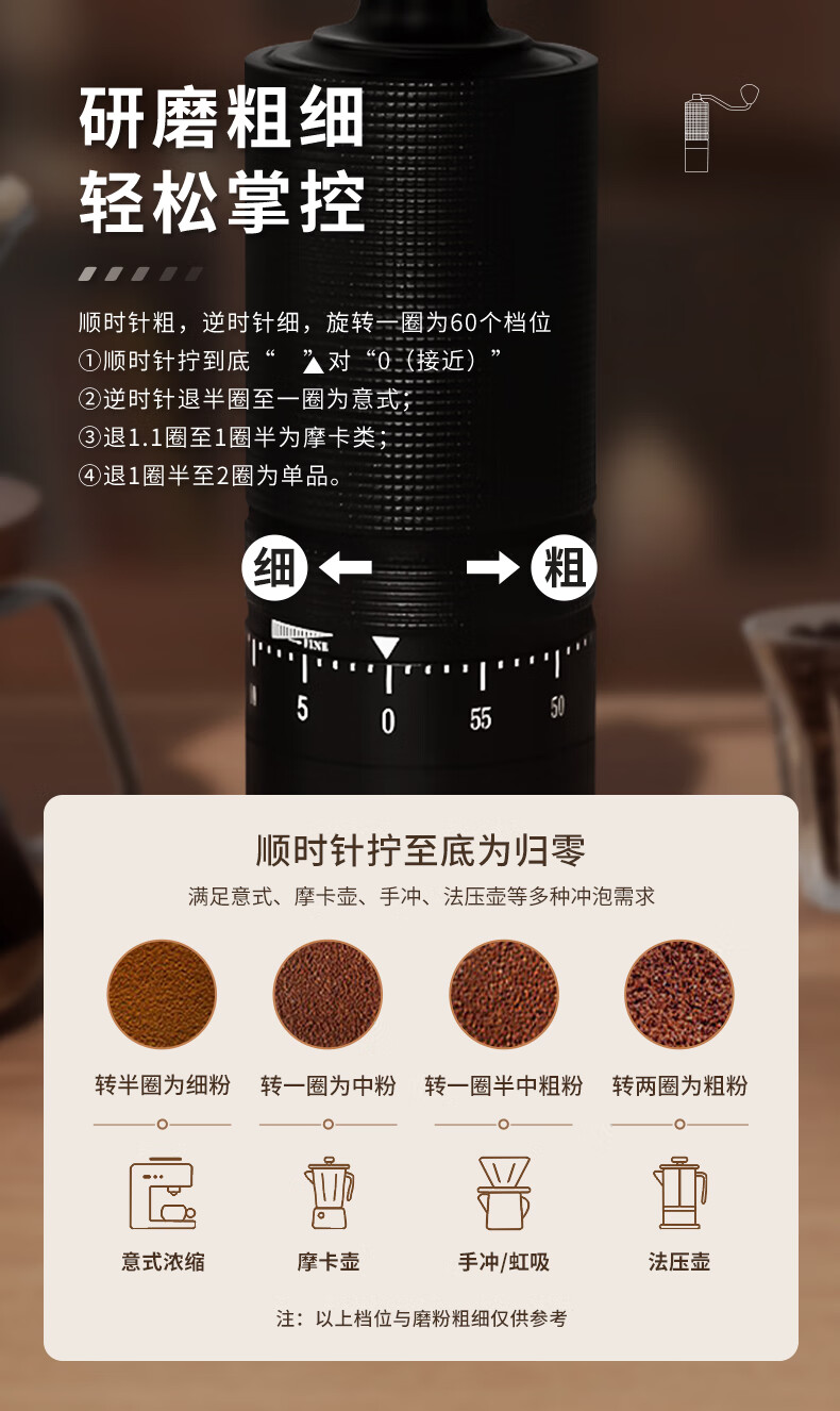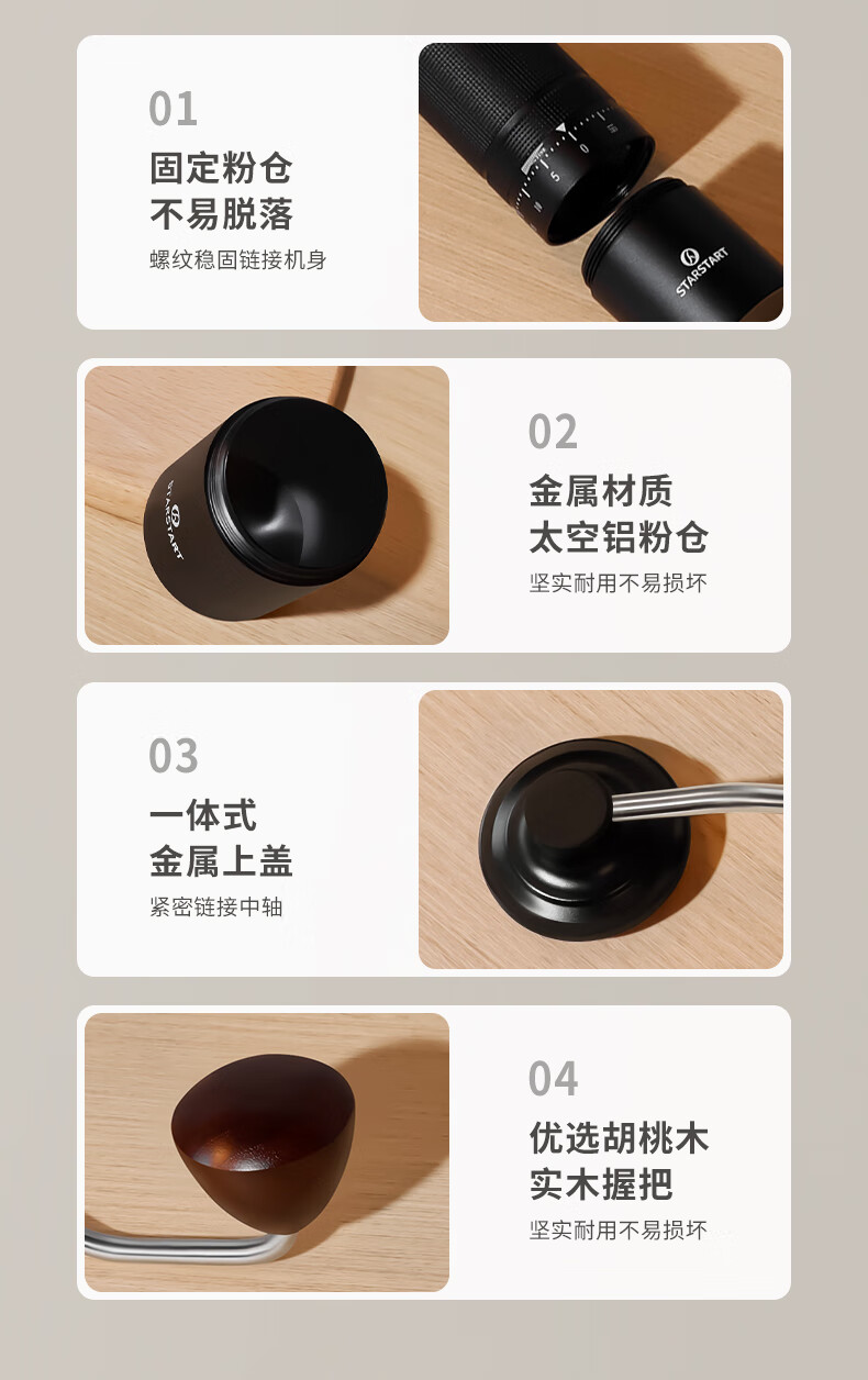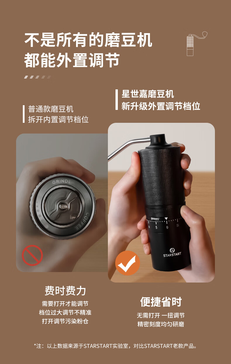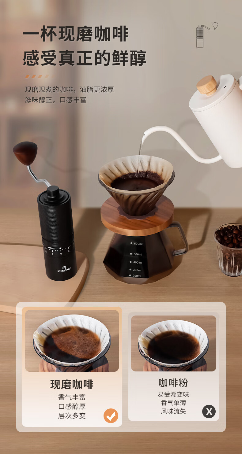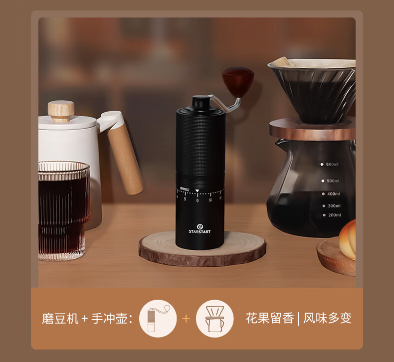 STAR-START steel core 60-speed external adjustment manual bean grinder hand grinder coffee machine grinder all-in-one manual black 60-speed external adjustment & pentagonal steel core