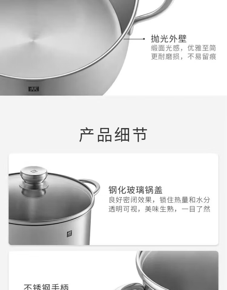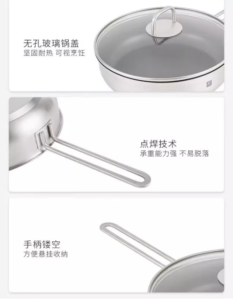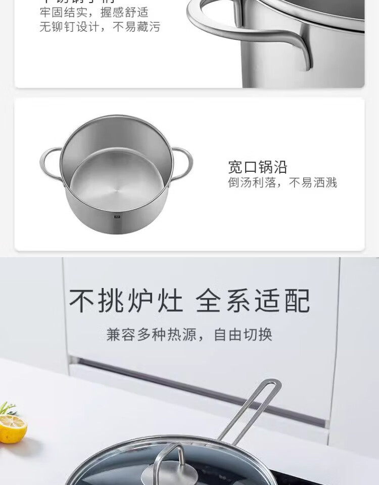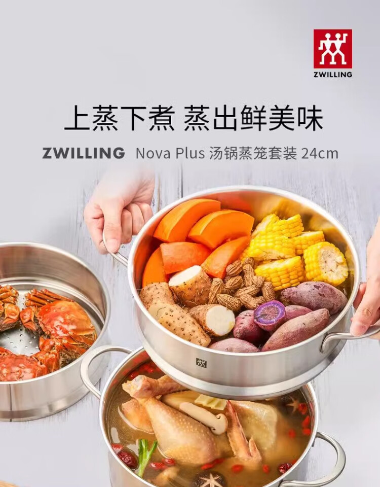 Zwilling German Seiko pot set steamer soup pot frying pan stew pot uncoated non-stick household full set of stainless steel pot Nova_plus_stainless steel 3-piece set