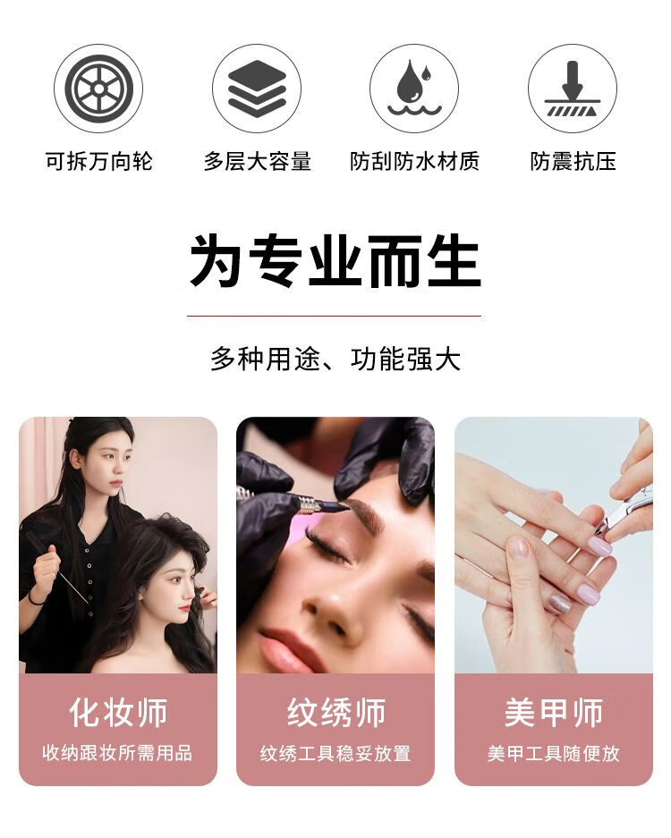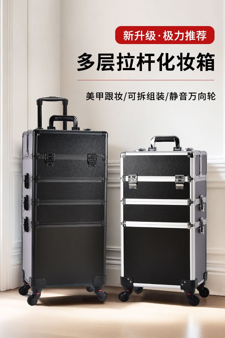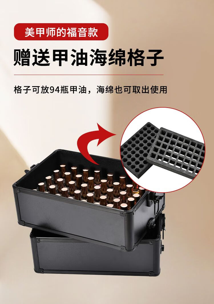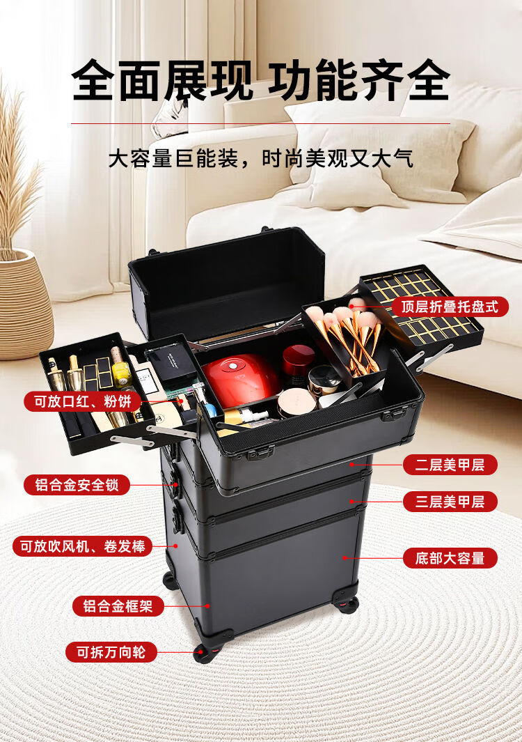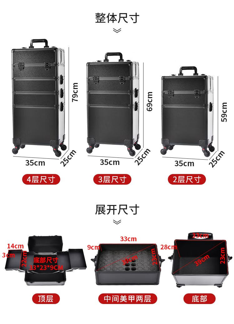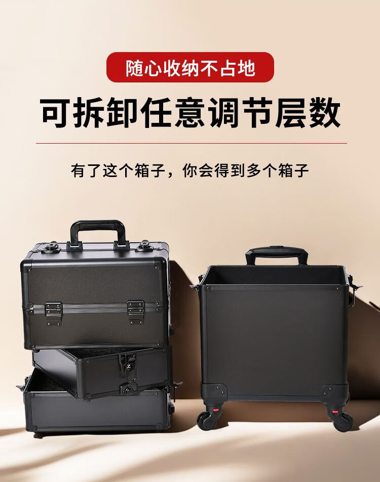 Vinoa 2025 multi-layer tattoo tool box, hairdressing, beauty, makeup and manicure box, large-capacity storage trolley case, black two-layer universal wheel
