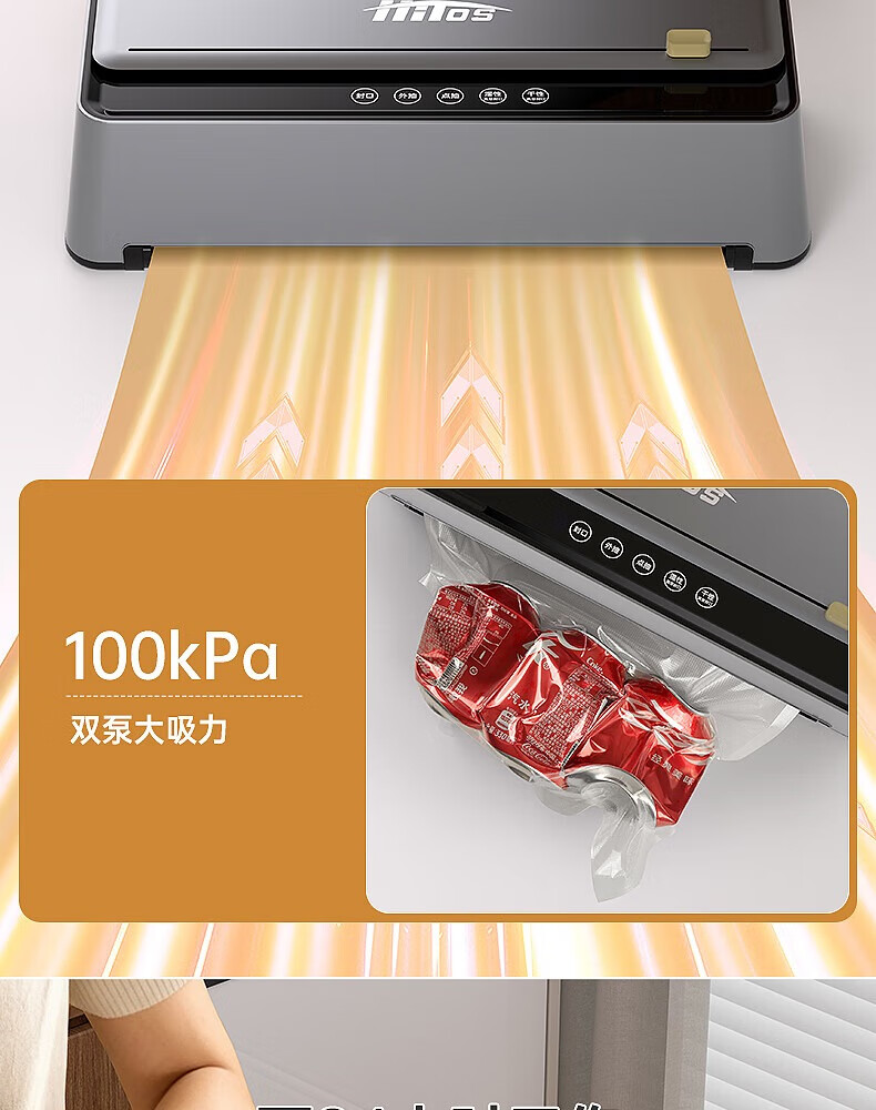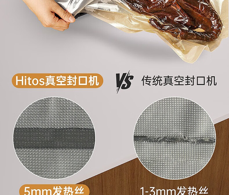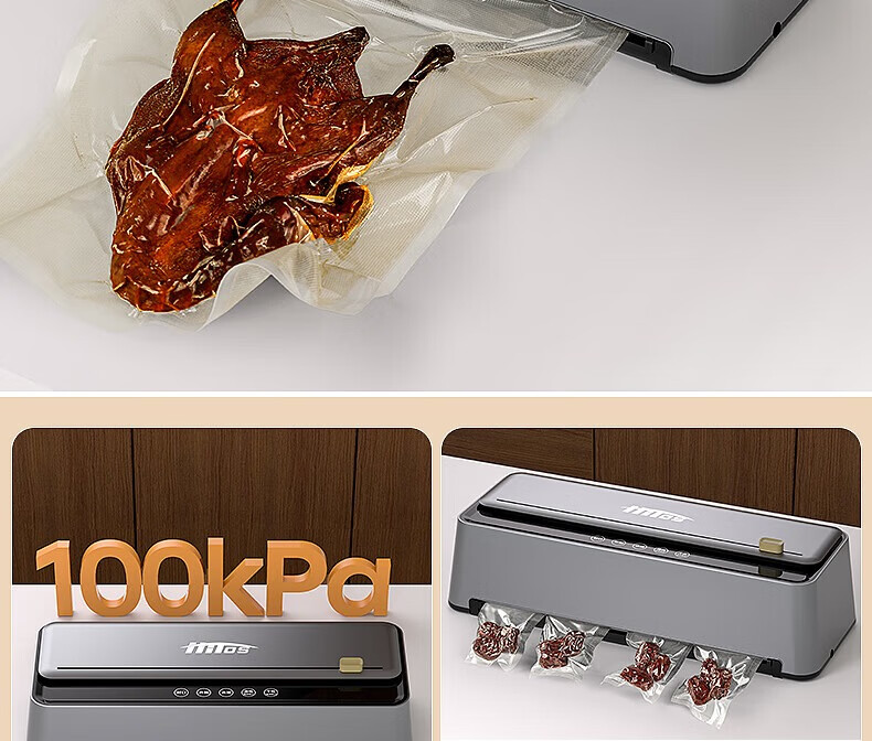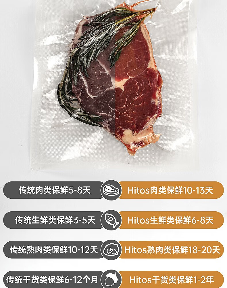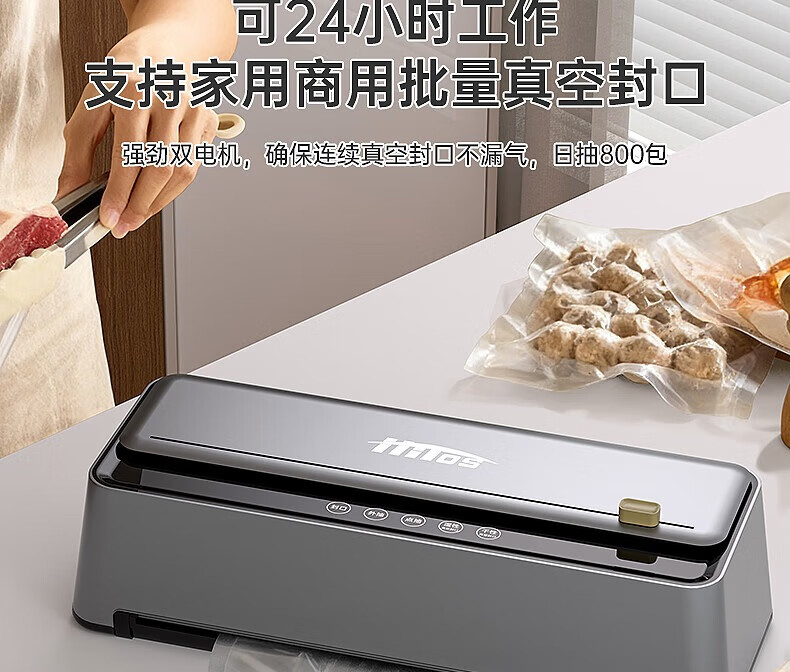 HITOS German vacuum machine sealing machine household fully automatic wet and dry compression and vacuum packaging all-in-one machine for commercial use no pressure/double pump high suction/can be used 24 hours no pressure high suction vacuum machine + 1 roll bag + 105 piece bag 30cm