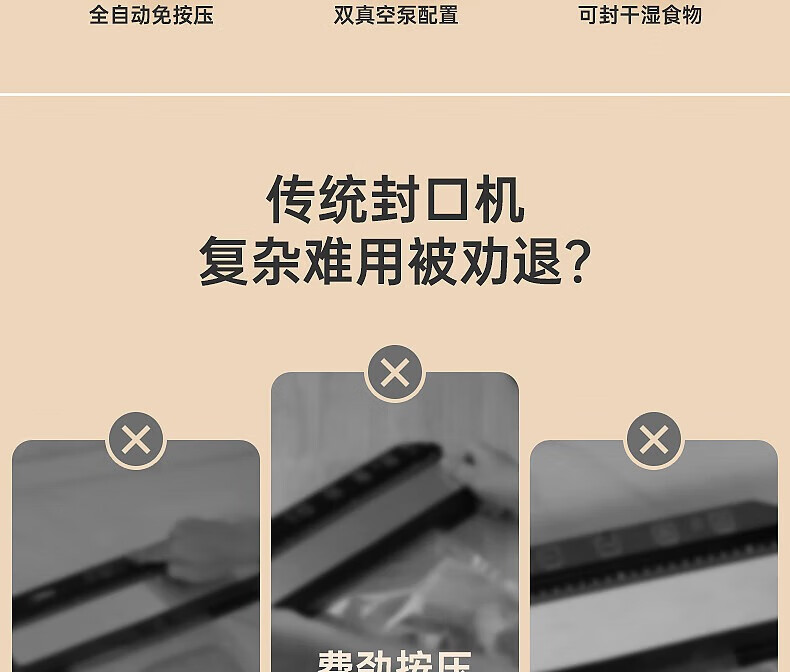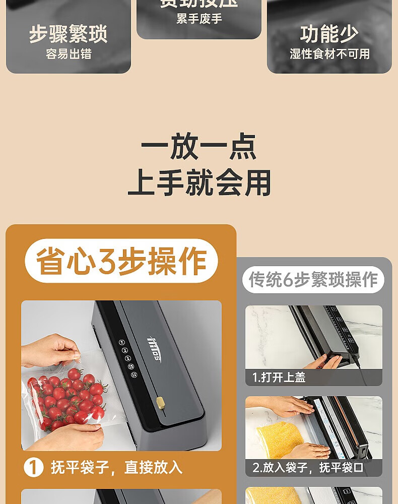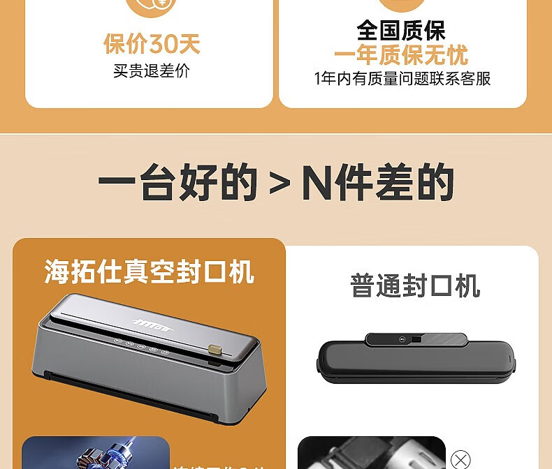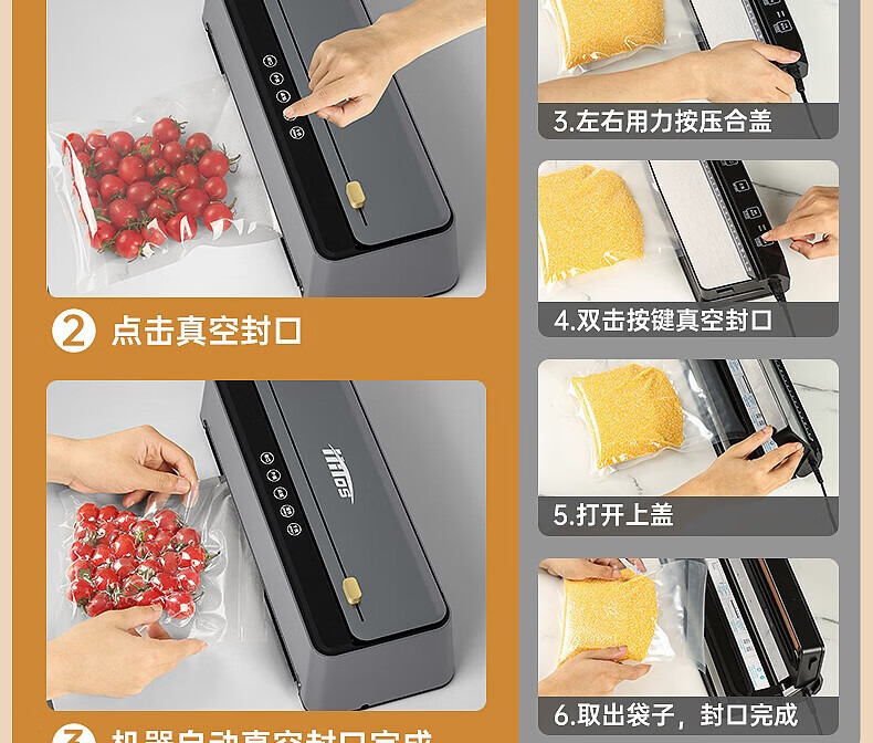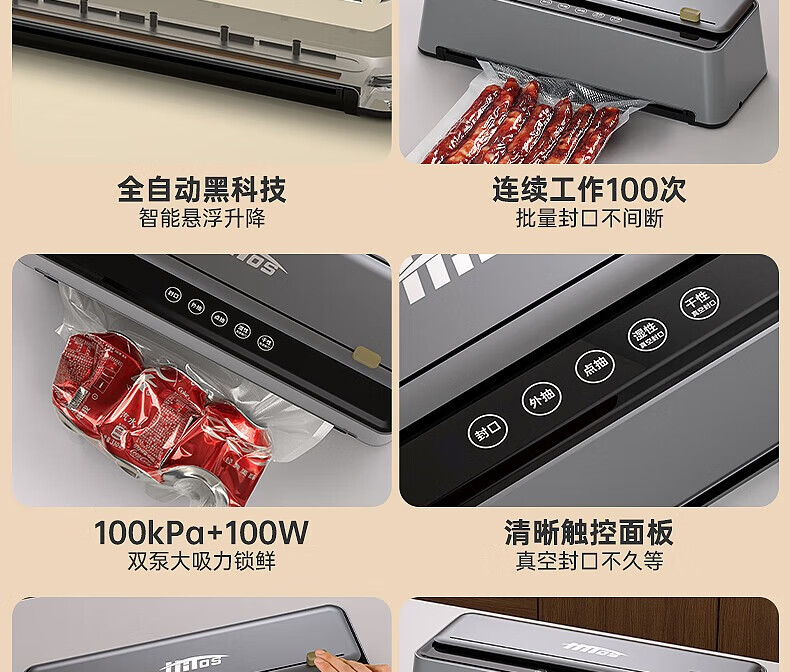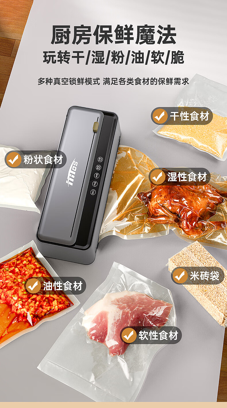 HITOS German vacuum machine sealing machine household fully automatic wet and dry compression and vacuum packaging all-in-one machine for commercial use no pressure/double pump high suction/can be used 24 hours no pressure high suction vacuum machine + 1 roll bag + 105 piece bag 30cm