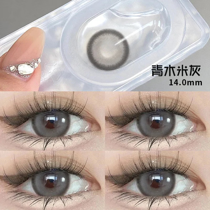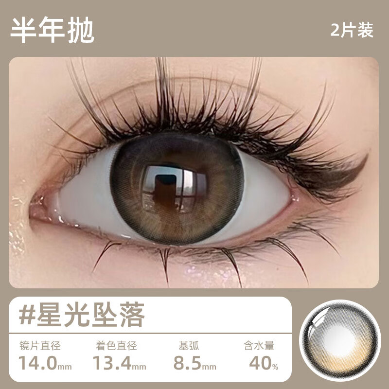 Half-yearly disposable 2-piece color contact lenses, small diameter 14.0 cool natural color contact lenses, free companion box, starlight fall 14.0mm 0 degrees