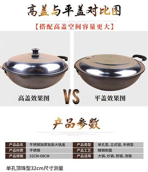 Chiweng cooking household stainless steel pot lid, wok, old-fashioned lid, high lid, heightened barrel lid, thickened steamer lid, 73cm heightened pot lid, 2 handles are included with your order