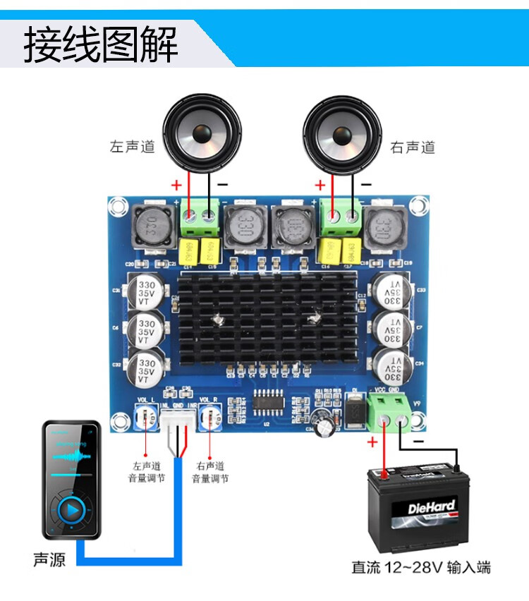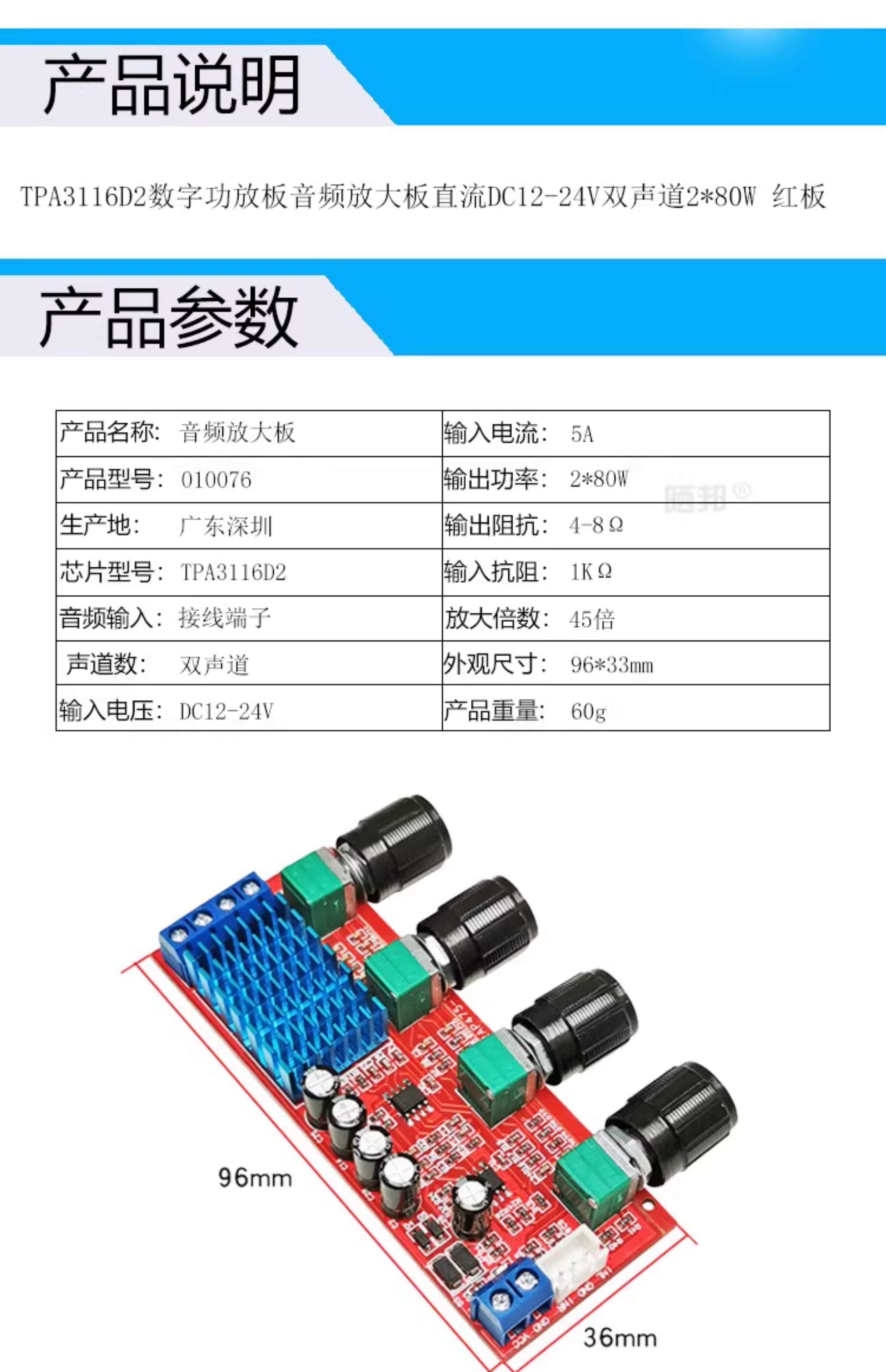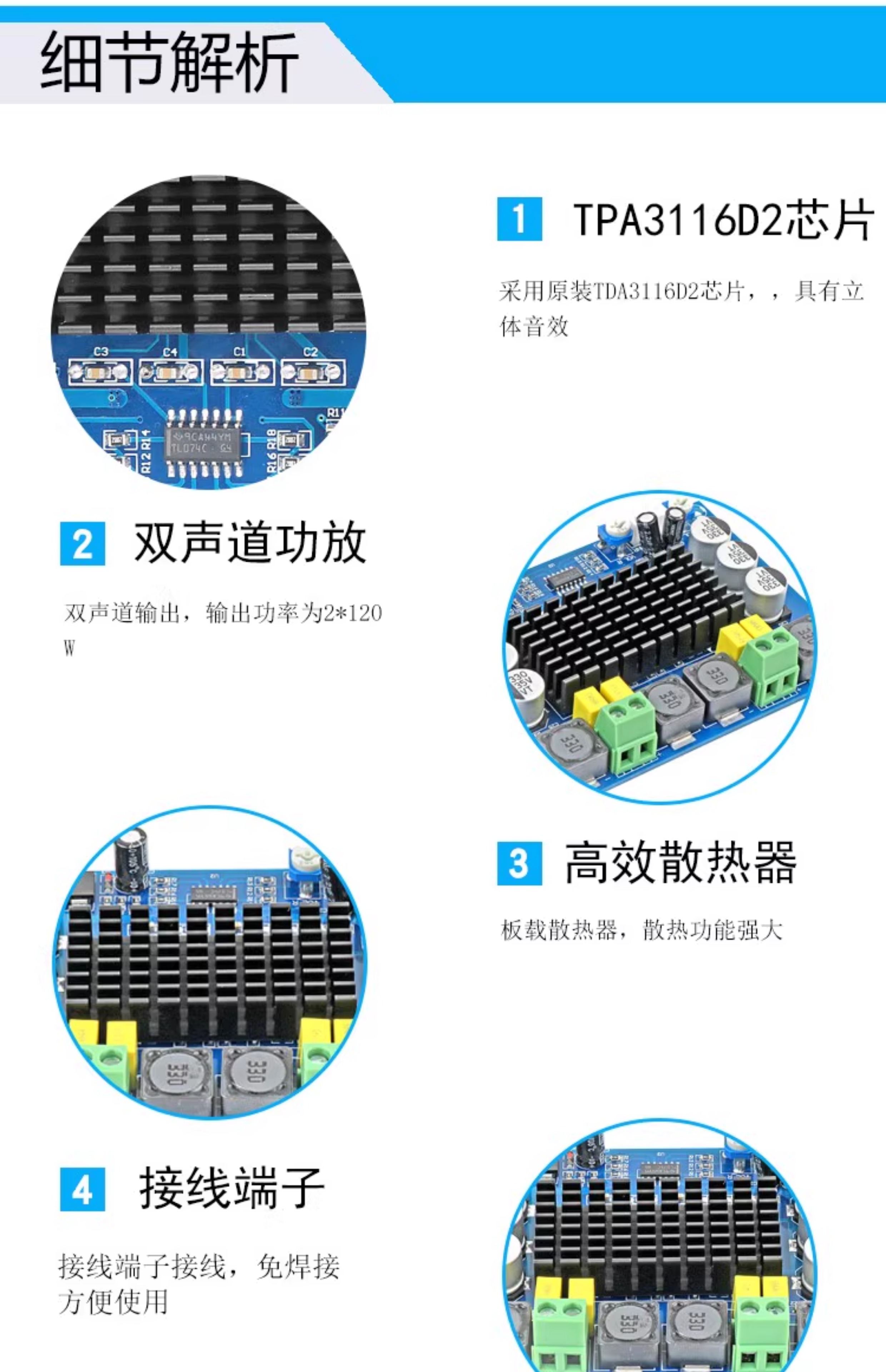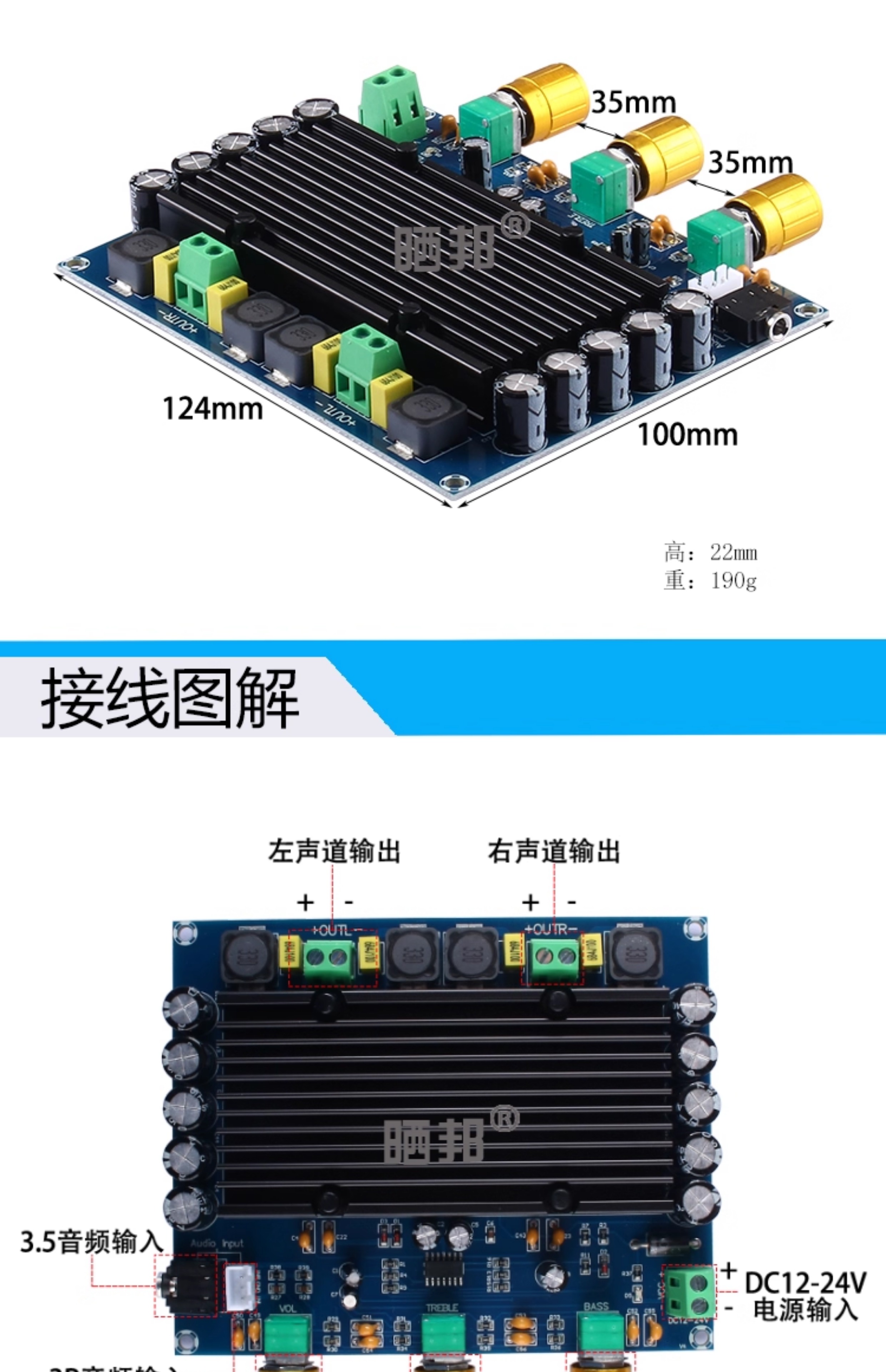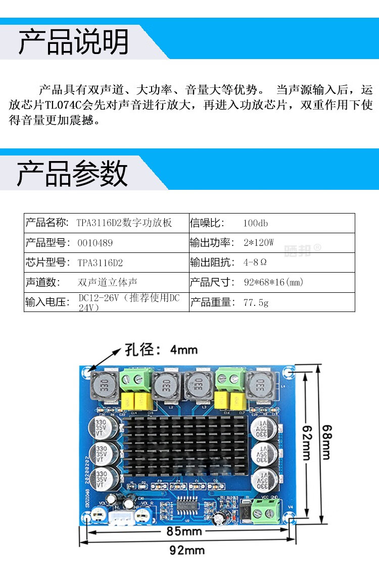 TPA3116D2 digital power amplifier board digital audio amplification module small power amplifier with tone dual 150 high power 50W*2+100WTPA3116D2 Bluetooth power amplifier