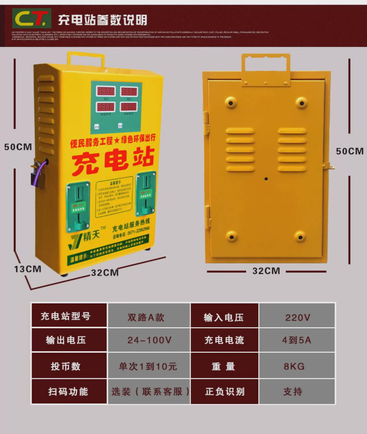 Jingtian Electric Vehicle Electric Vehicle Dual-channel Intelligent Scan Code Coin-operated Fast Charging Station Charger Society Dual-channel High Power Enhanced Model Scan Code