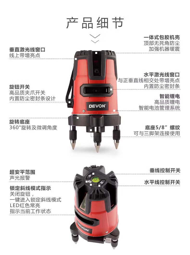 Devon green light level meter three lines five lines high precision strong light fine line marking instrument automatic leveling 9319-3XG green light three lines