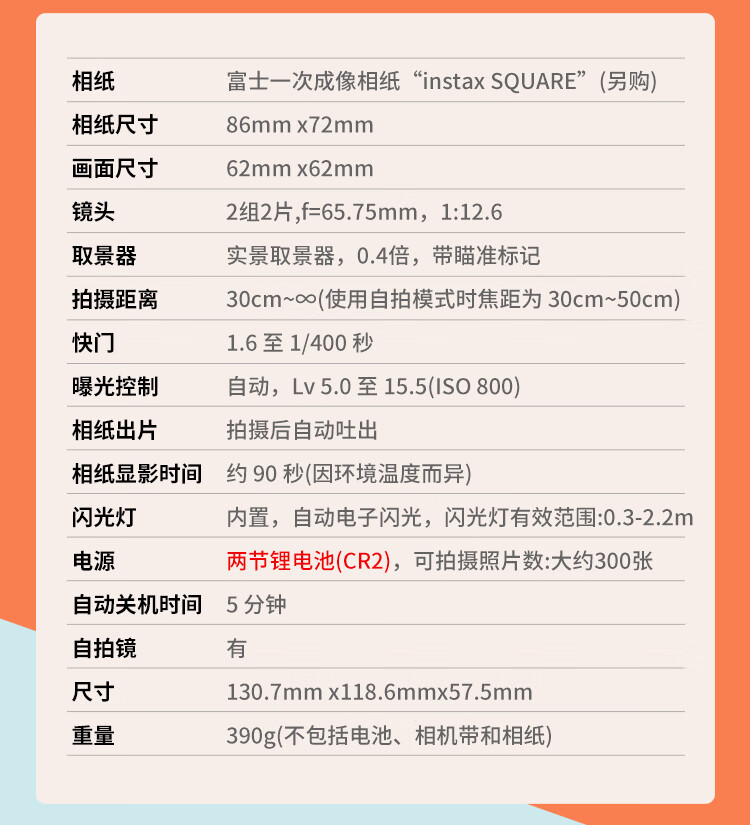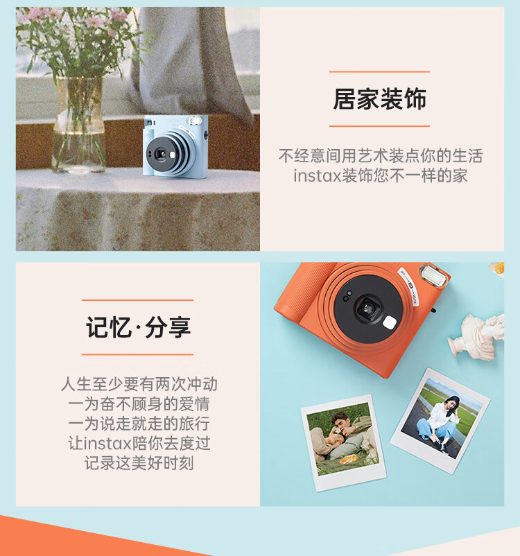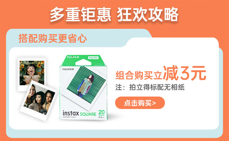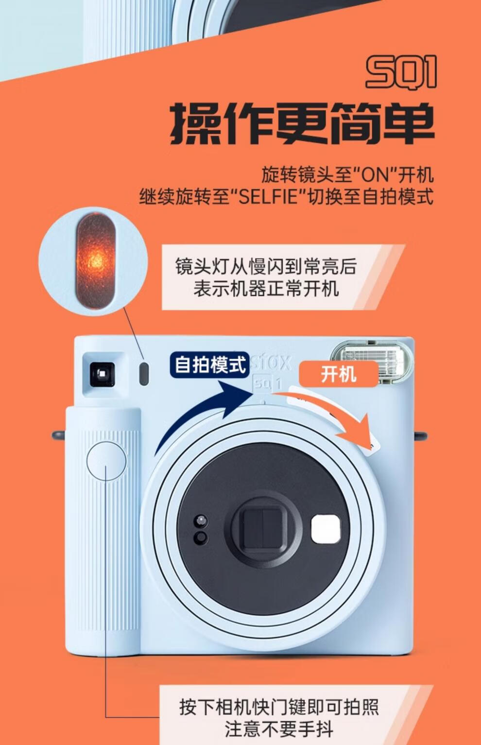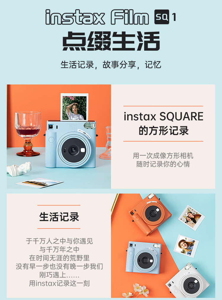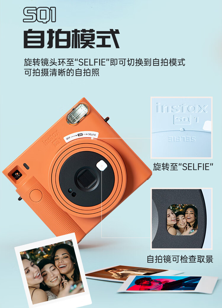FUJIFILMFuji Polaroid instax SQ1/SQ6/SQ40 one-time imaging 4-inch square camera beauty retro SQ1 Vibrant Orange ready-made ready-made standard