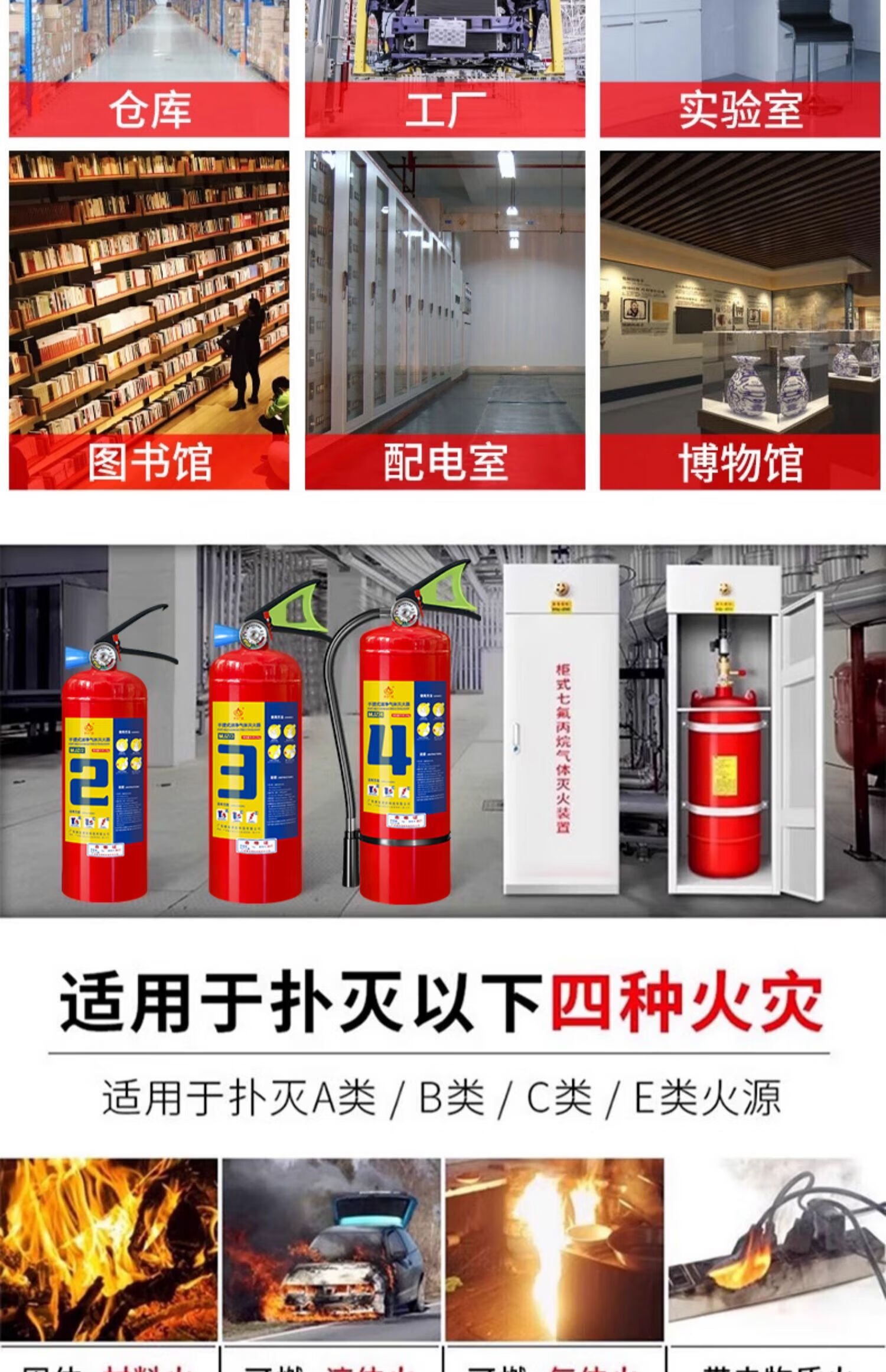 Hanging heptafluoropropane fire extinguisher 4kg 6kg portable clean gas cabinet fire extinguishing device 2kg 5kg cabinet type 70L (excluding chemicals)