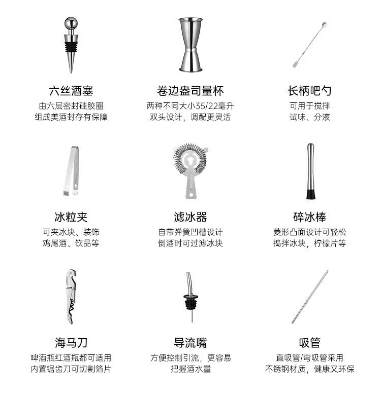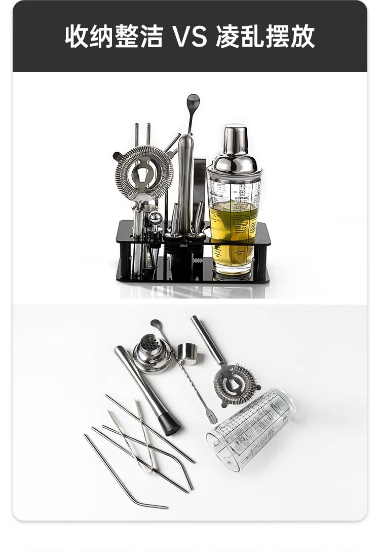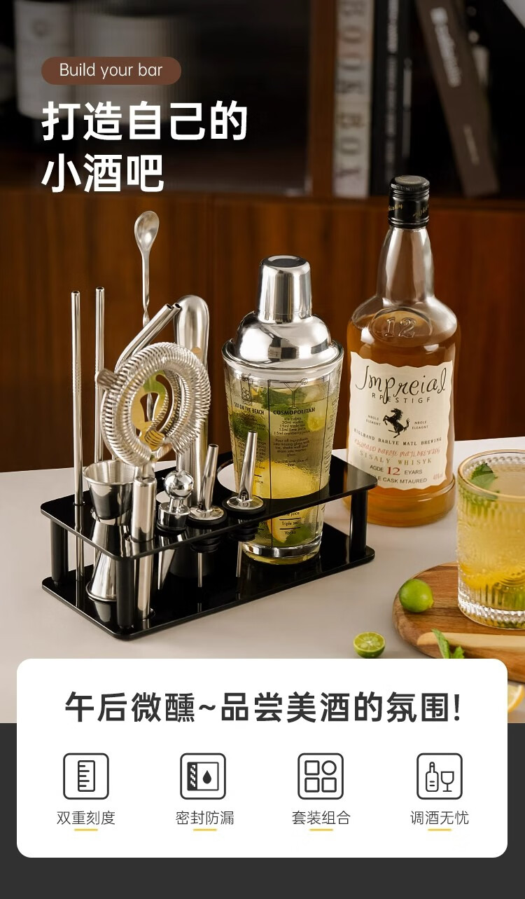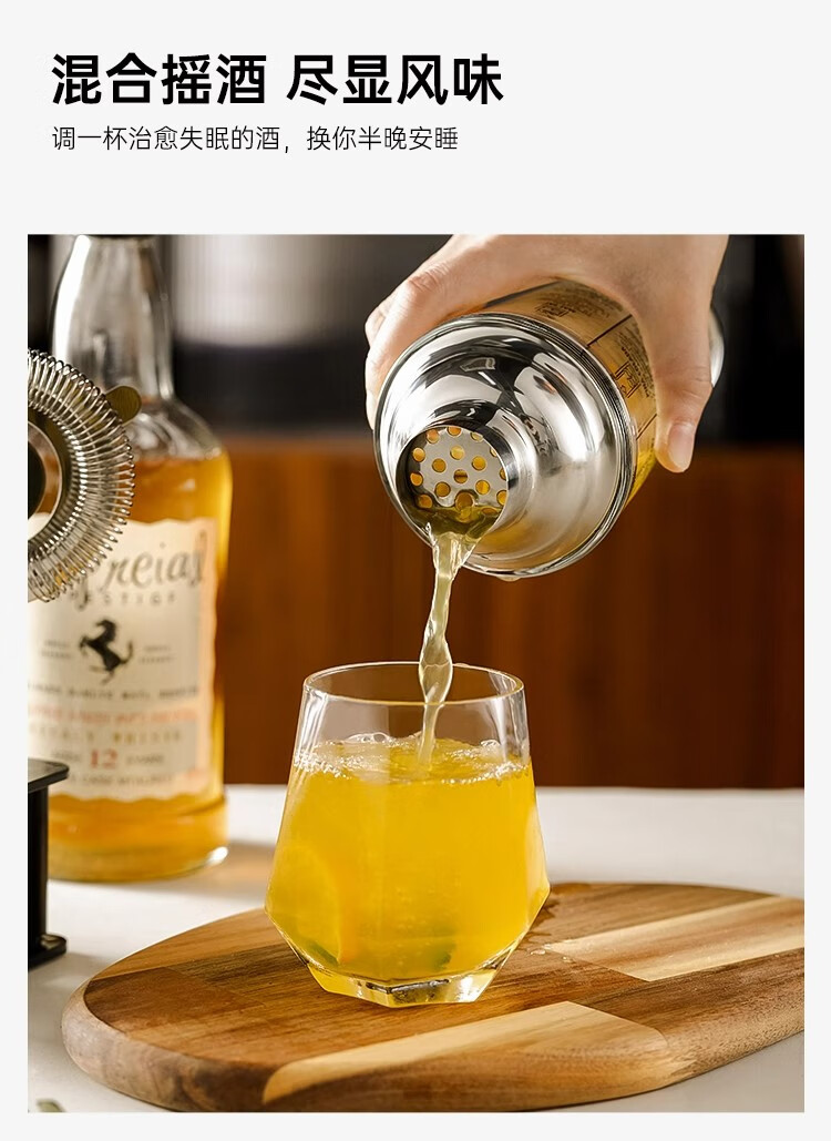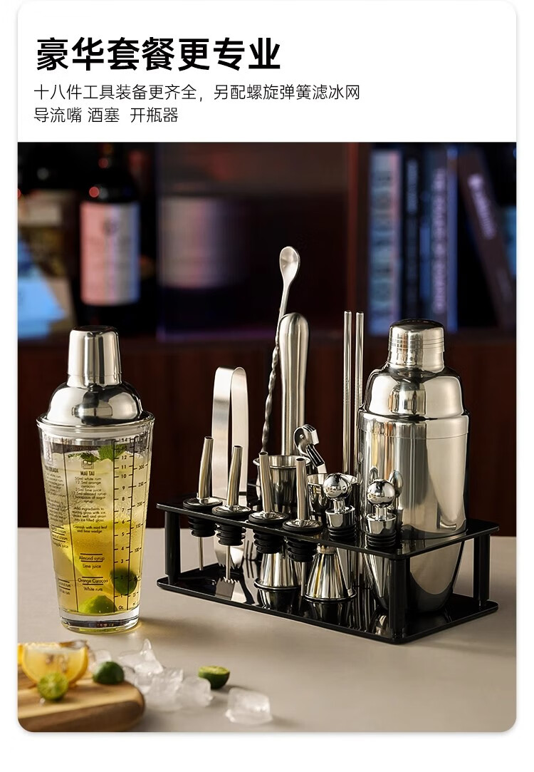 Stainless steel shaker shaker cup hand shaker cocktail bar entry shaker shaker bartending tool family tipsy set 750ml stainless steel shaker-19 piece set