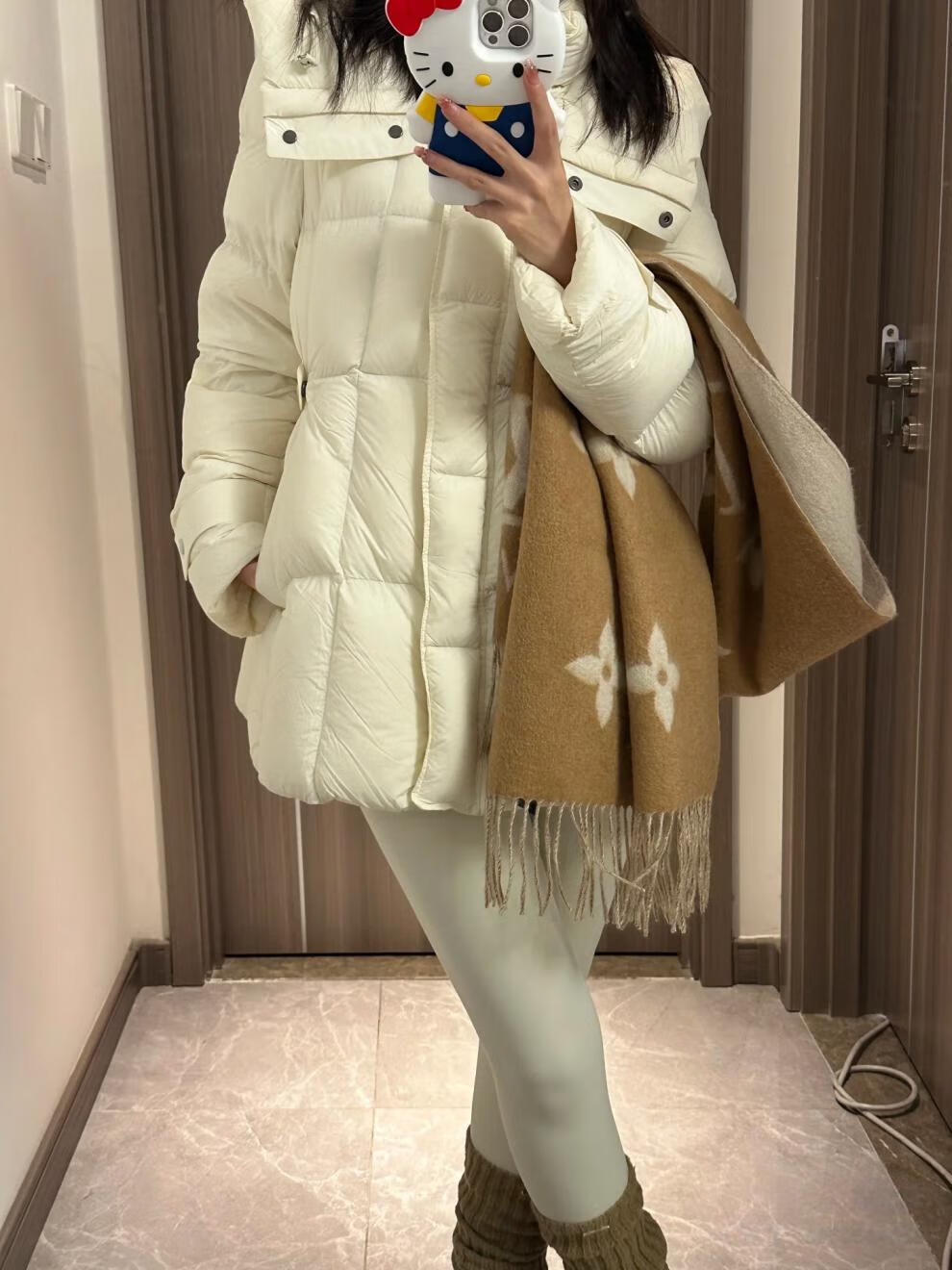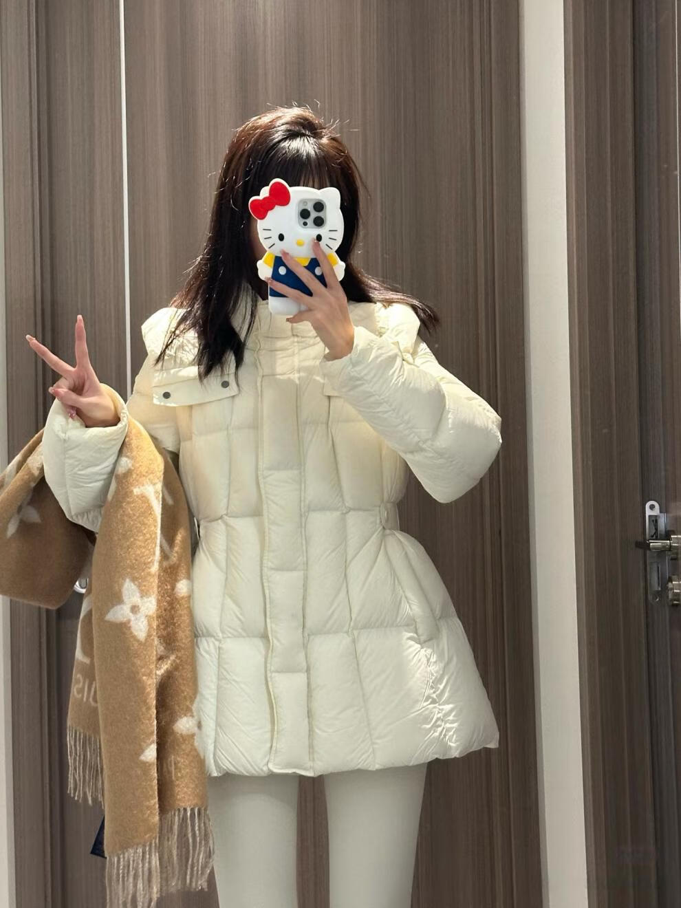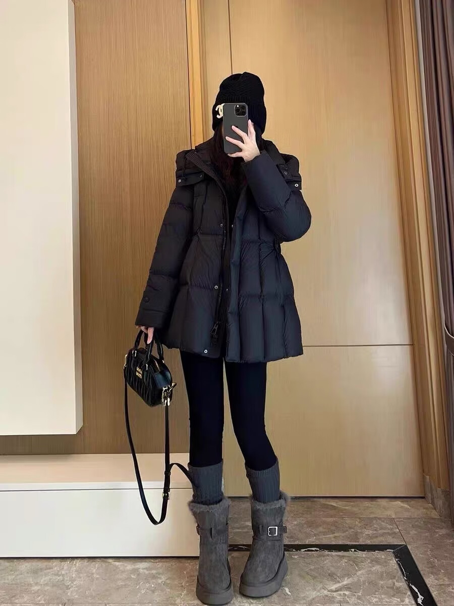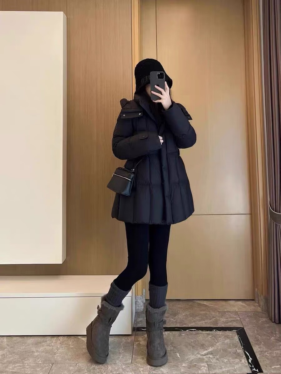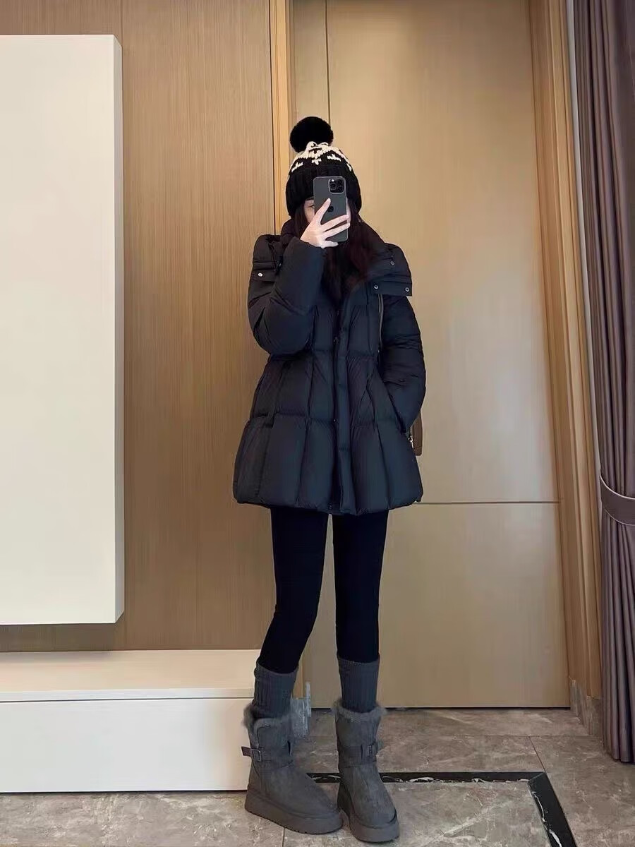 Snow Flying (SNOWFLYING) 2025 winter new temperament waist down jacket women's slim slim hooded thickened mid-length white duck down jacket temperament black M suitable for 110-130 pounds