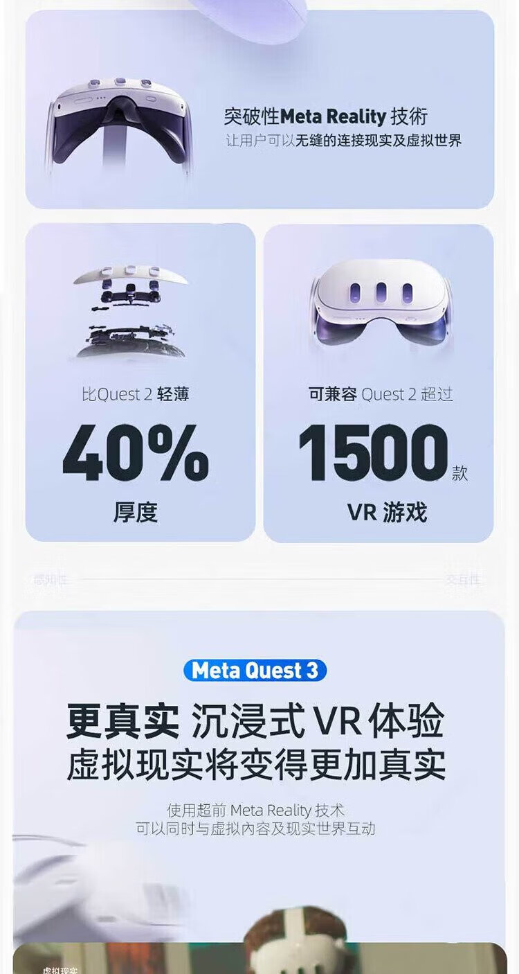 META Quest3 VR all-in-one machine meta quest3S vr glasses helmet somatosensory game steamXR device Quest3 512G generation activation + comfortable head wear
