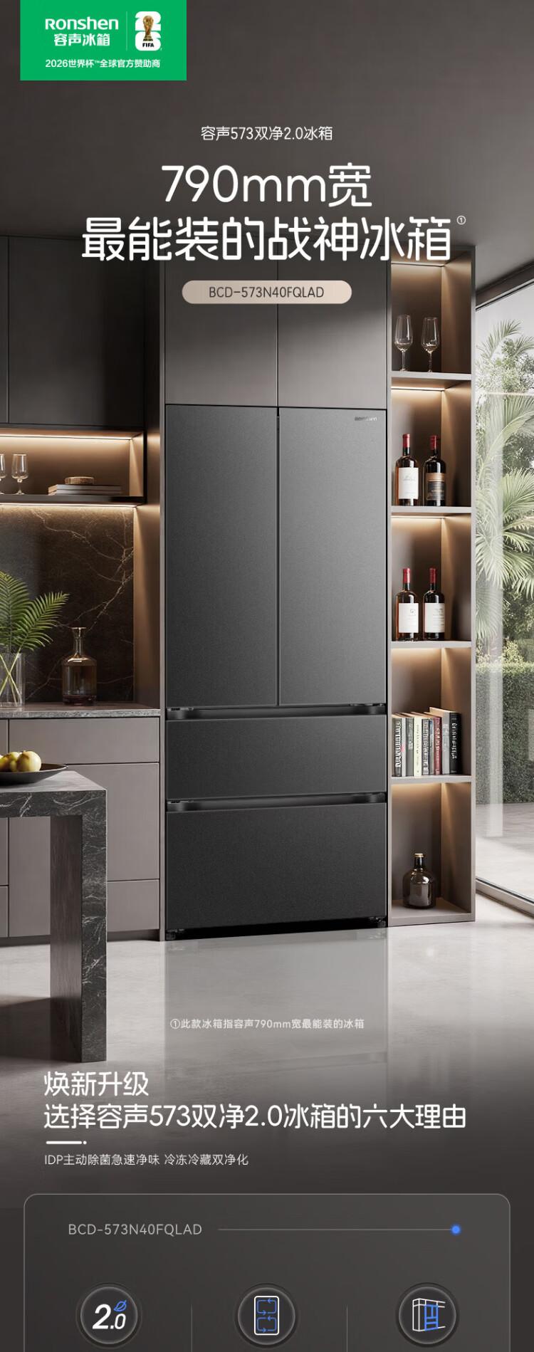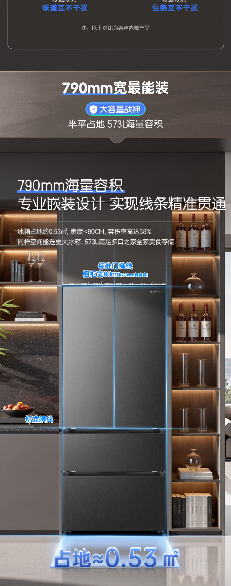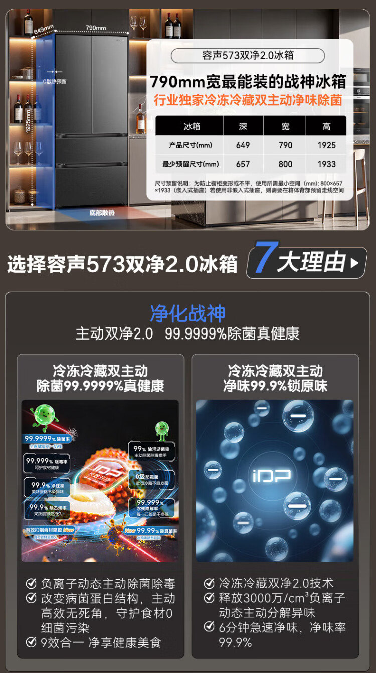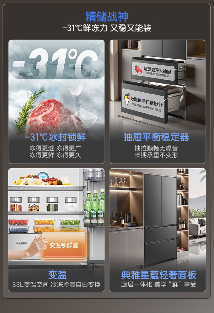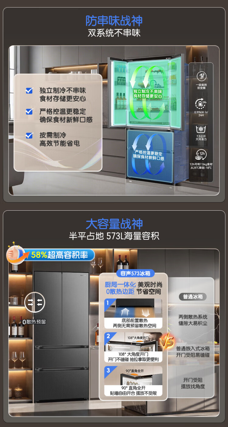 Rongsheng 526 upgraded model Ares 573L French multi-door four-door refrigerator large capacity dual system ultra-thin embedded first-class energy efficiency air-cooled frost-free household BCD-573N40FQLAD national subsidy