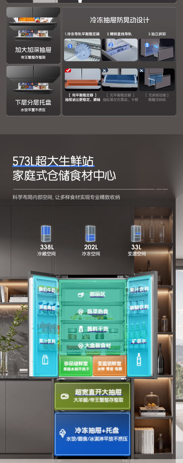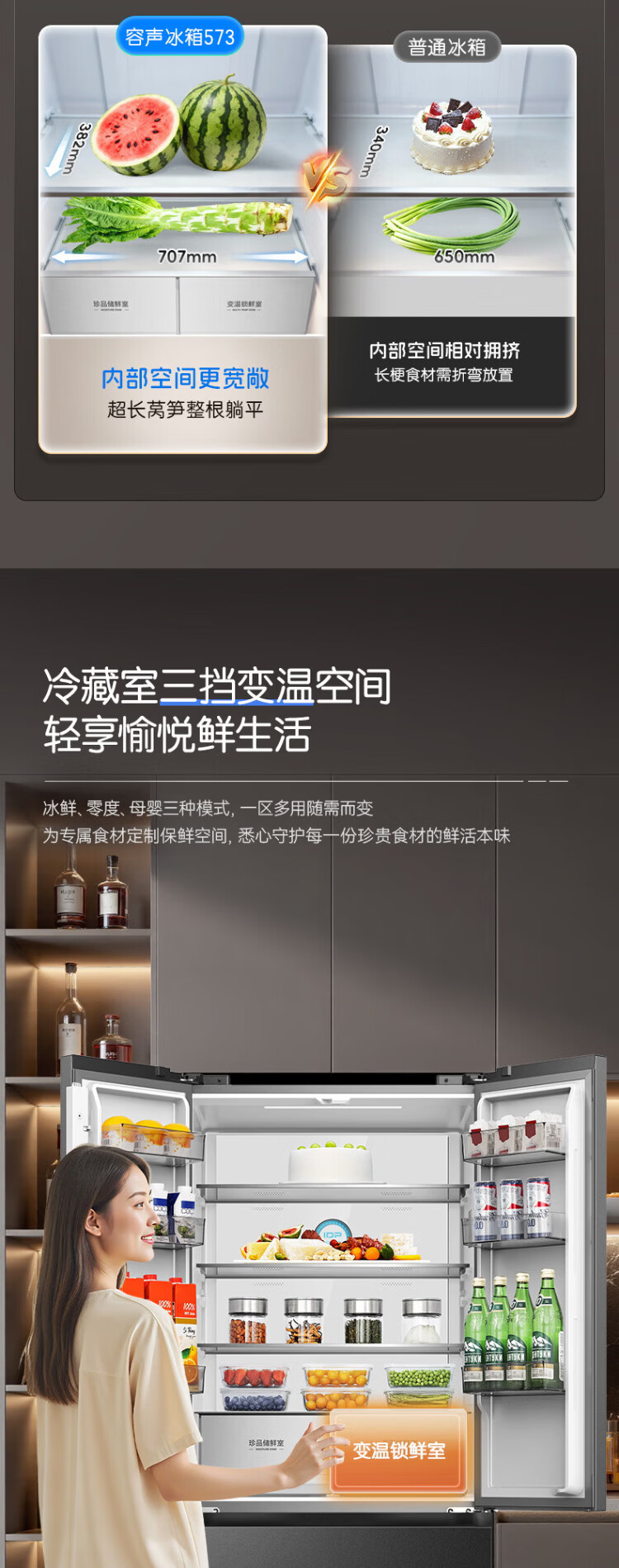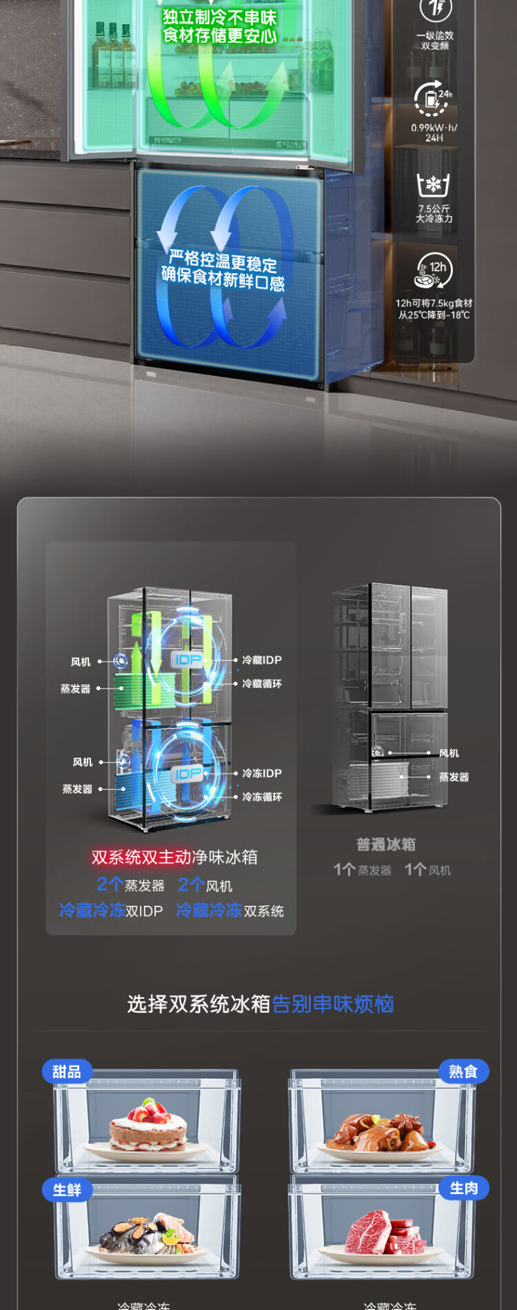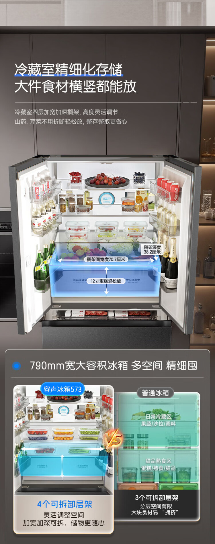 Rongsheng 526 upgraded model Ares 573L French multi-door four-door refrigerator large capacity dual system ultra-thin embedded first-class energy efficiency air-cooled frost-free household BCD-573N40FQLAD national subsidy