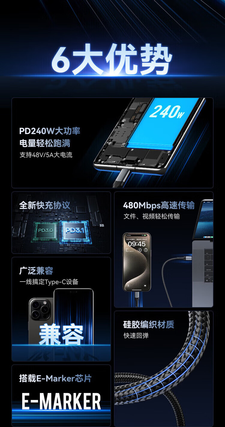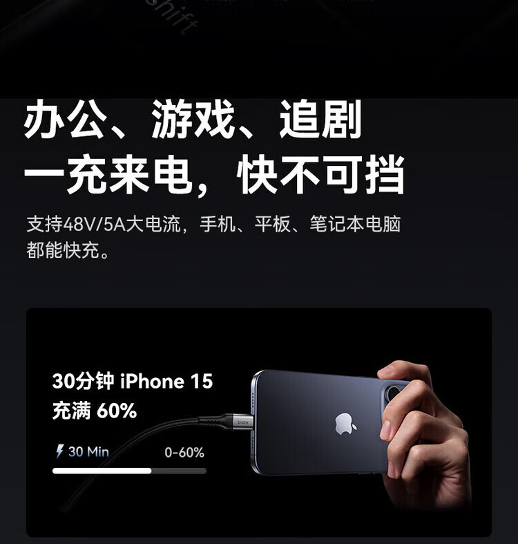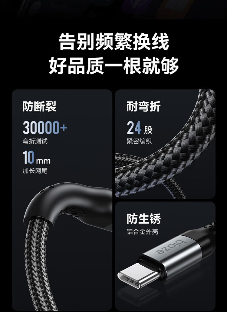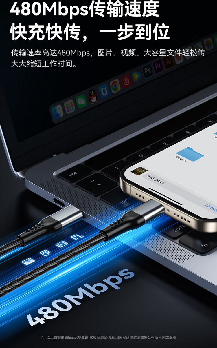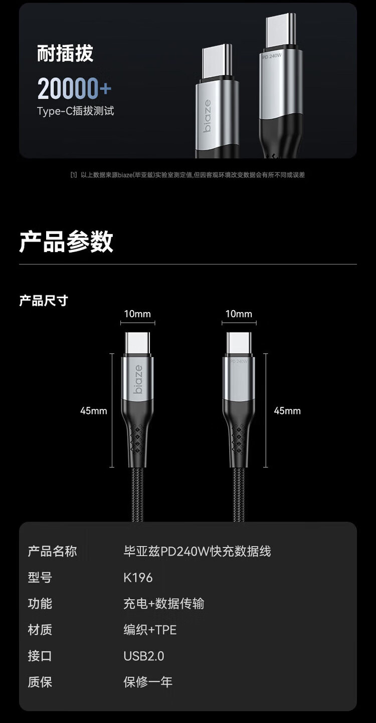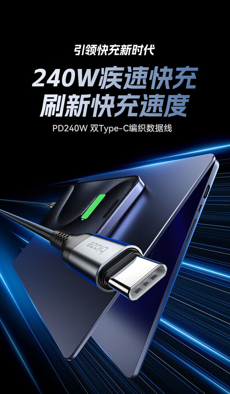 Biaz suitable double-ended type-c data cable 240W fast charging cable ctoc Huawei Xiaomi vivo Android Apple 17/16/15 mobile phone charging cable Mac tablet laptop PD240W 2 meters-mobile phone/laptop