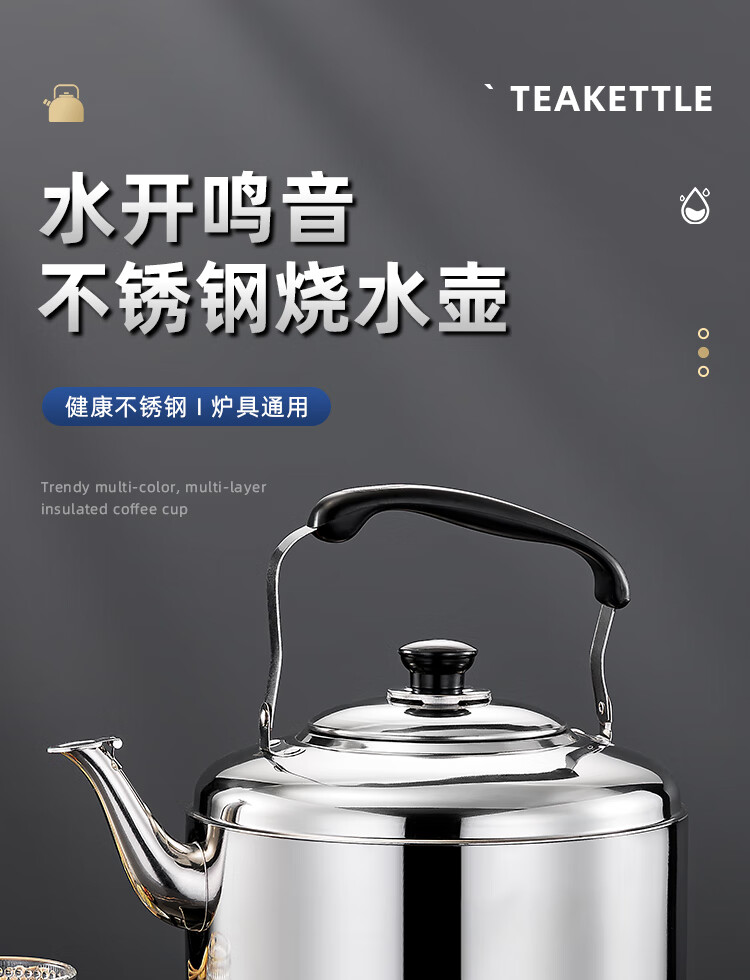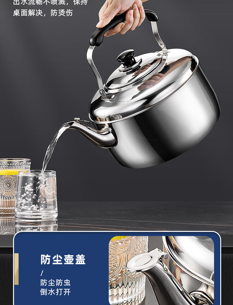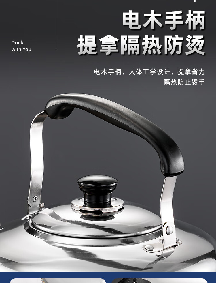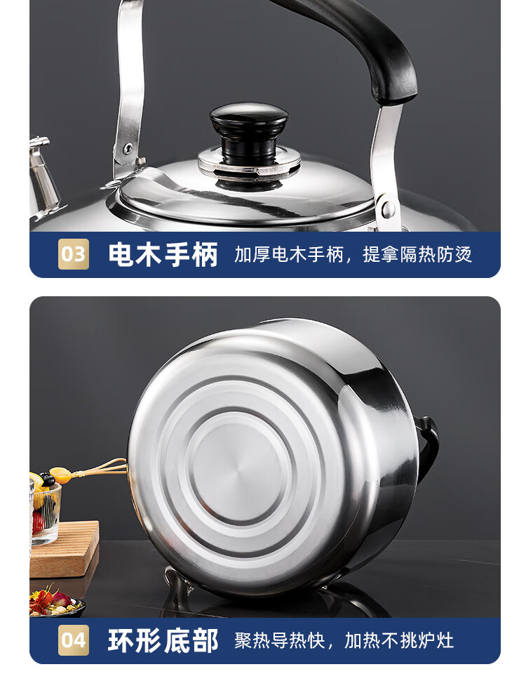Stainless steel kettle, induction cooker, whistle gas, flat bottom, large capacity, household gas soup, whistle kettle, 6 liters, whistle kettle - universal for stoves, extra thick stainless steel 6L