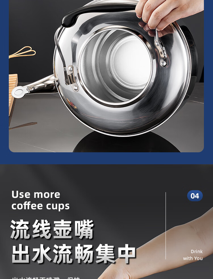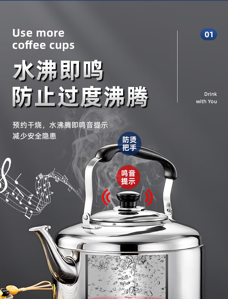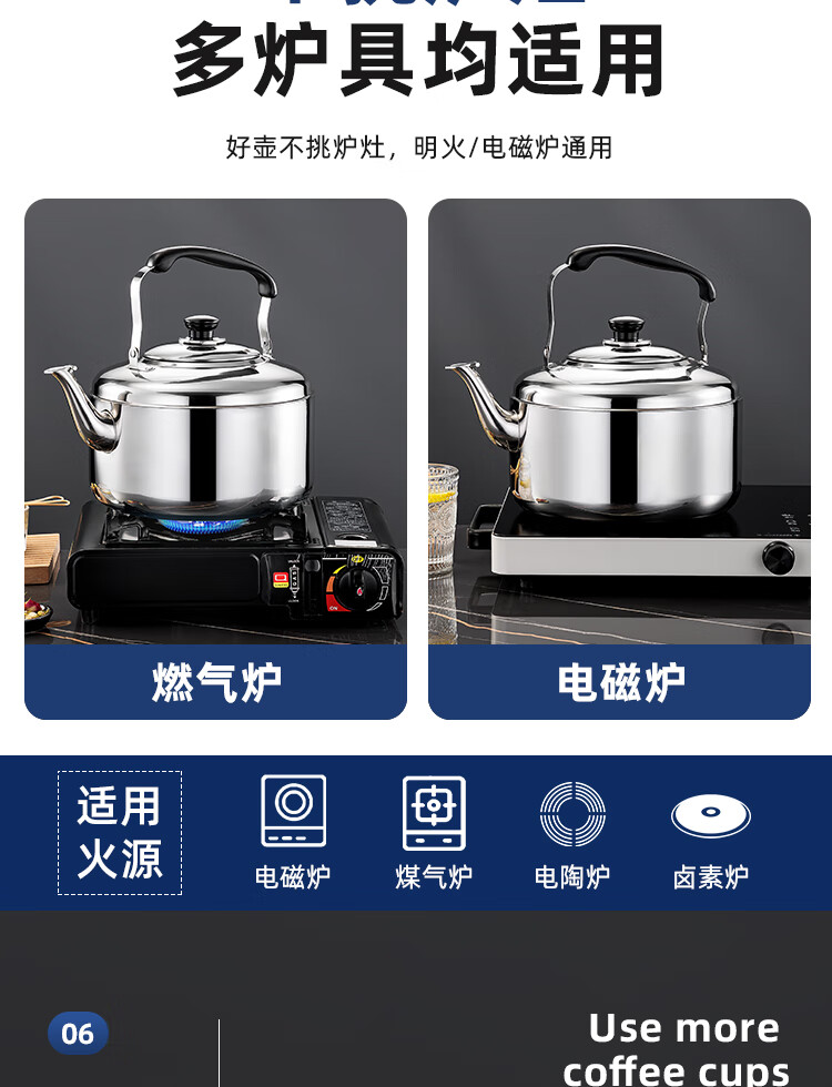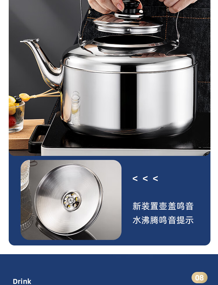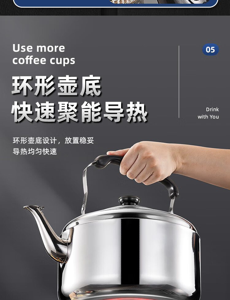 Stainless steel kettle, induction cooker, whistle gas, flat bottom, large capacity, household gas soup, whistle kettle, 6 liters, whistle kettle - universal for stoves, extra thick stainless steel 6L