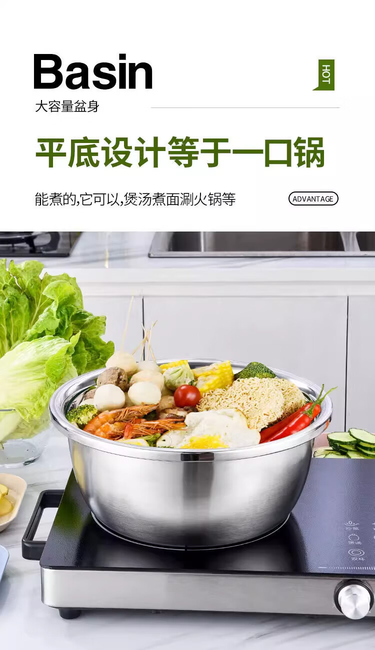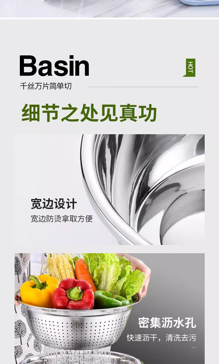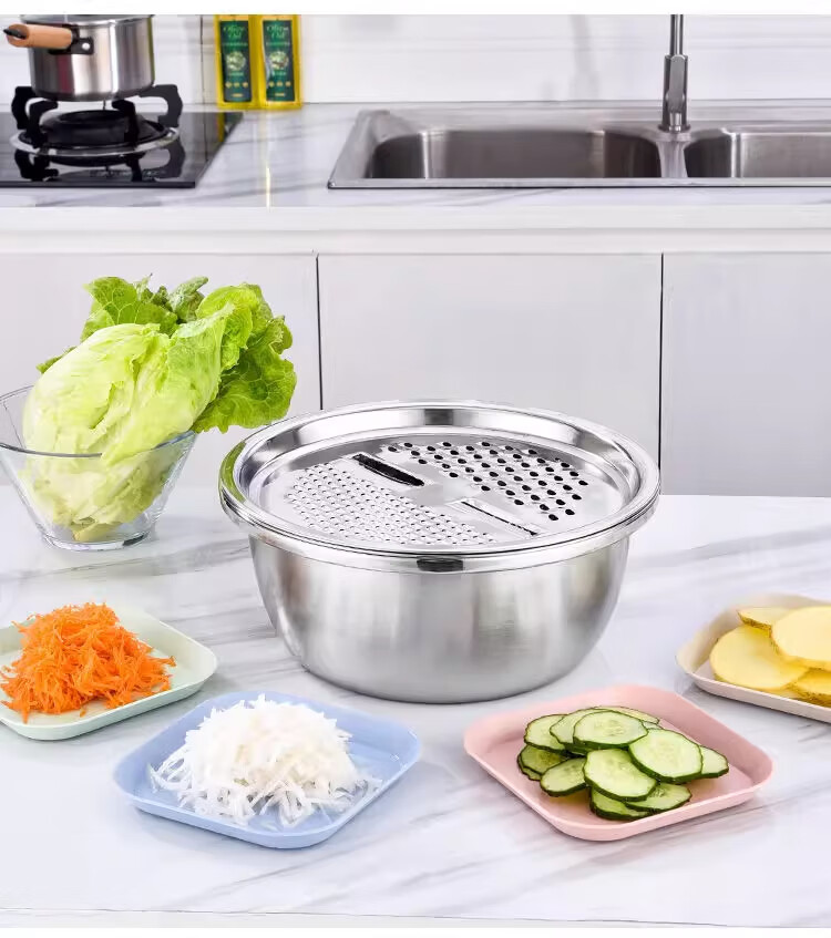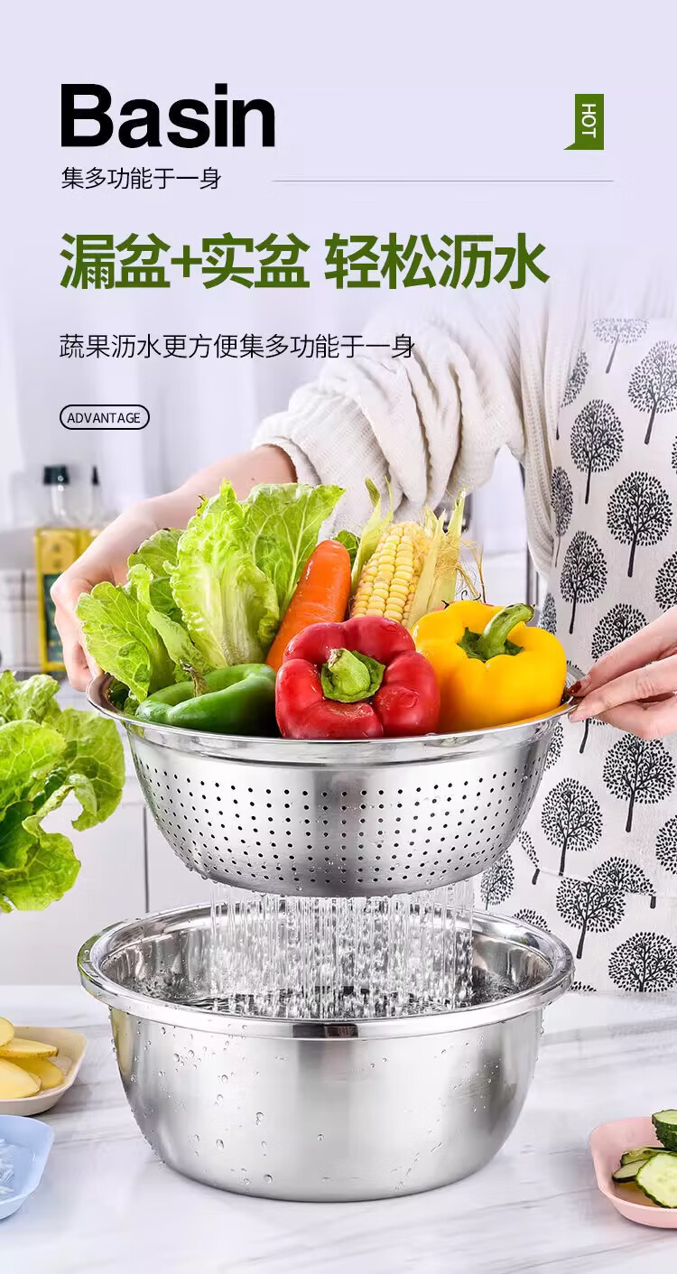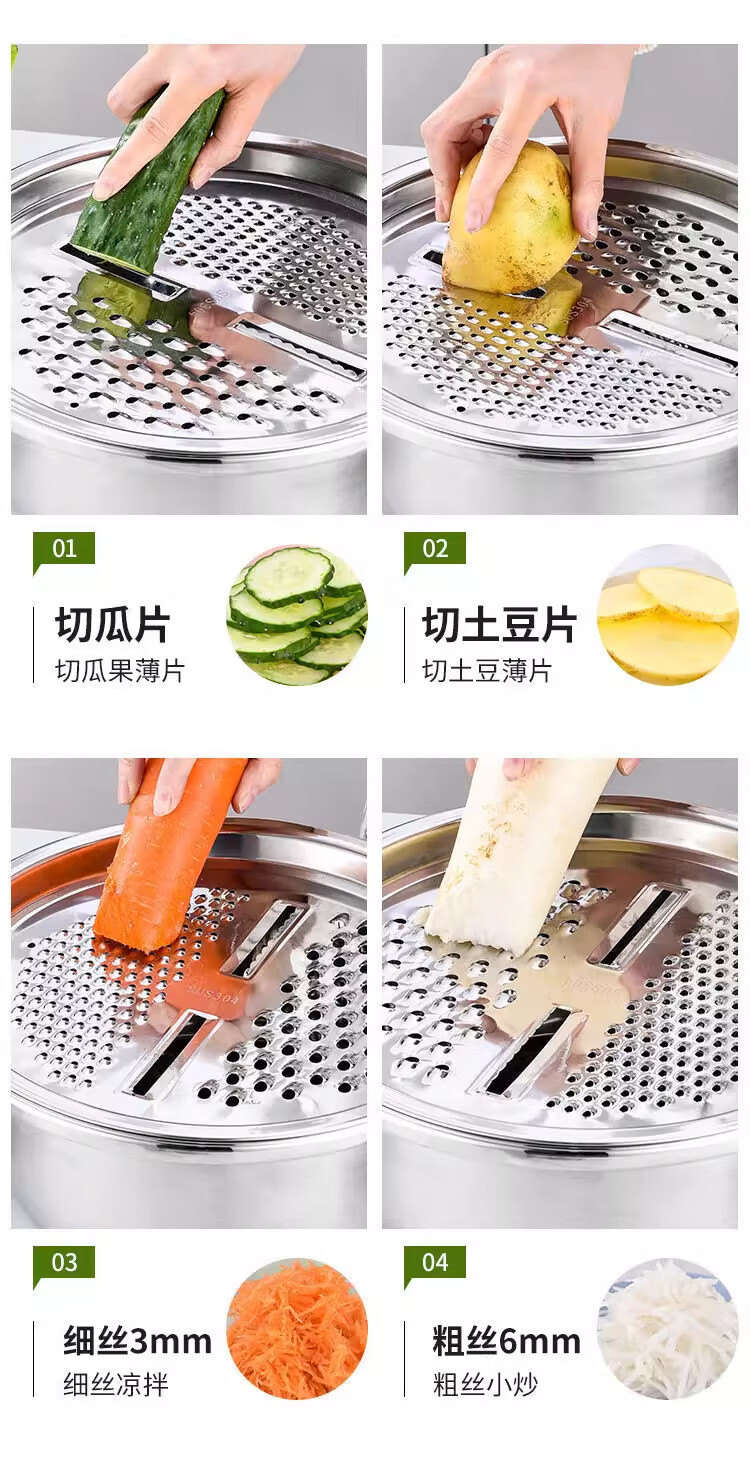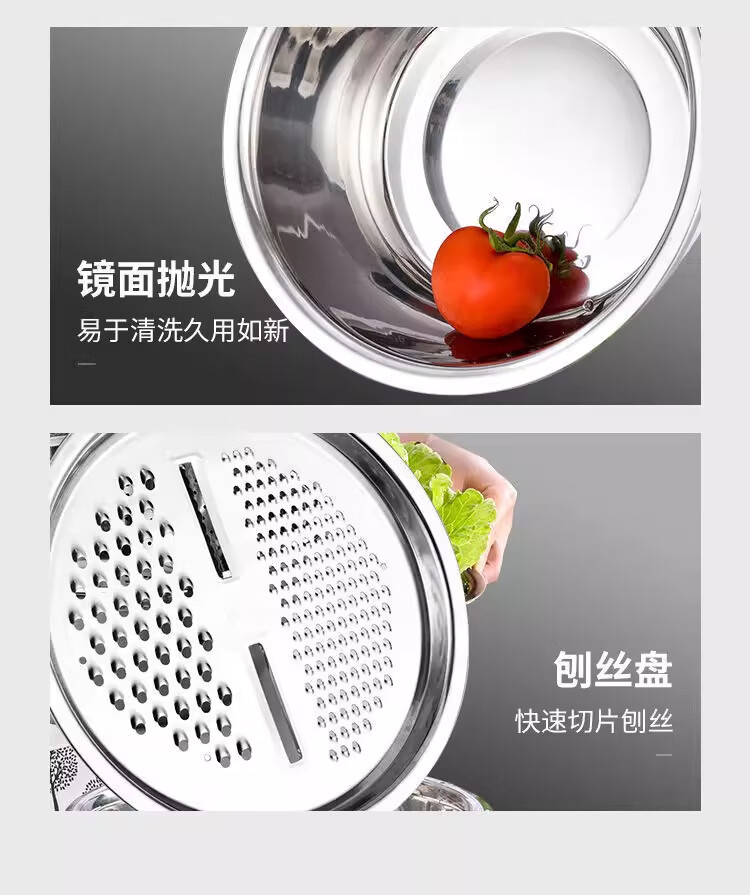 Xin Cong vegetable cutting basin multi-functional stainless steel food-grade grating plate potato slices vegetable radish grating piece grater artifact stainless steel three-piece set basin + drain basin + grating plate