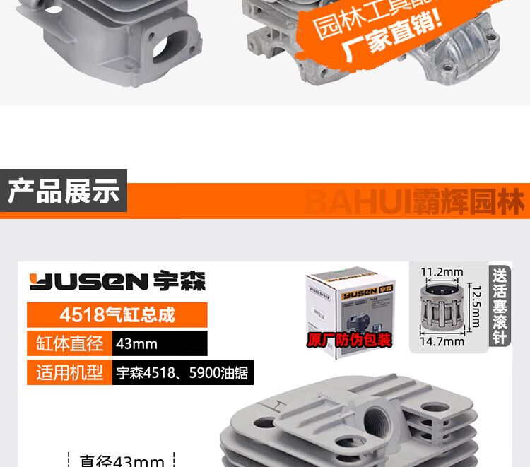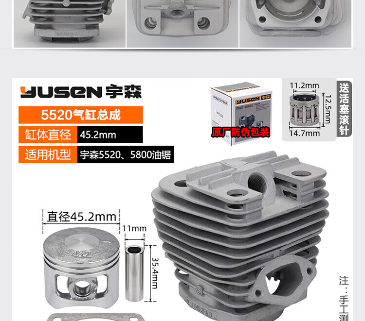 Yusen gasoline saw cylinder double sweep cylinder liner 4216 piston ring accessories assembly 25/45/52/58/59/6500 Yusen 58 cylinder assembly (bore diameter 45.2mm) paper feed pad piston needle roller