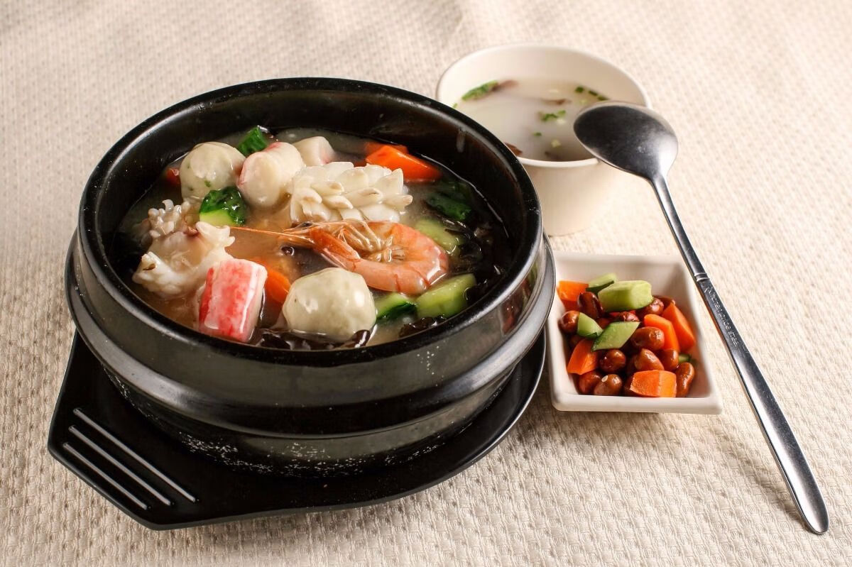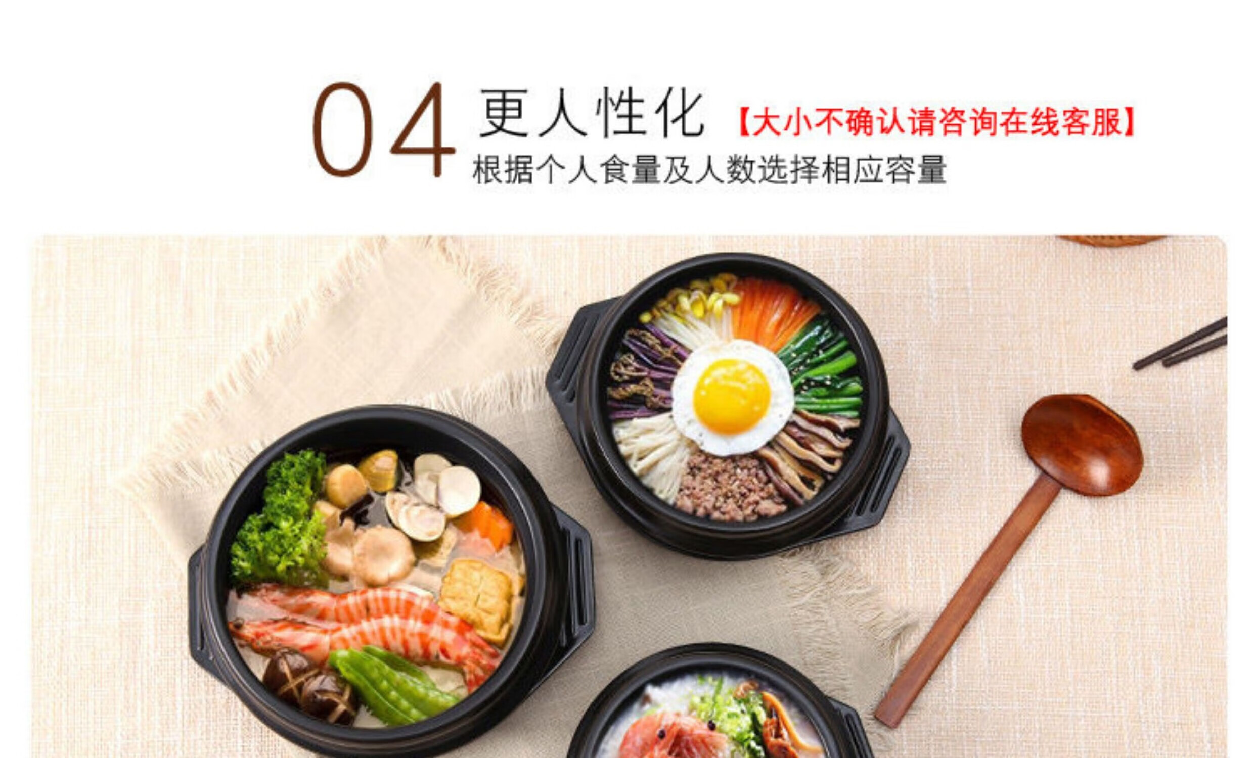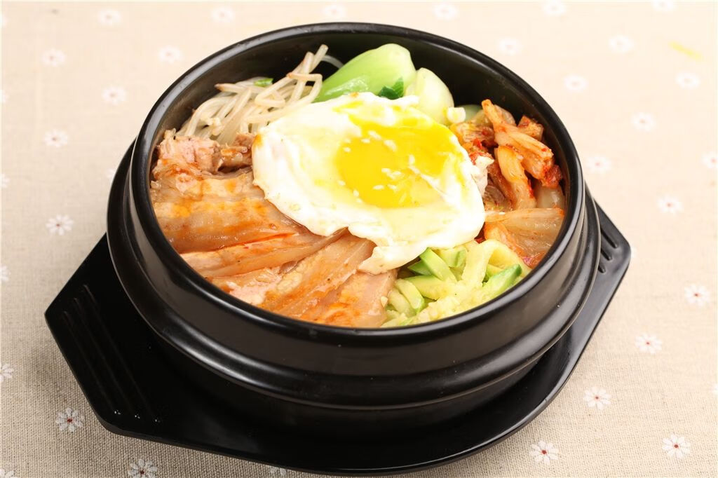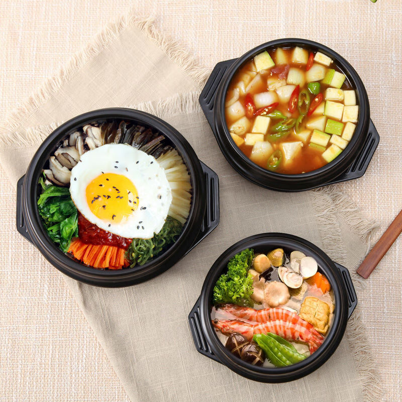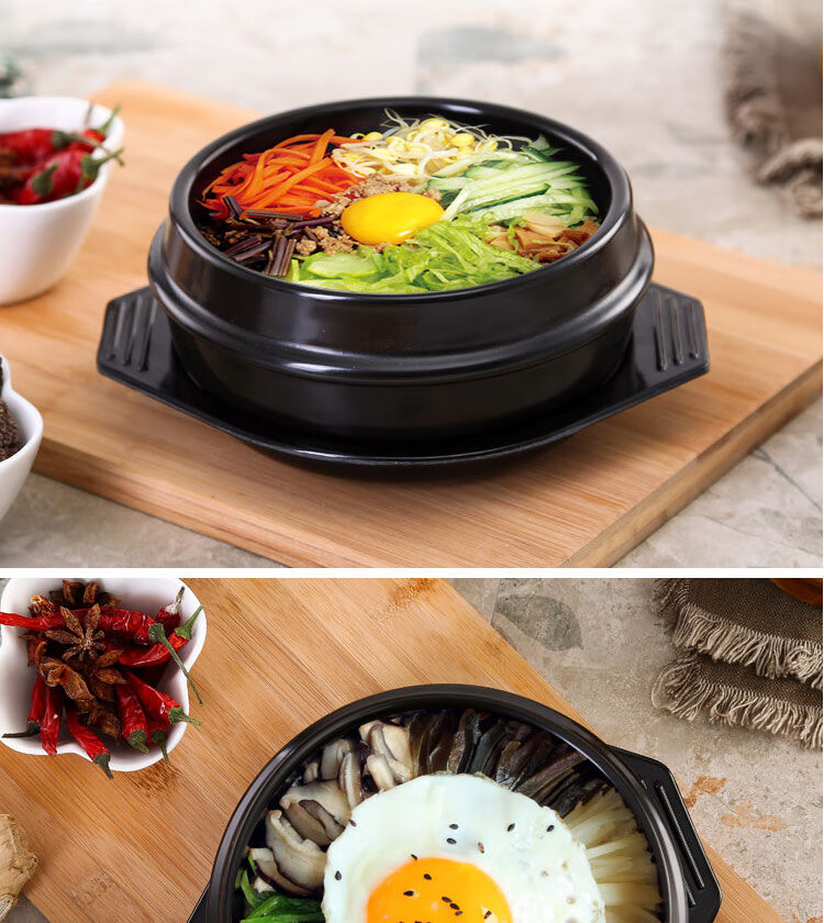 Stone pot bibimbap pot, Korean-style bowl casserole, household Korean noodle pot, commercial miso soup noodle stone pot 4# stone pot + 20CM square mat + bamboo lid (large) 1600ml