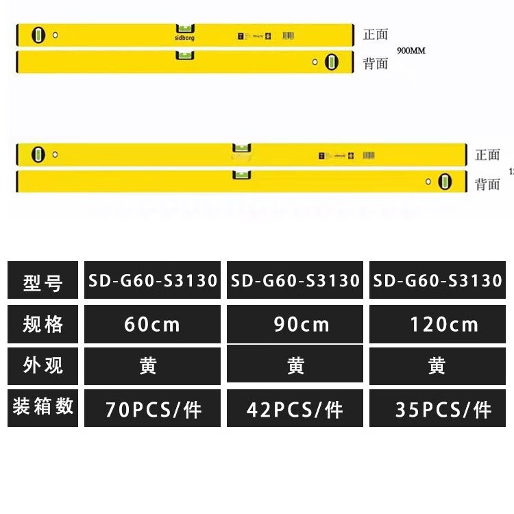 RSRDDY Sidborg level high-precision anti-fall aluminum leveling level multi-function 2-meter floor tile sidborg-bubble 60 cm SD-G60-S3