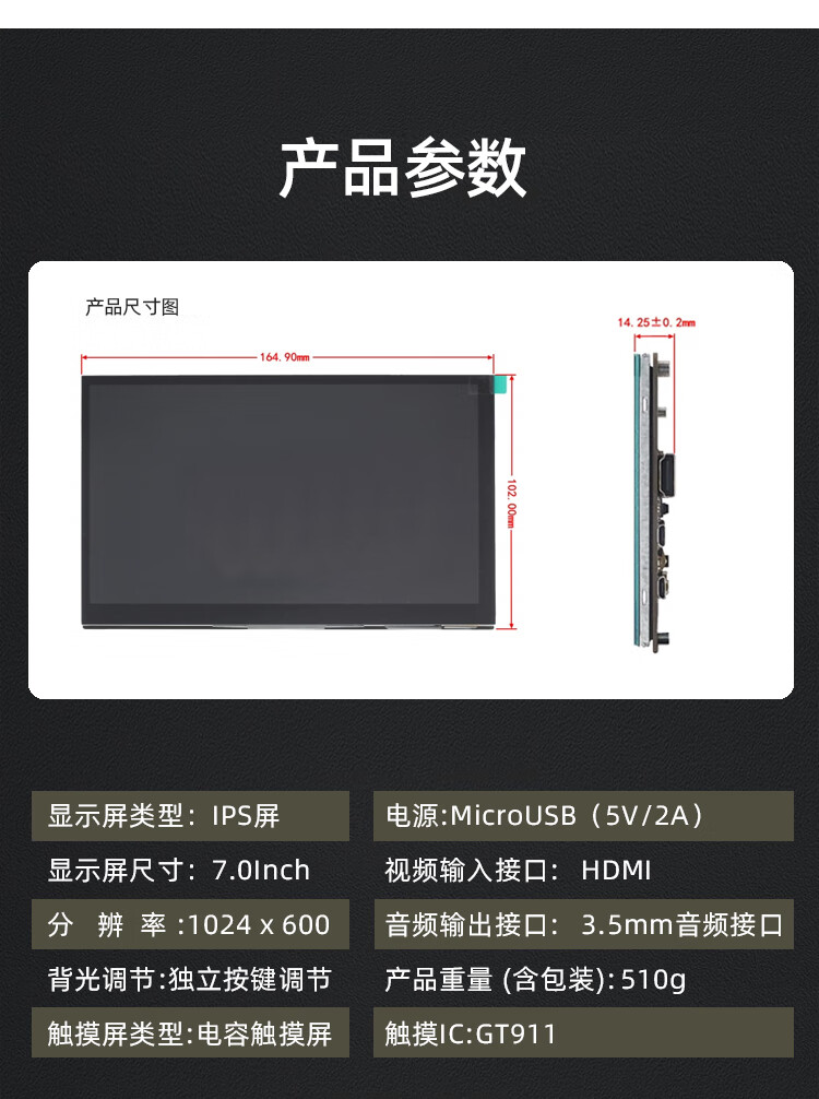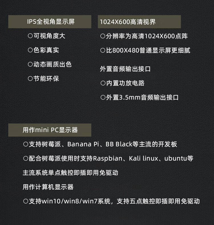 Monitor 7 HD touch capacitive screen HDMI supports 4B/3B+Jetson Nano 7 HD 1024*6
