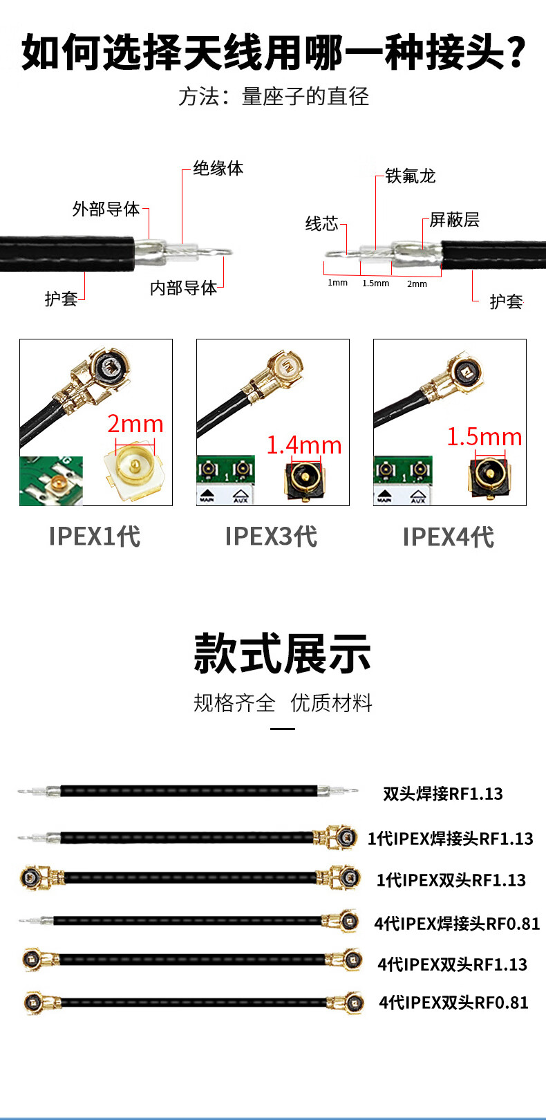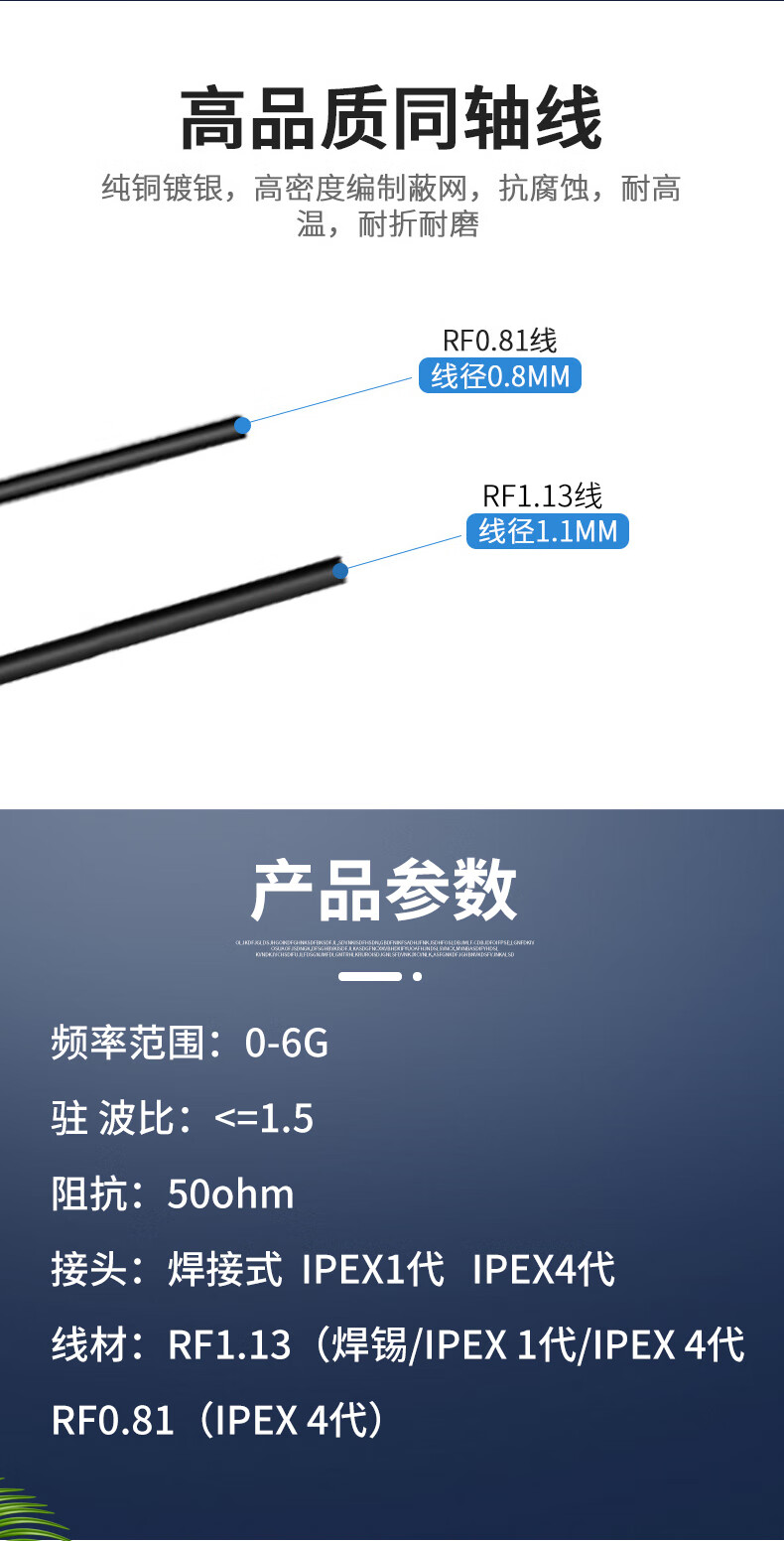 Double-head IPEX antenna single-head 1st generation terminal 4th generation MHF UFL1.13,0.81 line coaxial RF feeder 3rd generation IPEX double-head RF0.81 line length 8CM (5 pieces) No specifications