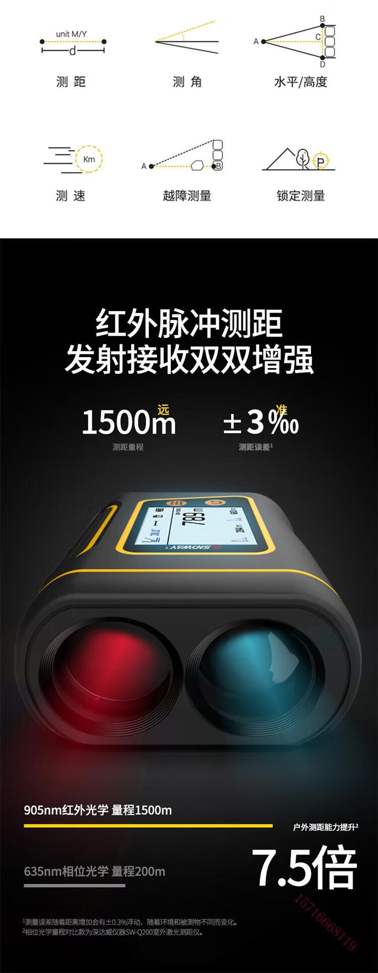 Qiao Bo Lai ranging telescope outdoor laser range finder golf long-distance measuring instrument high-precision electronic ruler -500 3800 meters SW800B